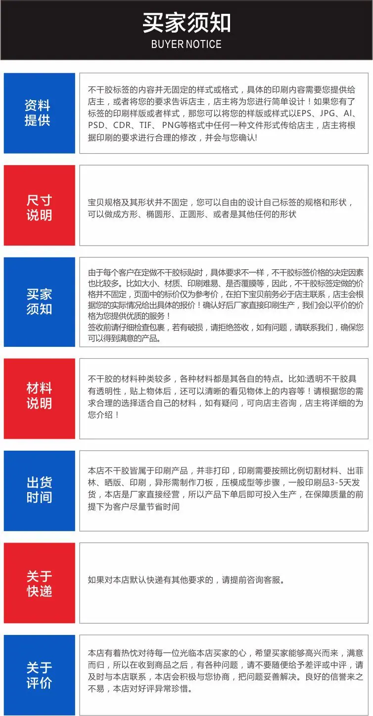 Querido/a, ¡gracias por tu confianza y apoyo! Recordatorio sincero para envío gratuito:impresosEnvío gratuito nacionalEl área esNo incluye Tíbet, Xinjiang, Gansu, Mongolia Interior, Qinghai, Hainan, Hong Kong, Macao, Taiwán y otras provincias. ¡El tamaño del adhesivo se puede personalizar arbitrariamente, consulte al servicio de atención al cliente para obtener más detalles!