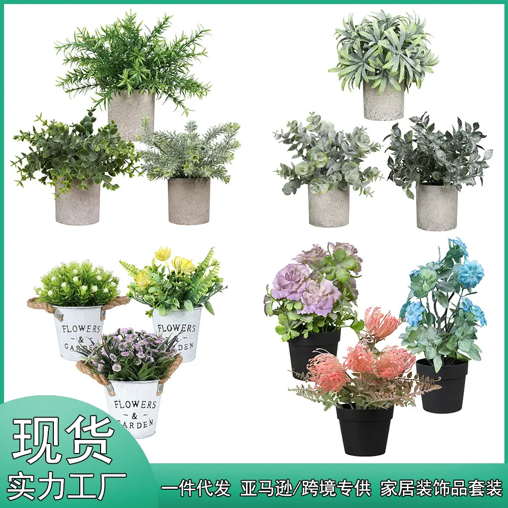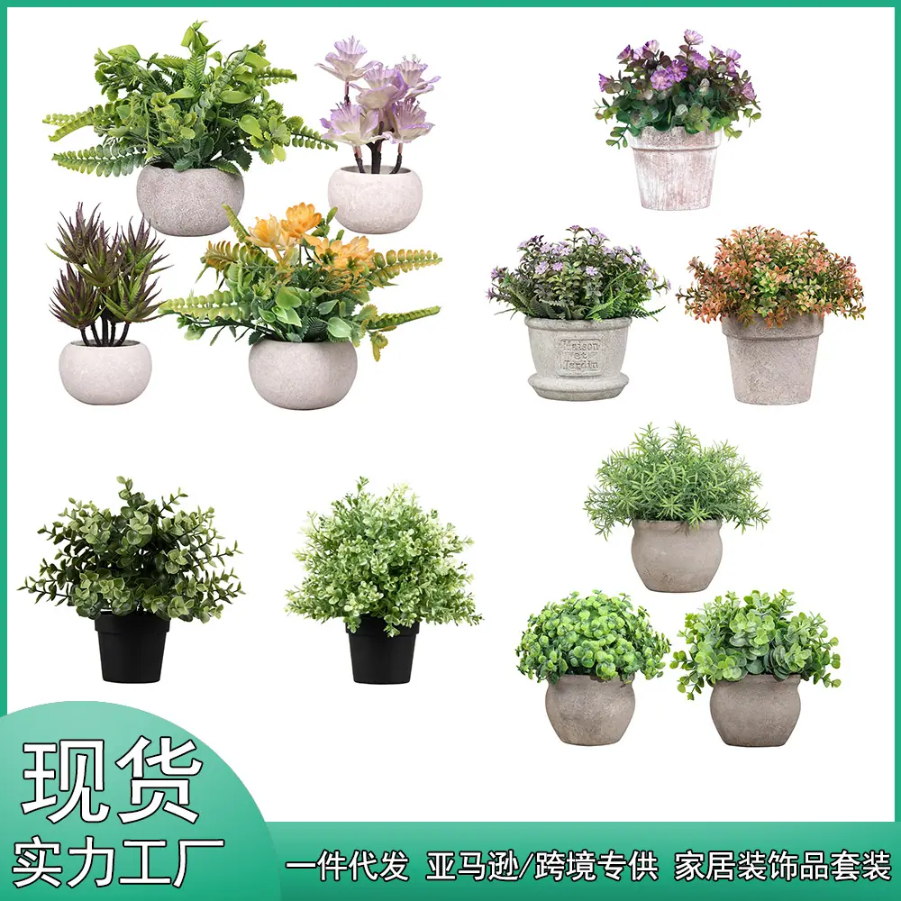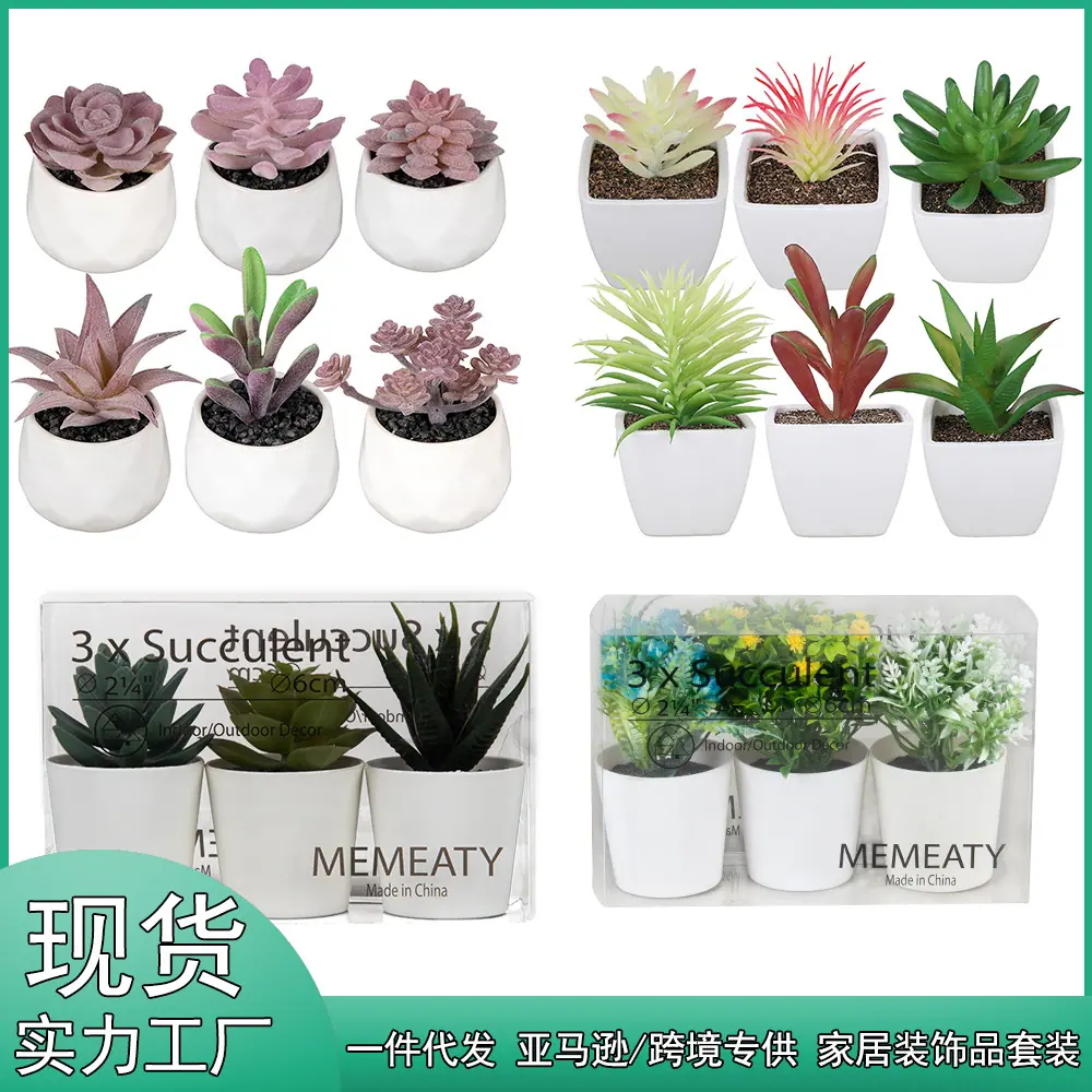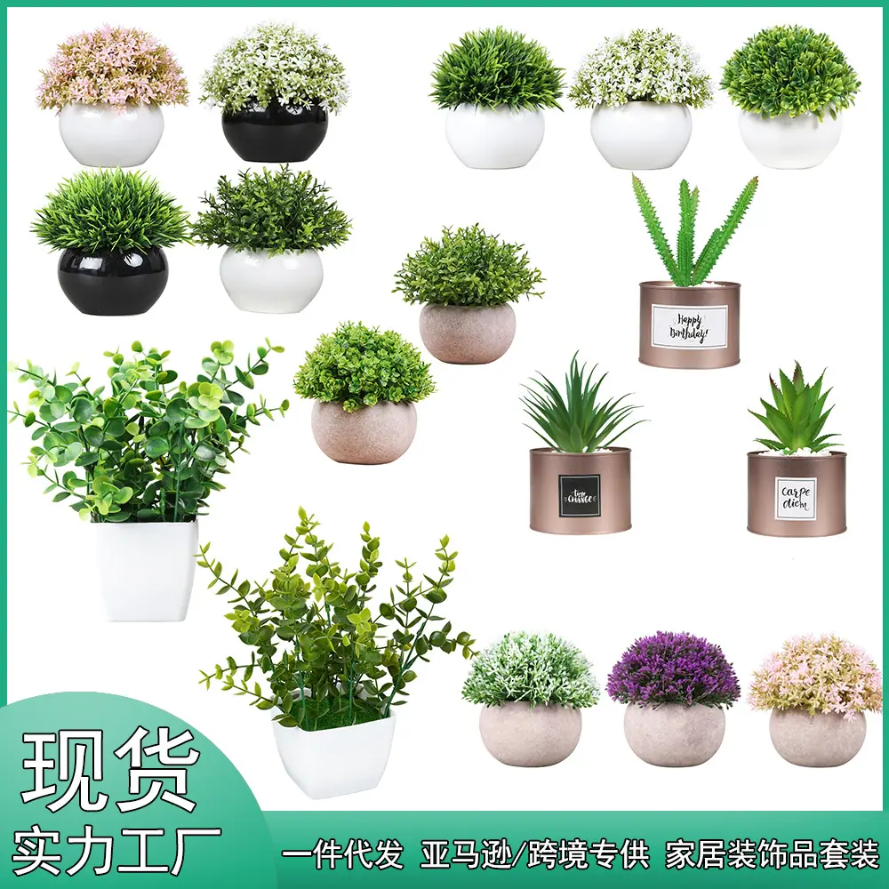 Mini planta artificial en maceta transfronteriza, combinación de estilo interior, simulación de hogar, suculenta, pegatina de plástico, planta verde, pequeño bonsái.