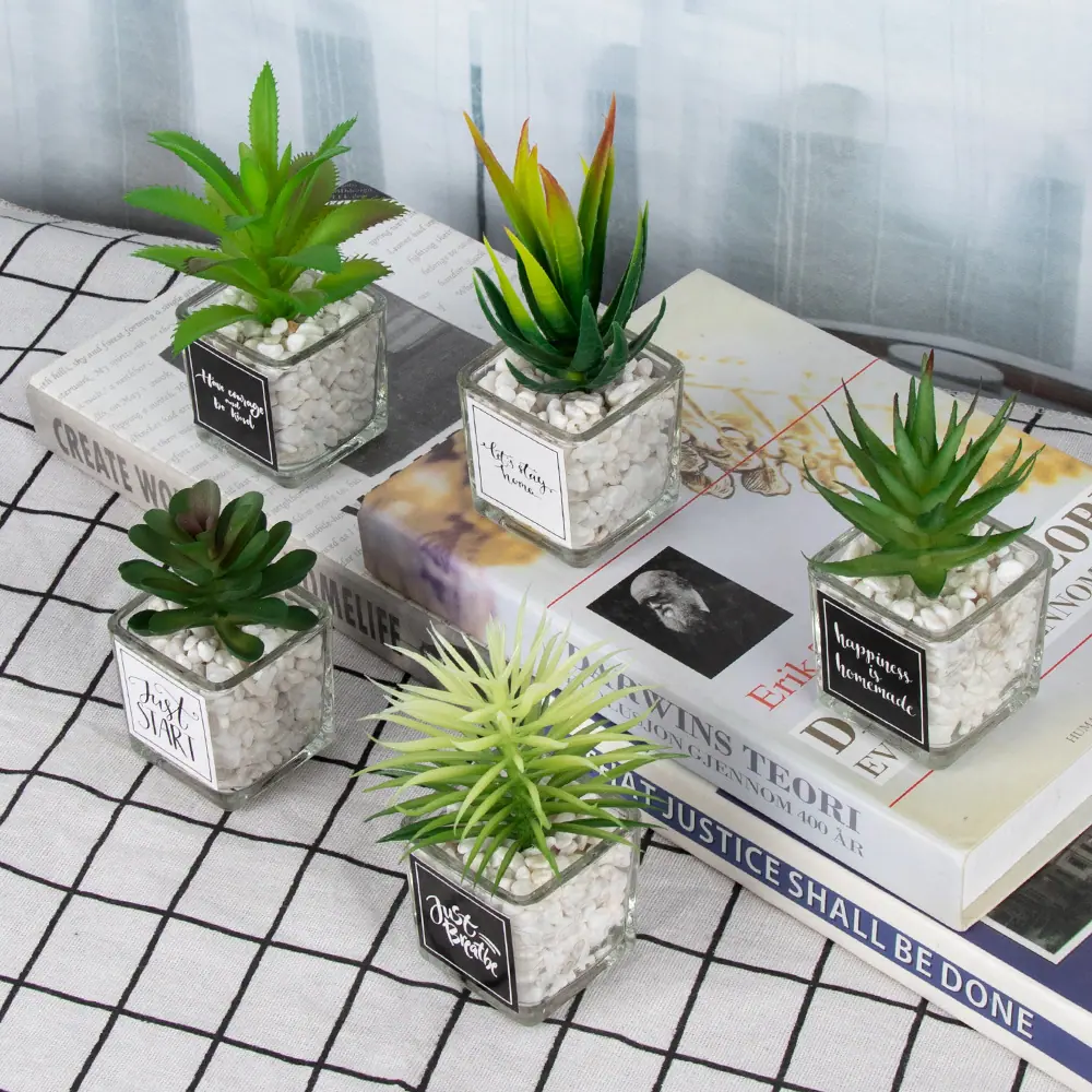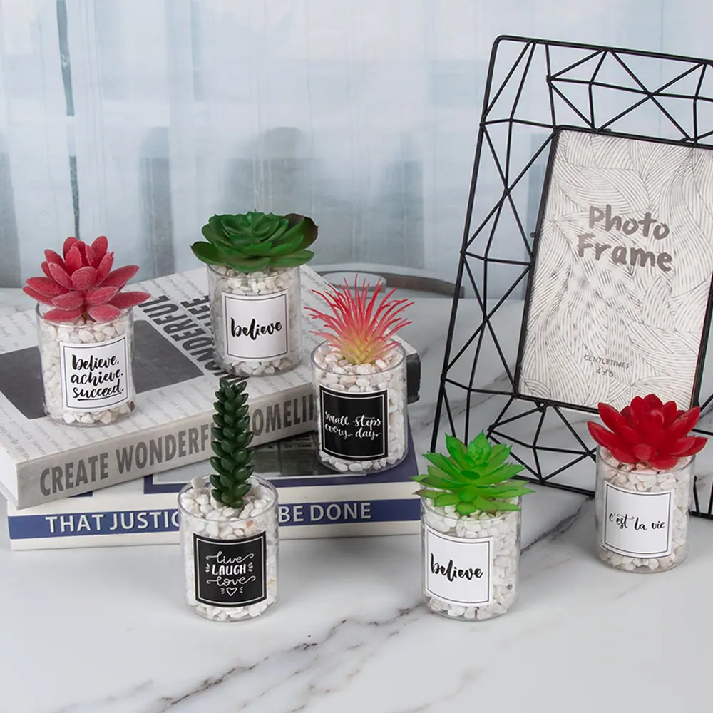 Mini suculenta artificial en maceta con borde cruzado, combinación de escritorio, estilo Ins, pequeños adornos, pegatinas de vidrio, bonsái suculento simulado