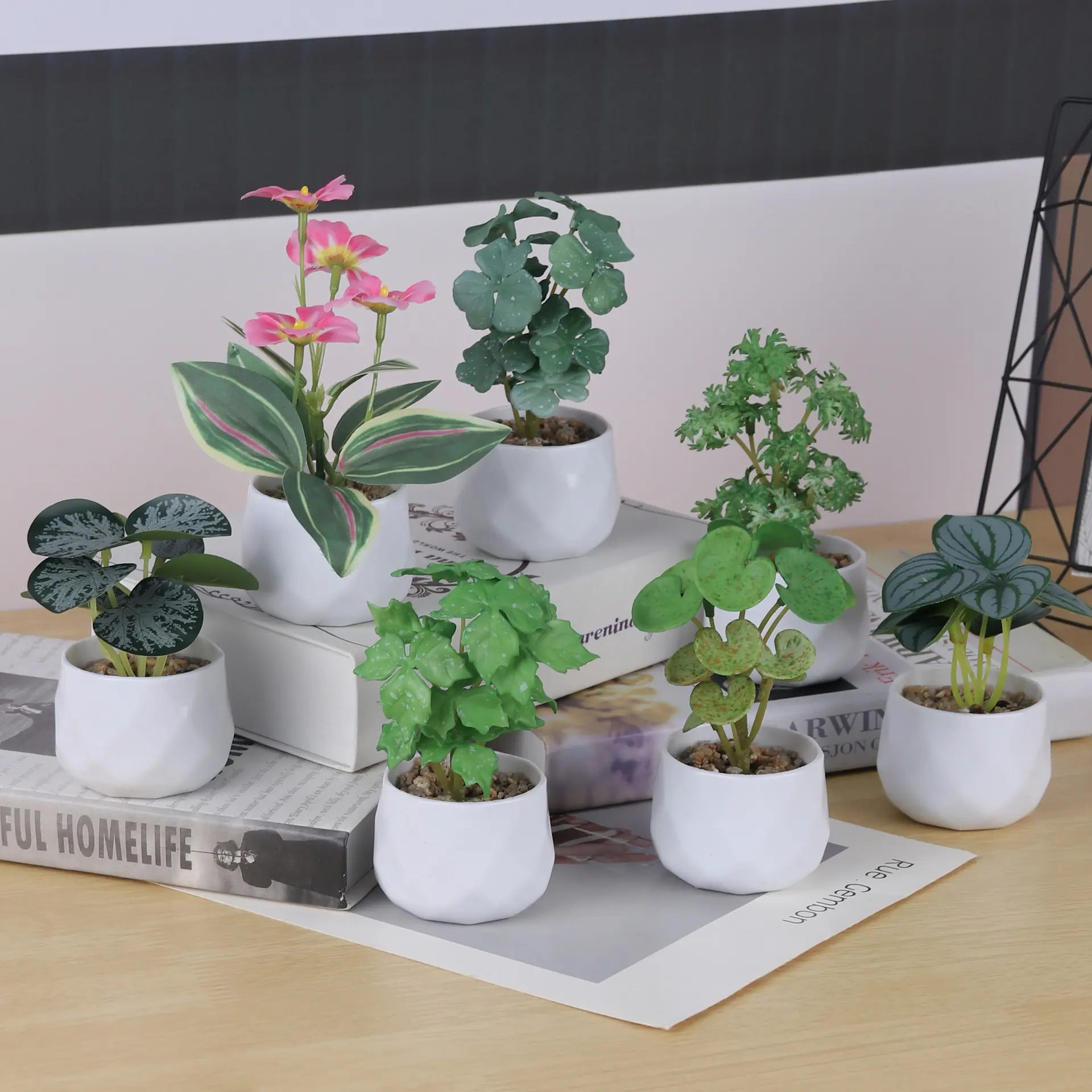 Mini plantas artificiales de plástico en maceta transfronterizas, combinación de adornos de escritorio, plantas de simulación, suculentas, flores falsas de plástico, planta verde, bonsái
