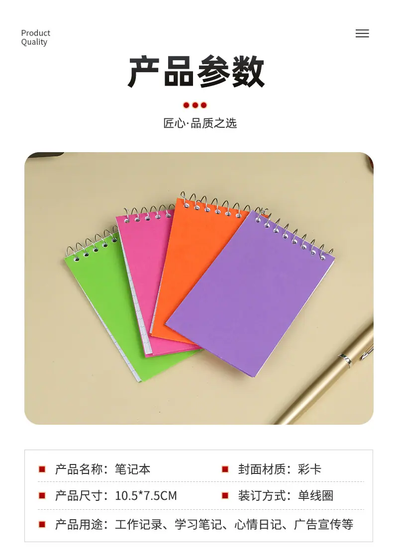 Libreta de Espiral Personalizada Color Puro Mini Libreta Portátil Pequeña Libreta de Contabilidad Portátil Personalizada