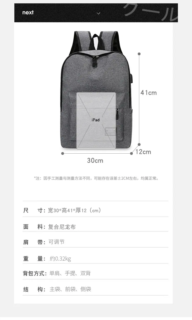 Mochila para Hombre Casual de Viaje Mochila Ligera de Gran Capacidad Bolsa para Laptop Recargable Bolsa Exterior Transfronteriza
