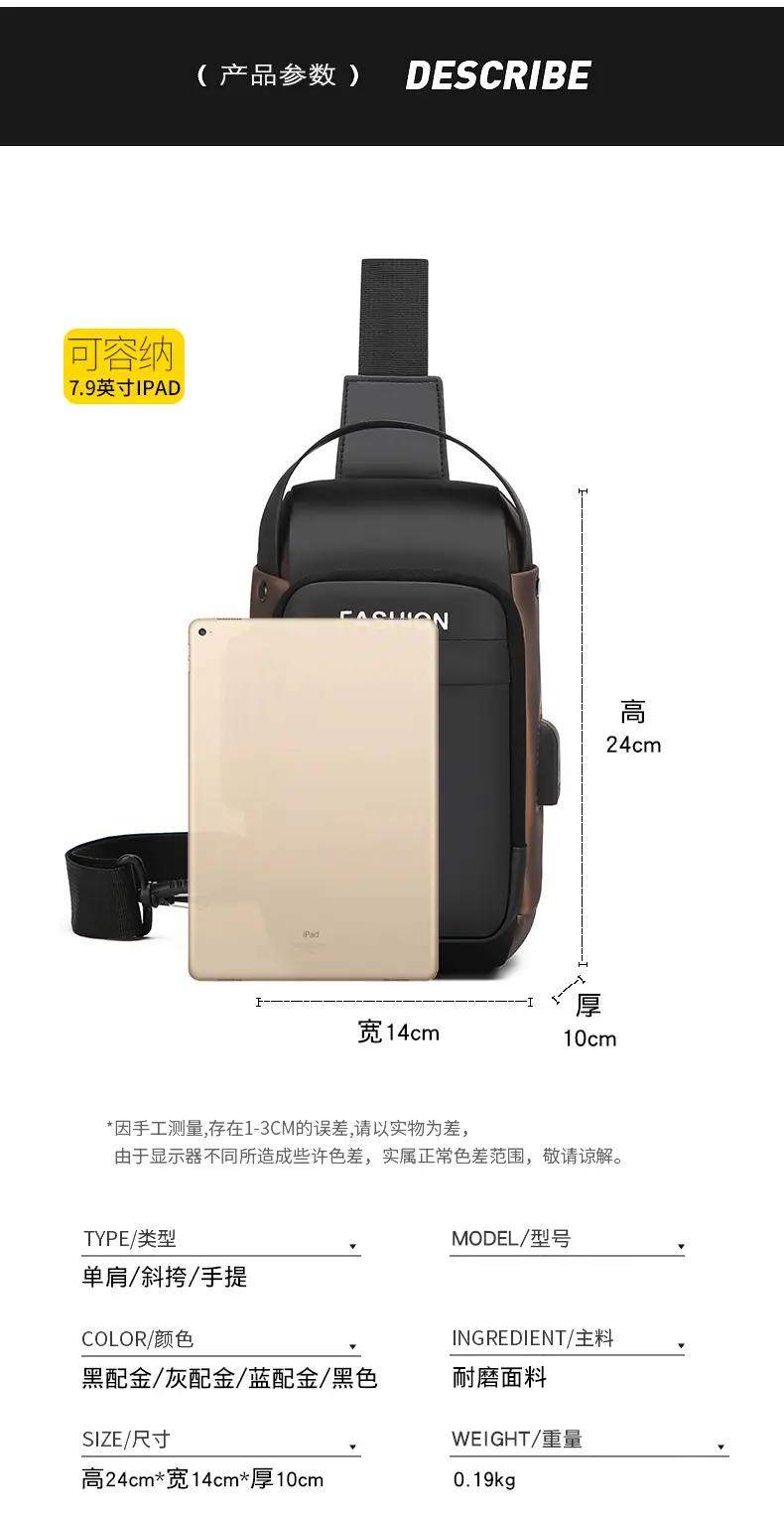 Bolso de pecho para hombre, bandolera de hombro, sencillo, informal, moderno, multifuncional, mochila pequeña, bolso de pecho de moda.