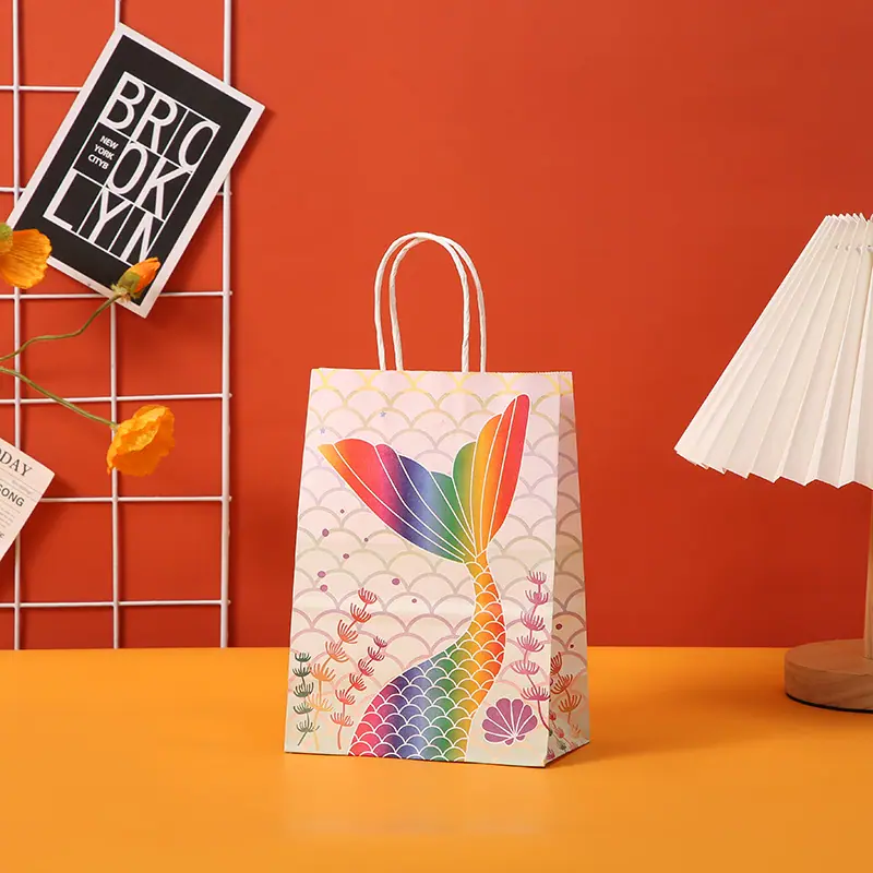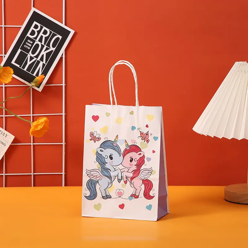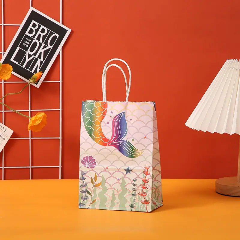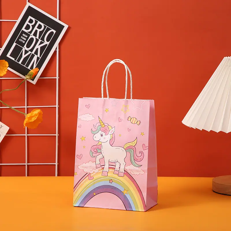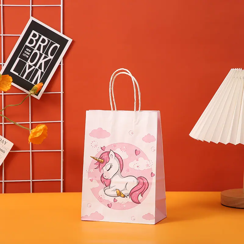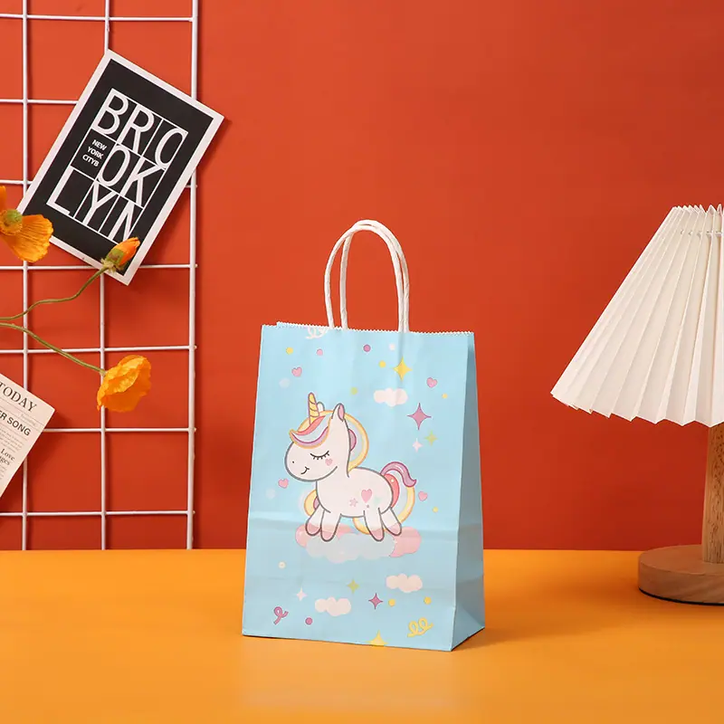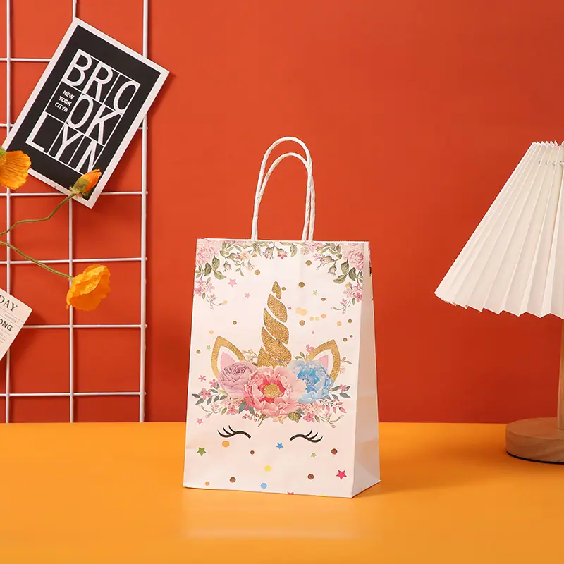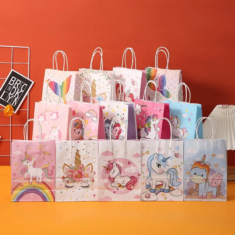 Bolsa de papel Kraft al por mayor para fiestas de cumpleaños, bolsa de regalo, bolsa de mano, bolsa de papel Kraft, bolsa de papel para embalaje de regalo