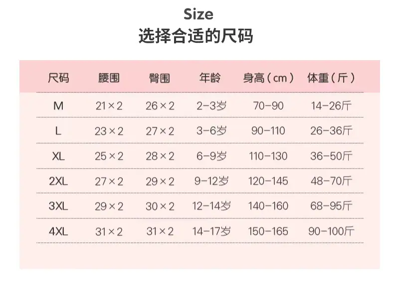 110cm(M size), 120cm(L size), 130cm(XL size), 140cm(2XL size), 150cm(3XL size)