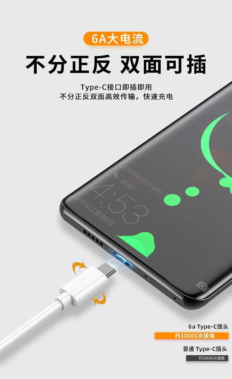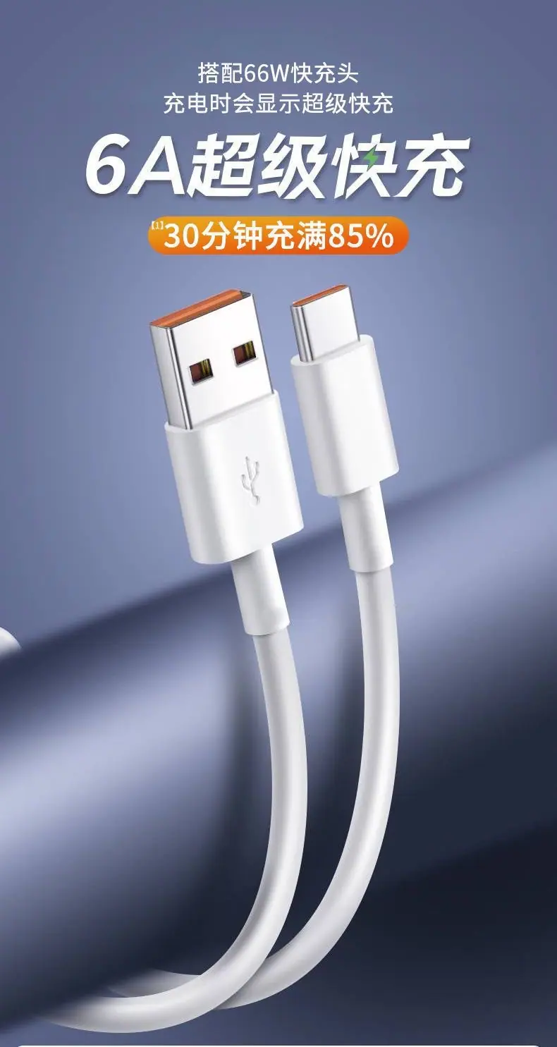 Adecuado para Huawei Honor Xiaomi Vivo Teléfono Móvil Tipo-C6A Cable de Datos de Carga Rápida Cable de Carga de Carga Rápida USB Digital