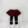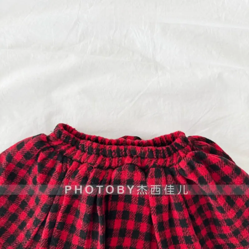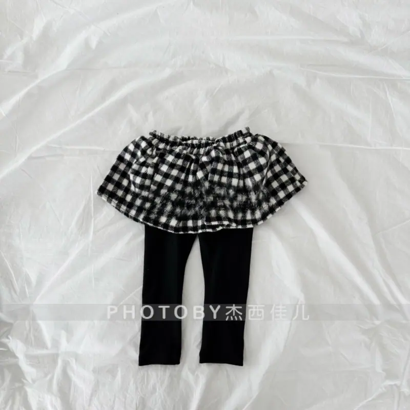 Leggings Infantiles 2025 Nuevos Forrados de Felpa Falsos de Dos Piezas Invierno Niñas Bebé Casual Versátiles a Cuadros Estilo Coreano Pantalón Falda