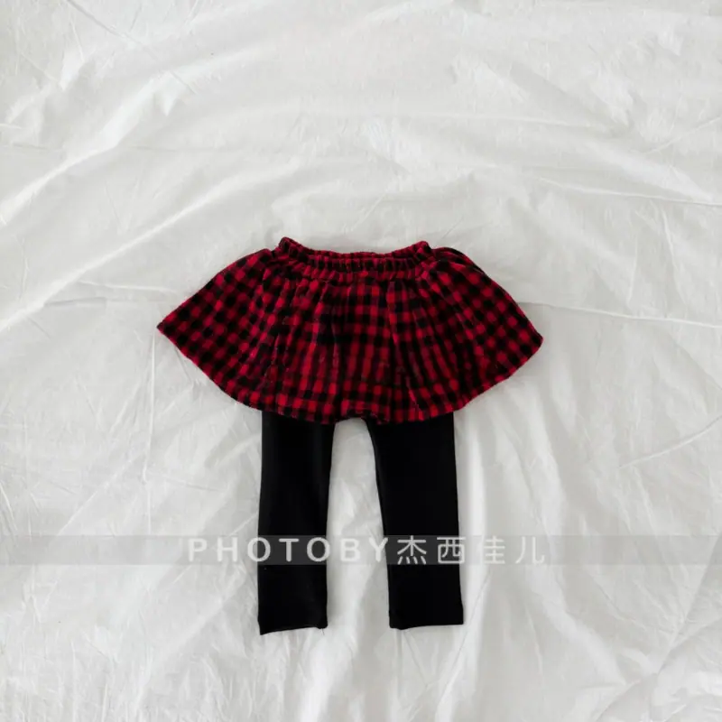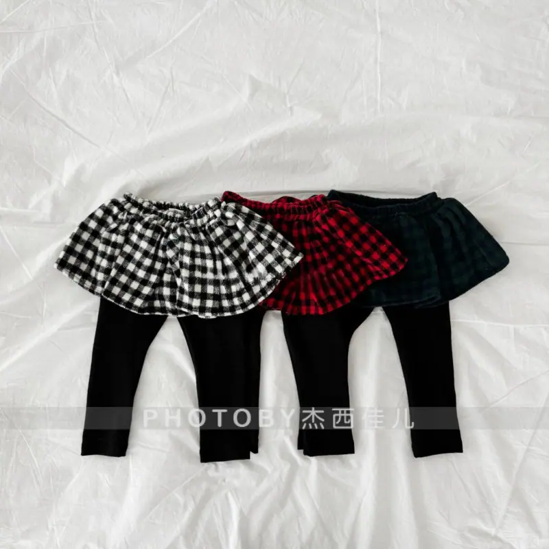Compra Leggings Infantiles 2025 Nuevos Forrados de Felpa Falsos de Dos Piezas Invierno Niñas Bebé Casual Versátiles a Cuadros Estilo Coreano Pantalón Falda al por mayor en Joom.pro