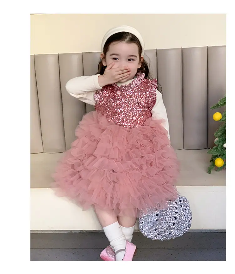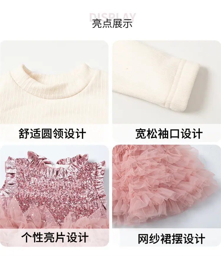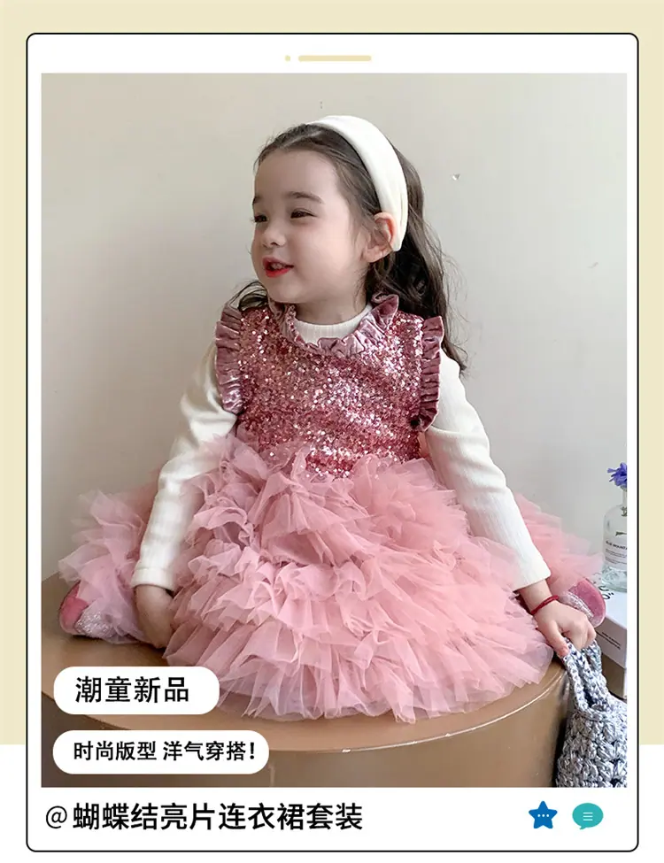 Compra Vestido de niña con forro polar Vestido de princesa de invierno Nuevo vestido de lentejuelas para niños Set de vestido para fiesta de cumpleaños de bebé de un año al por mayor en Joom.pro