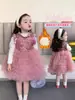 Vestido de niña con forro polar Vestido de princesa de invierno Nuevo vestido de lentejuelas para niños Set de vestido para fiesta de cumpleaños de bebé de un año