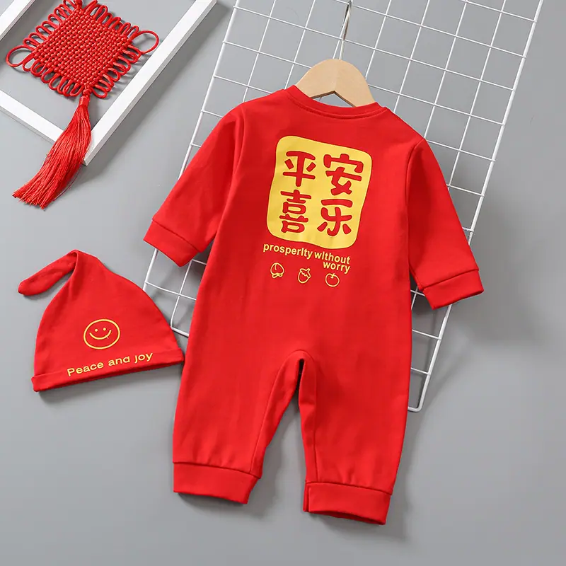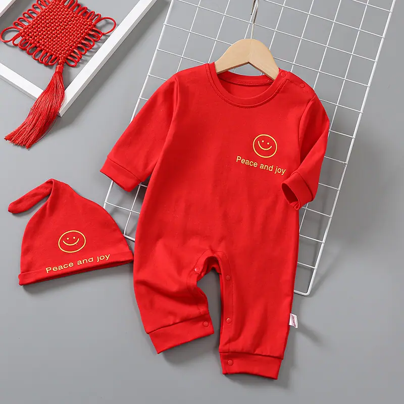 Mameluco para bebé primavera y otoño bebé recién nacido Luna Llena cien días vestido traje de otoño invierno Año Nuevo rojo