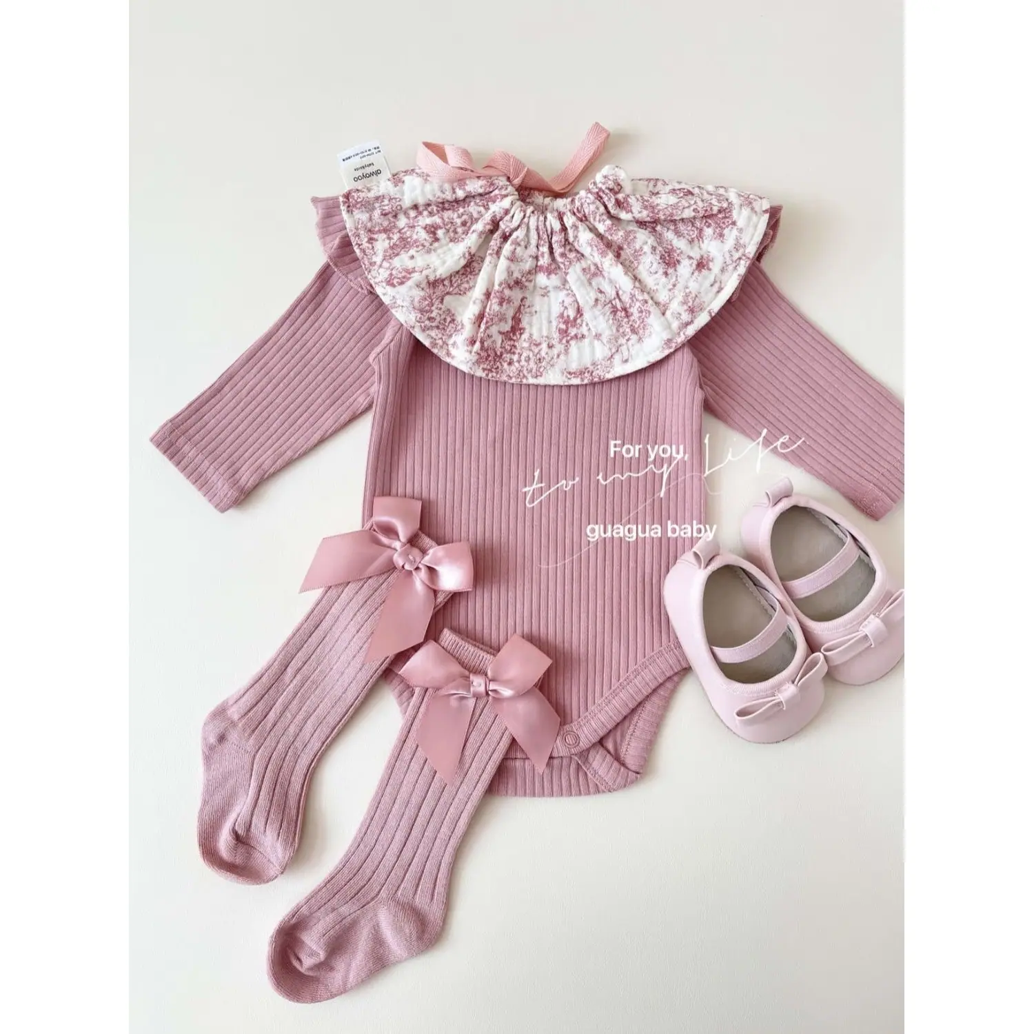 Pink clothes, pink clothes + pink socks, Pink clothes + pink bib, Pink clothes + pink socks + pink bib, Gray c...