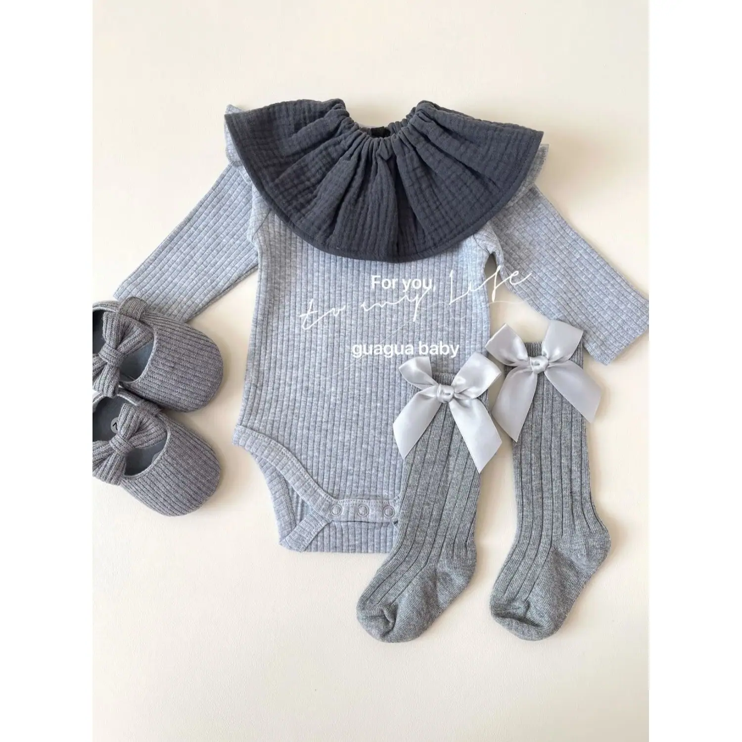 gray clothes + gray socks + gray bib