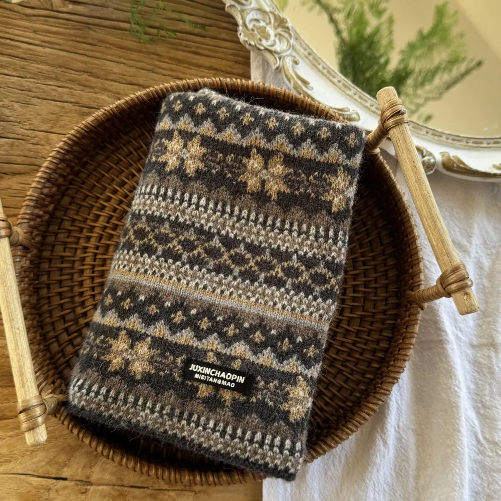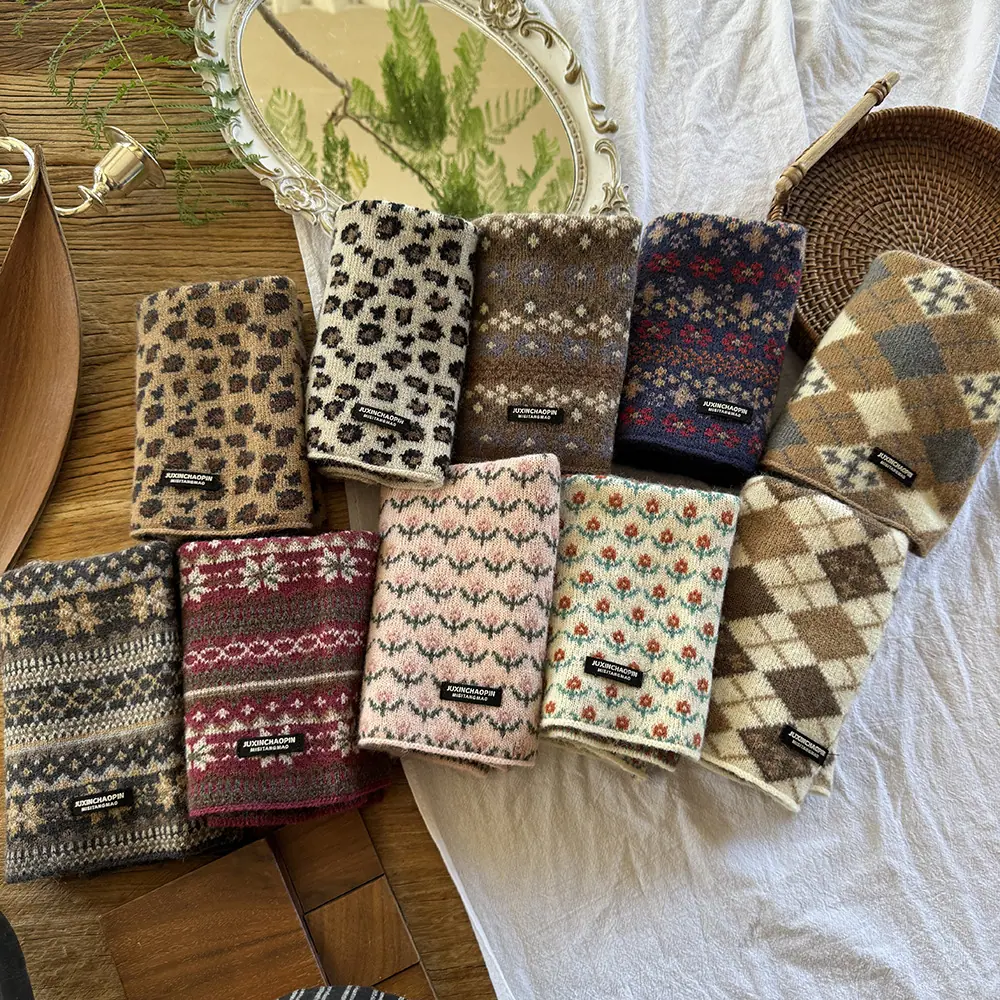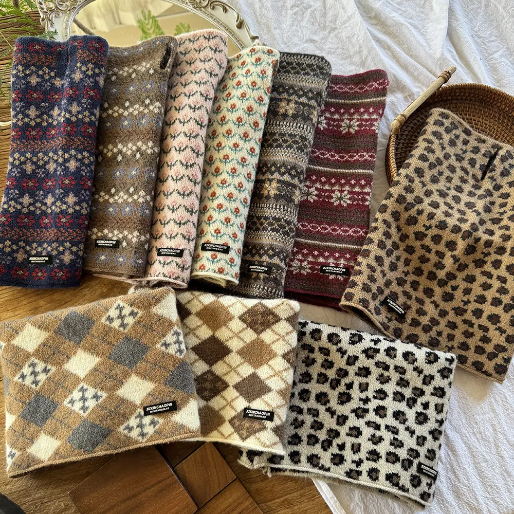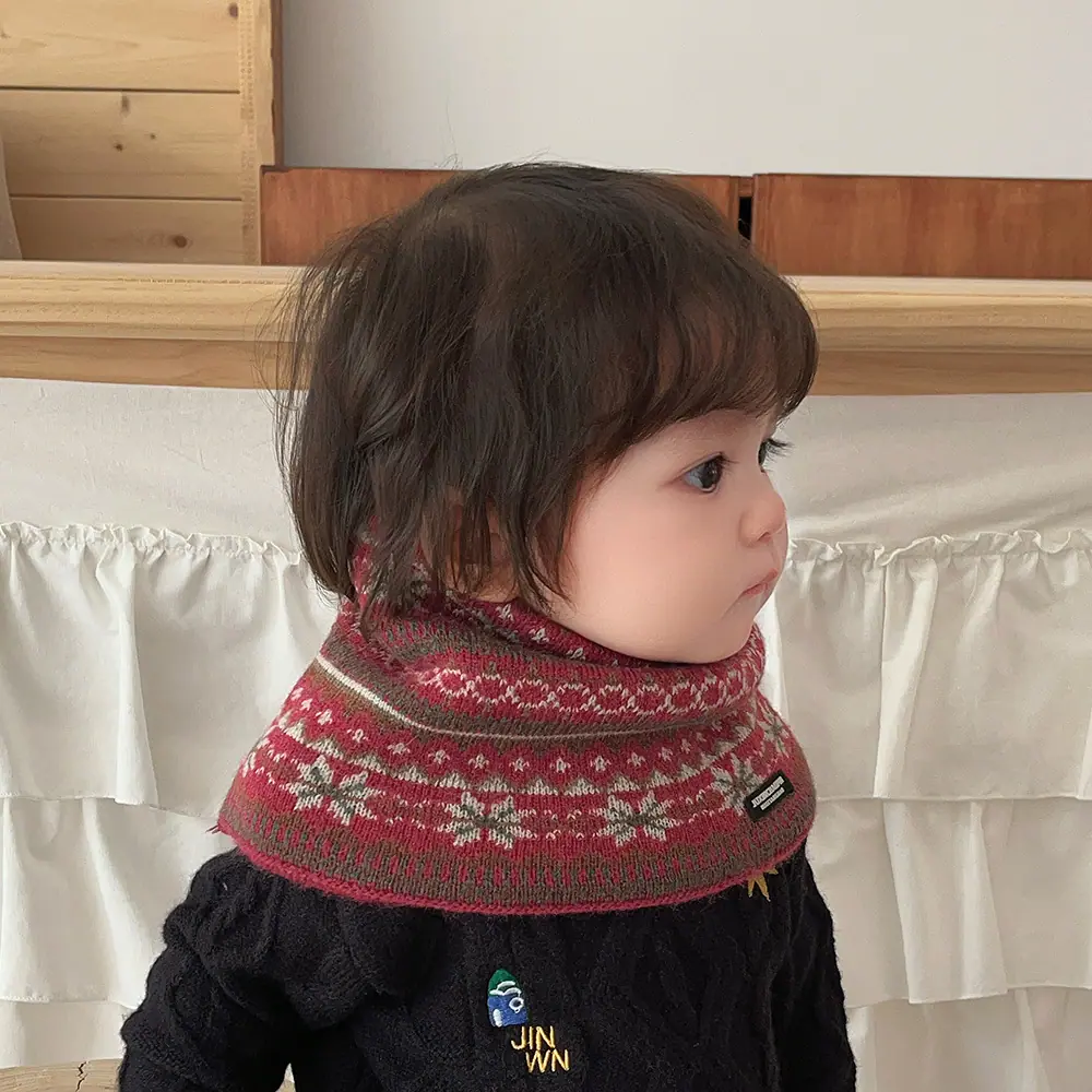 Calentador de cuello para bebé otoño e invierno cálido a prueba de viento bufanda para niños jacquard retro coreano niños y niñas protección para el cuello con orejeras polaina para el cuello