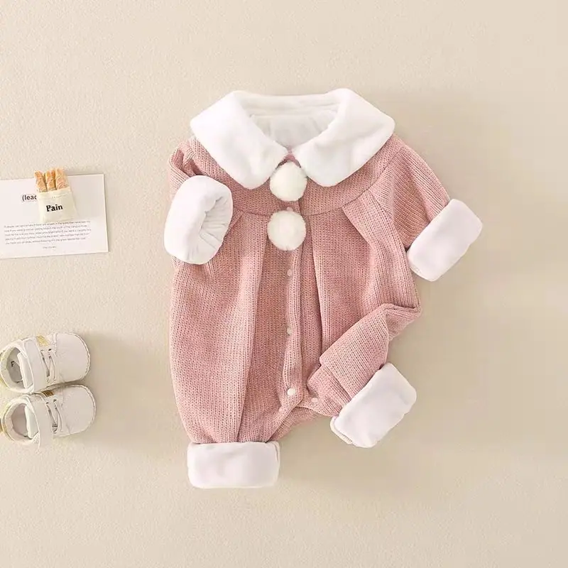 Mameluco para Bebé Estilo Otoño e Invierno Forrado de Felpa para Gatear Cálido Ropa Exterior Encantadora Niña Bebé Recién Nacido Invierno Princesa Algodón