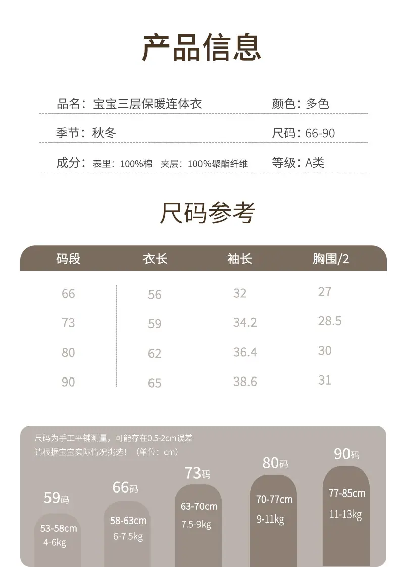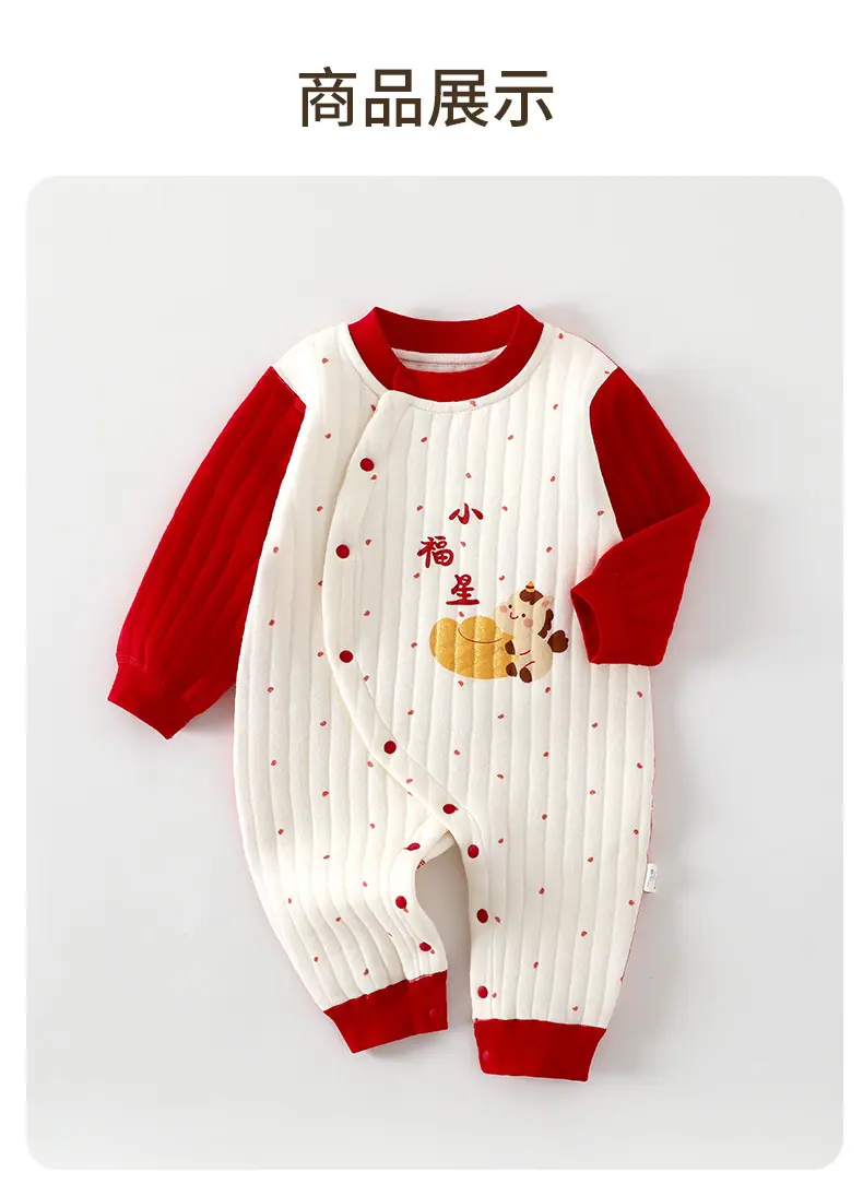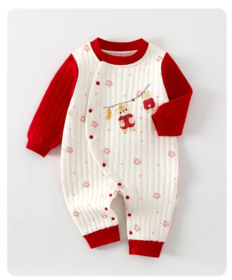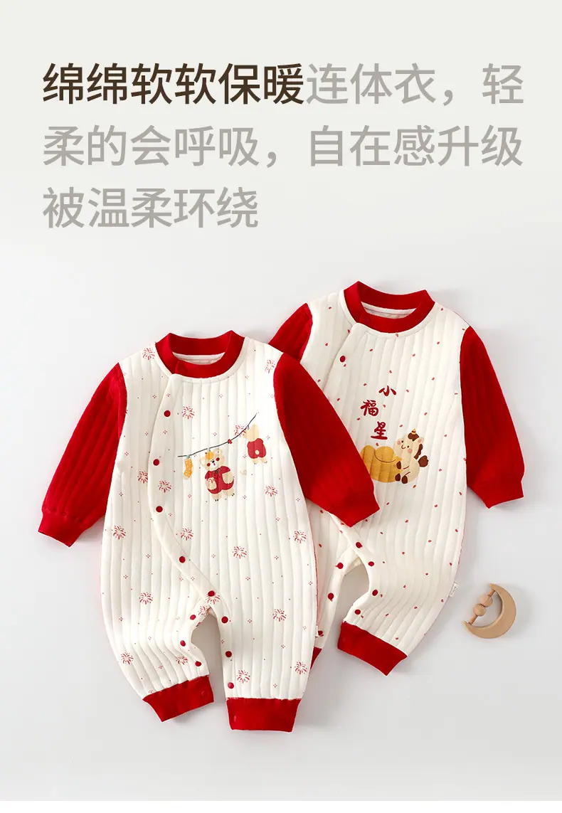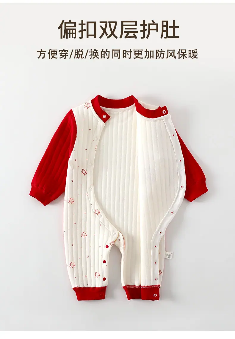 Ropa de Bebé Acolchada de Tres Capas Cálida Clase A-Recién Nacido Otoño e Invierno Mameluco Delgado de Algodón Mameluco Grueso para Bebé Otoño e Invierno