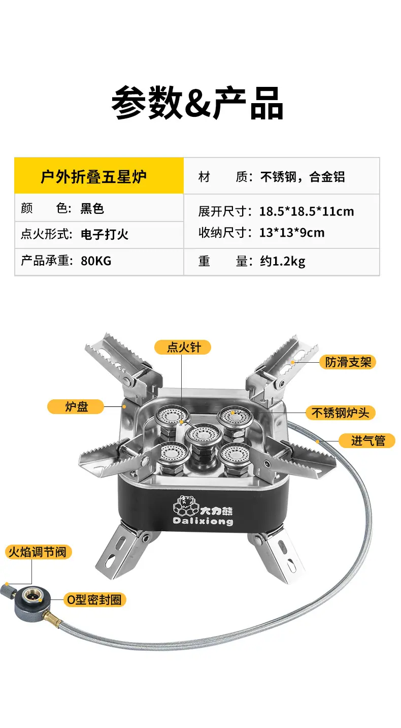 Oso Dali Estufa Feroz Cinco Estrellas Conveniente Camping al Aire Libre y Camping Al Aire Libre a Prueba de Viento Gas Estufa de Gas Estufa de Cartón