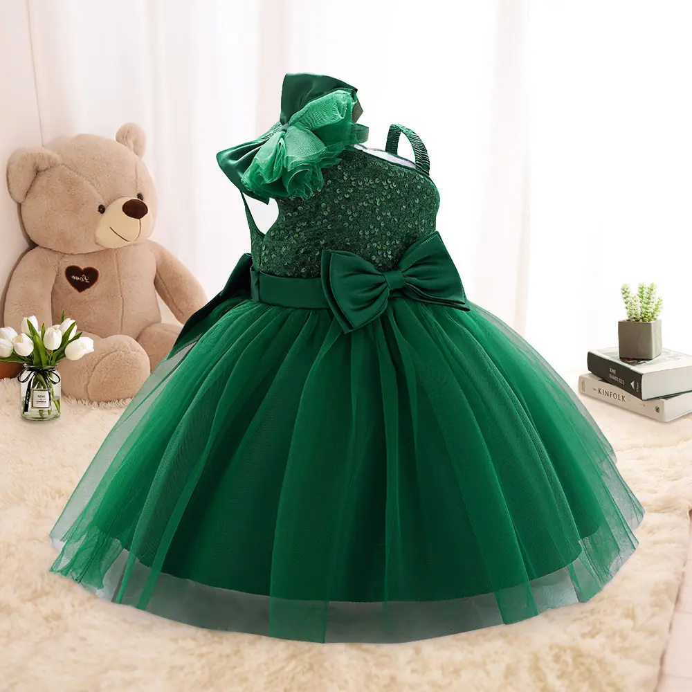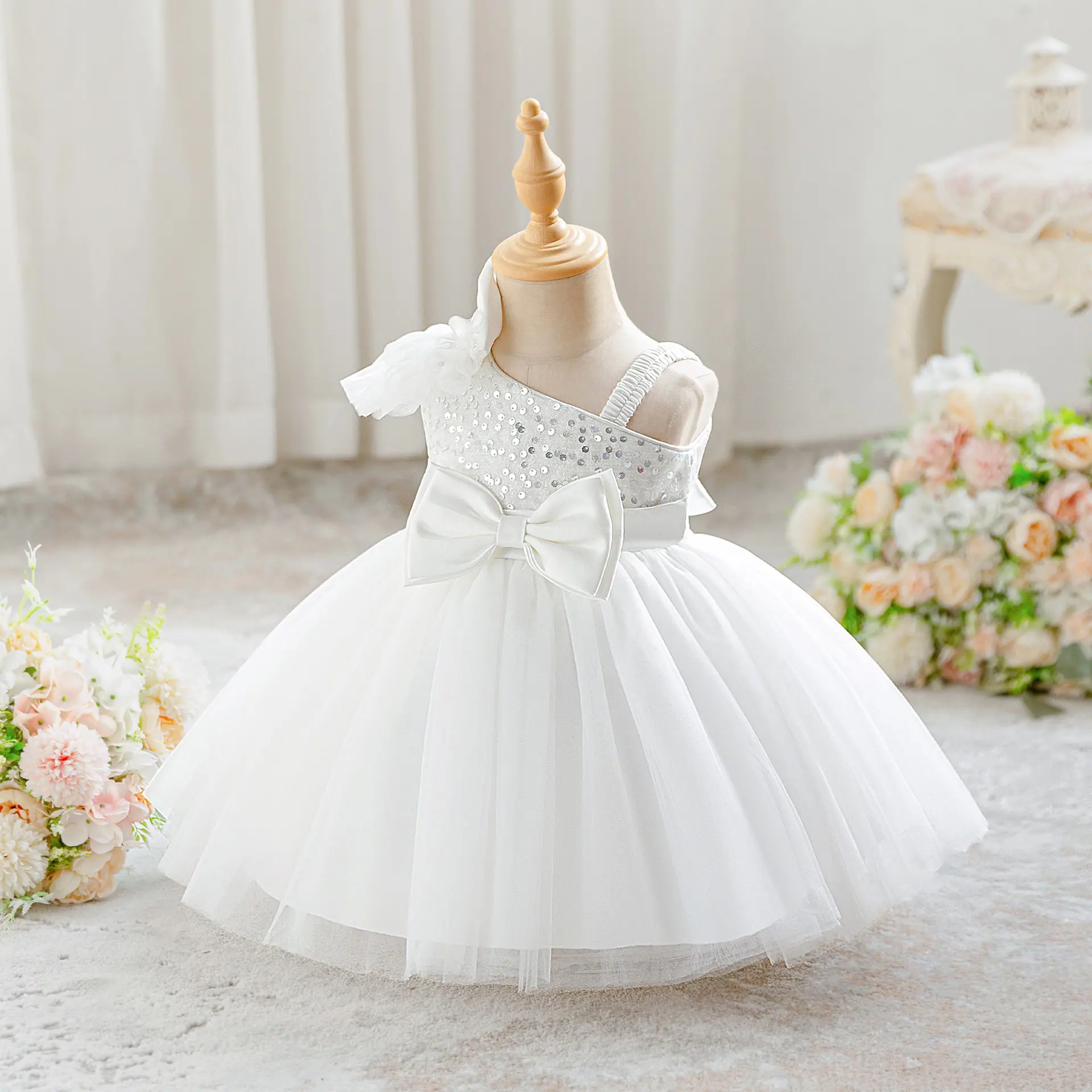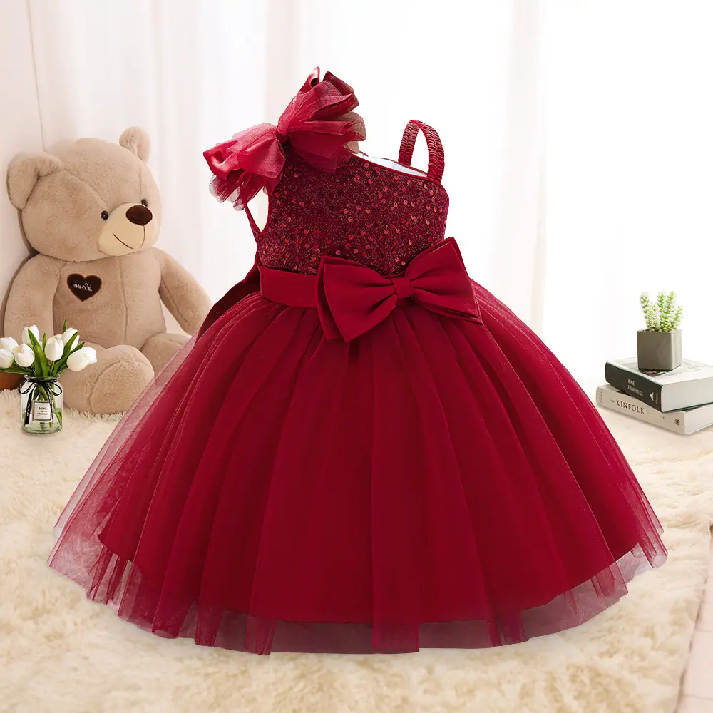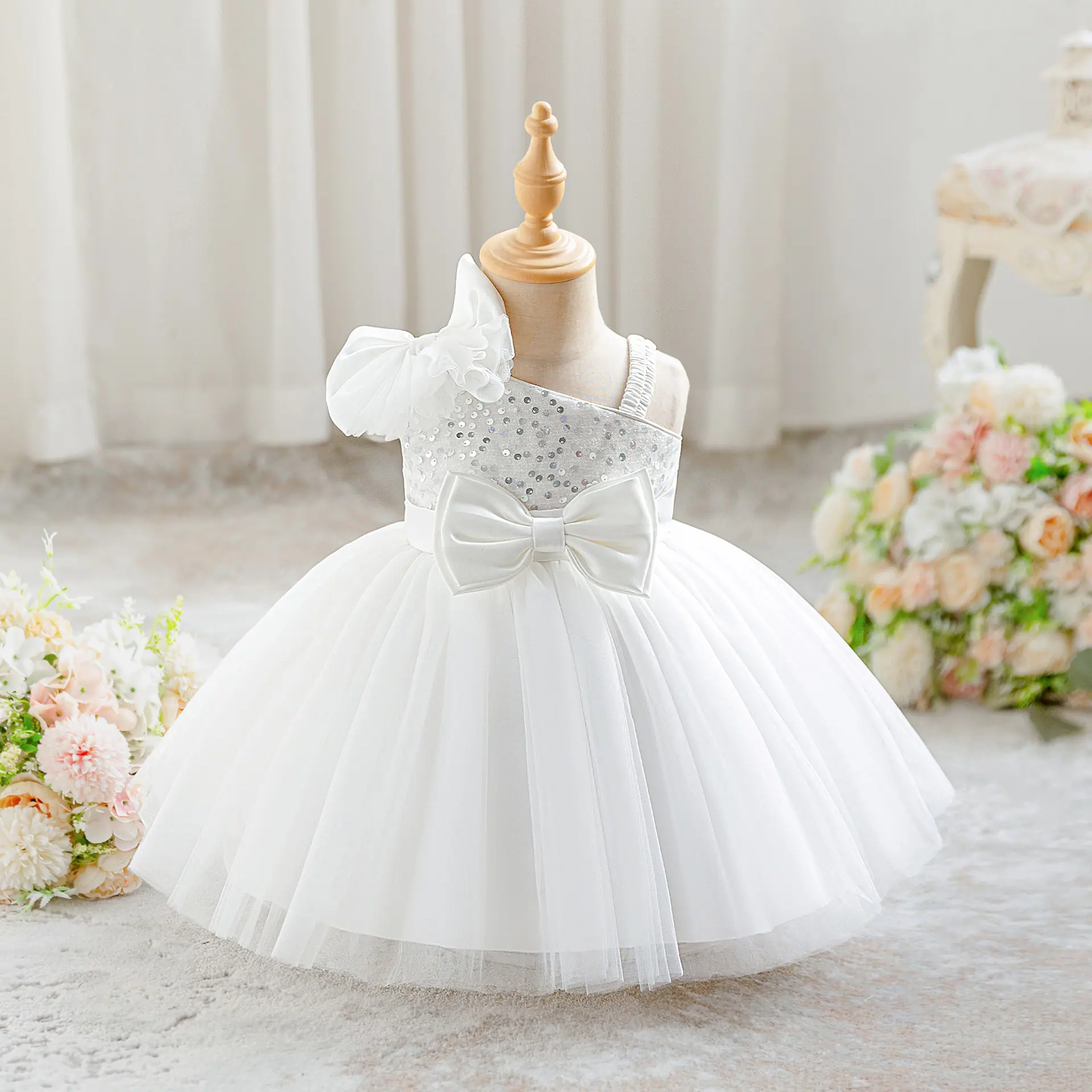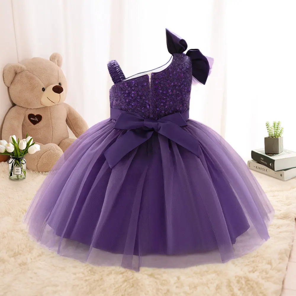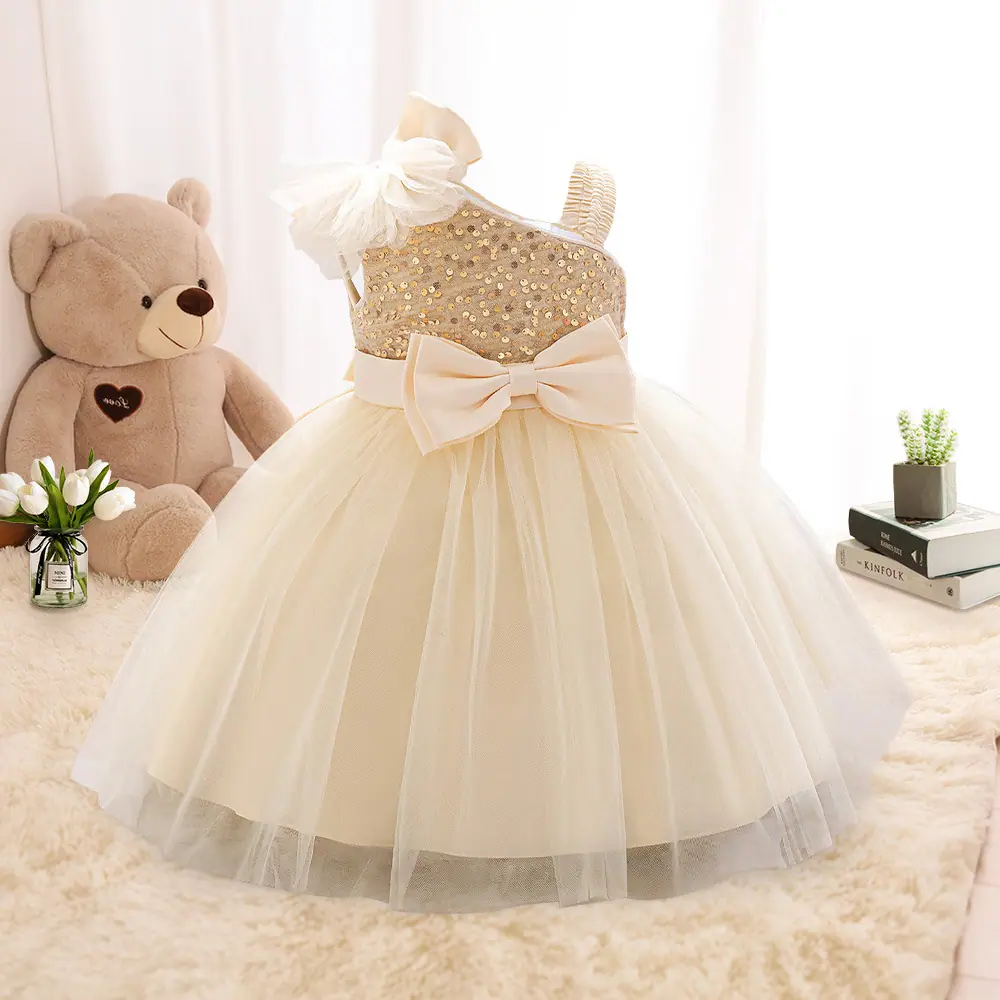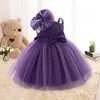 Vestido al por mayor de nuevo estilo para niña de un año, vestido de princesa de malla, vestido de noche infantil con lazo para niña pequeña, falda abullonada