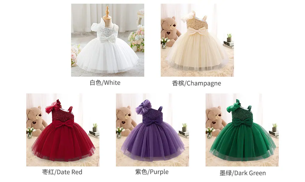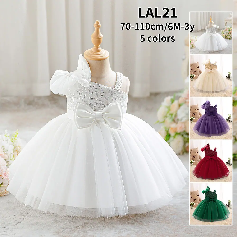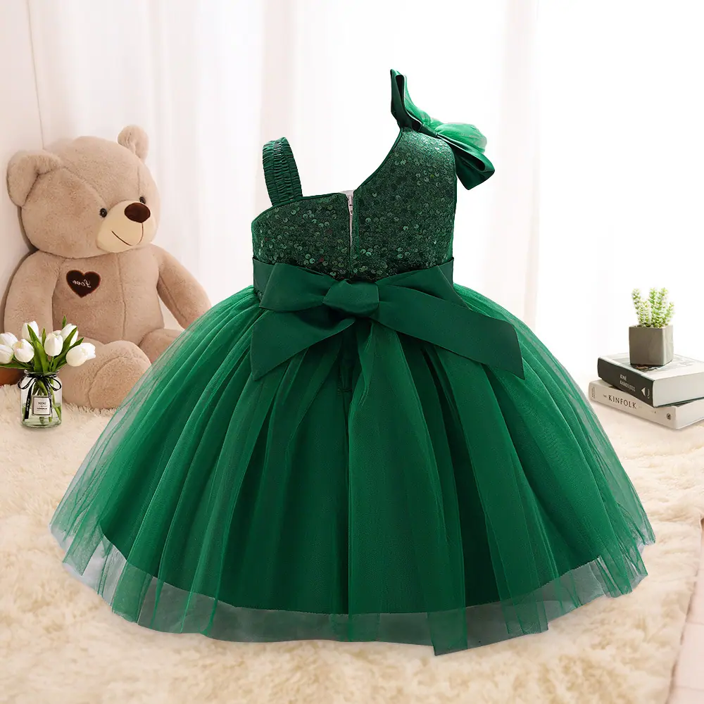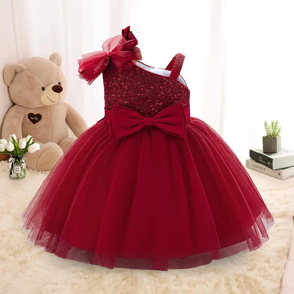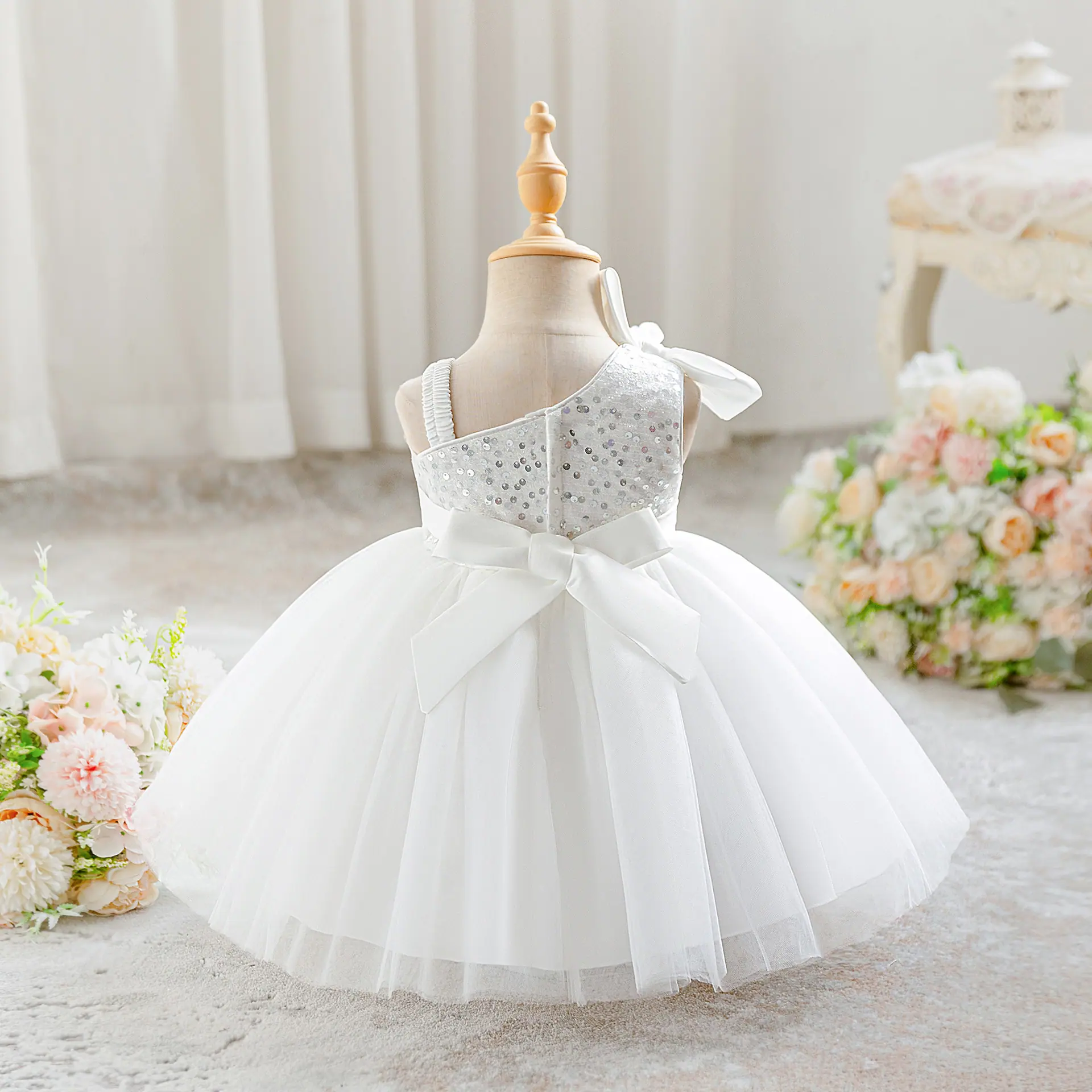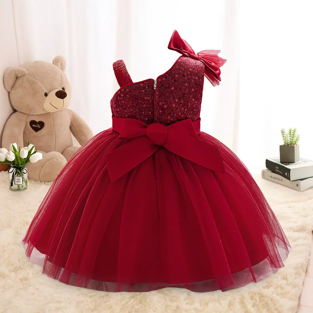 Vestido al por mayor de nuevo estilo para niña de un año, vestido de princesa de malla, vestido de noche infantil con lazo para niña pequeña, falda abullonada