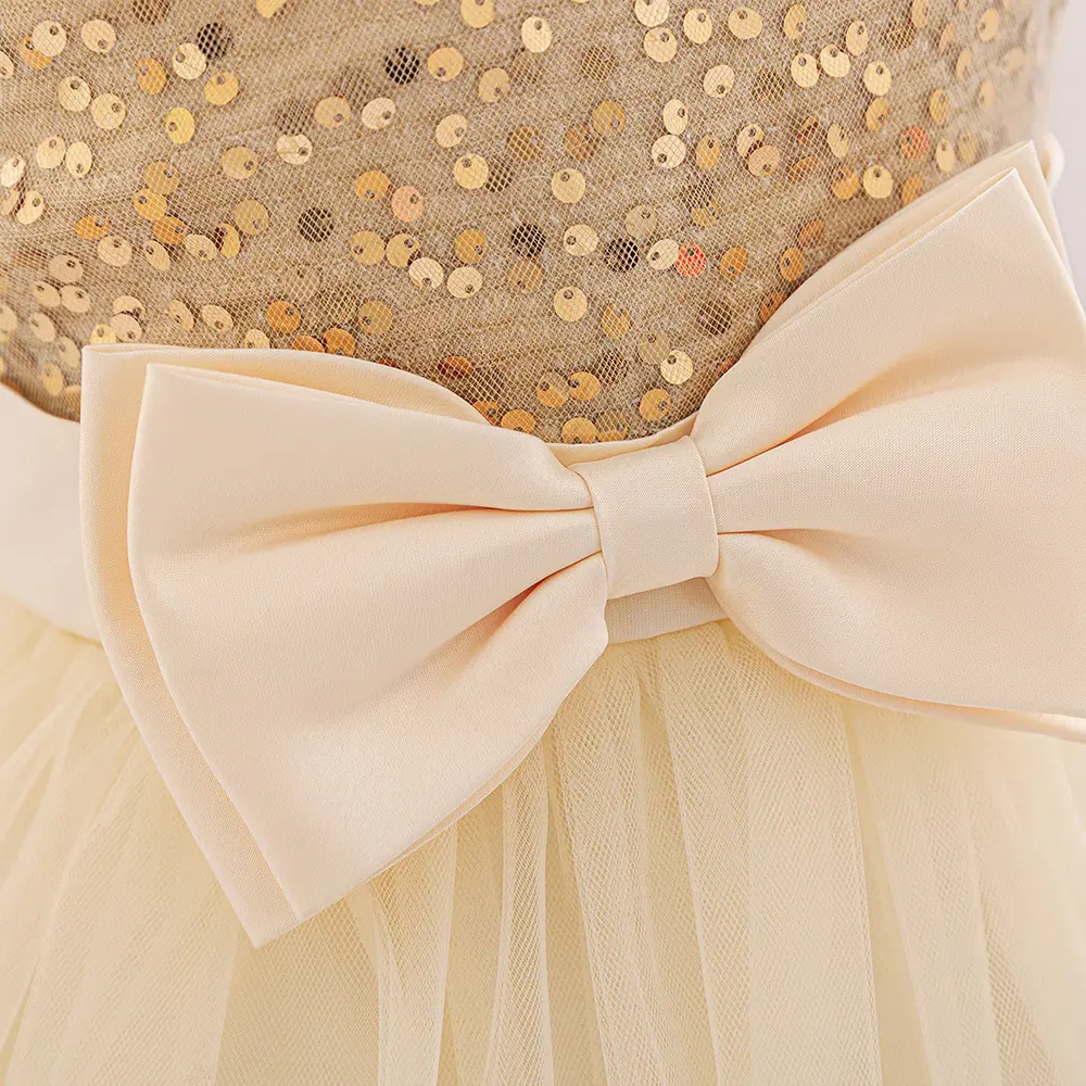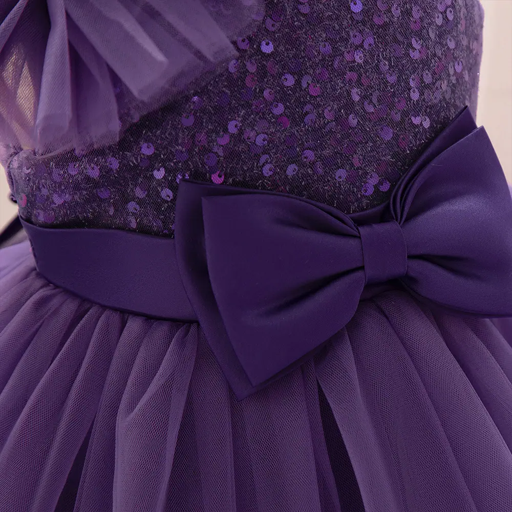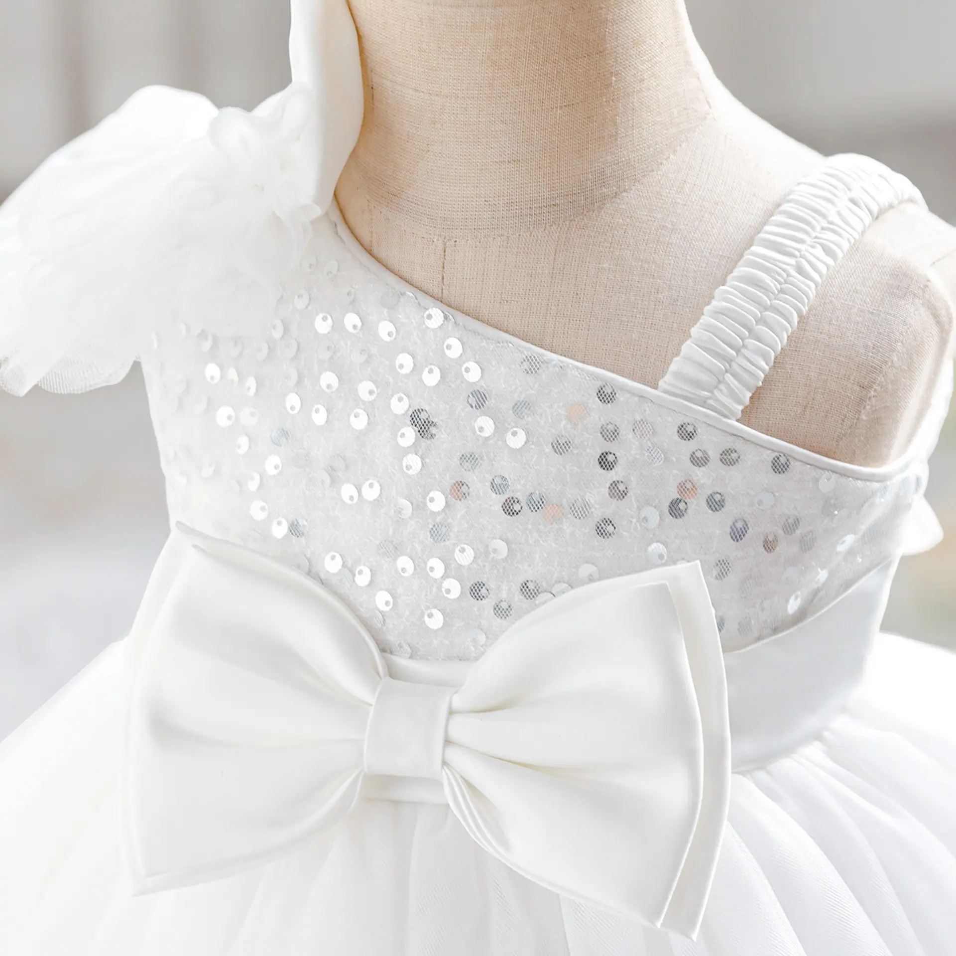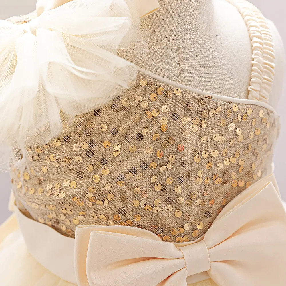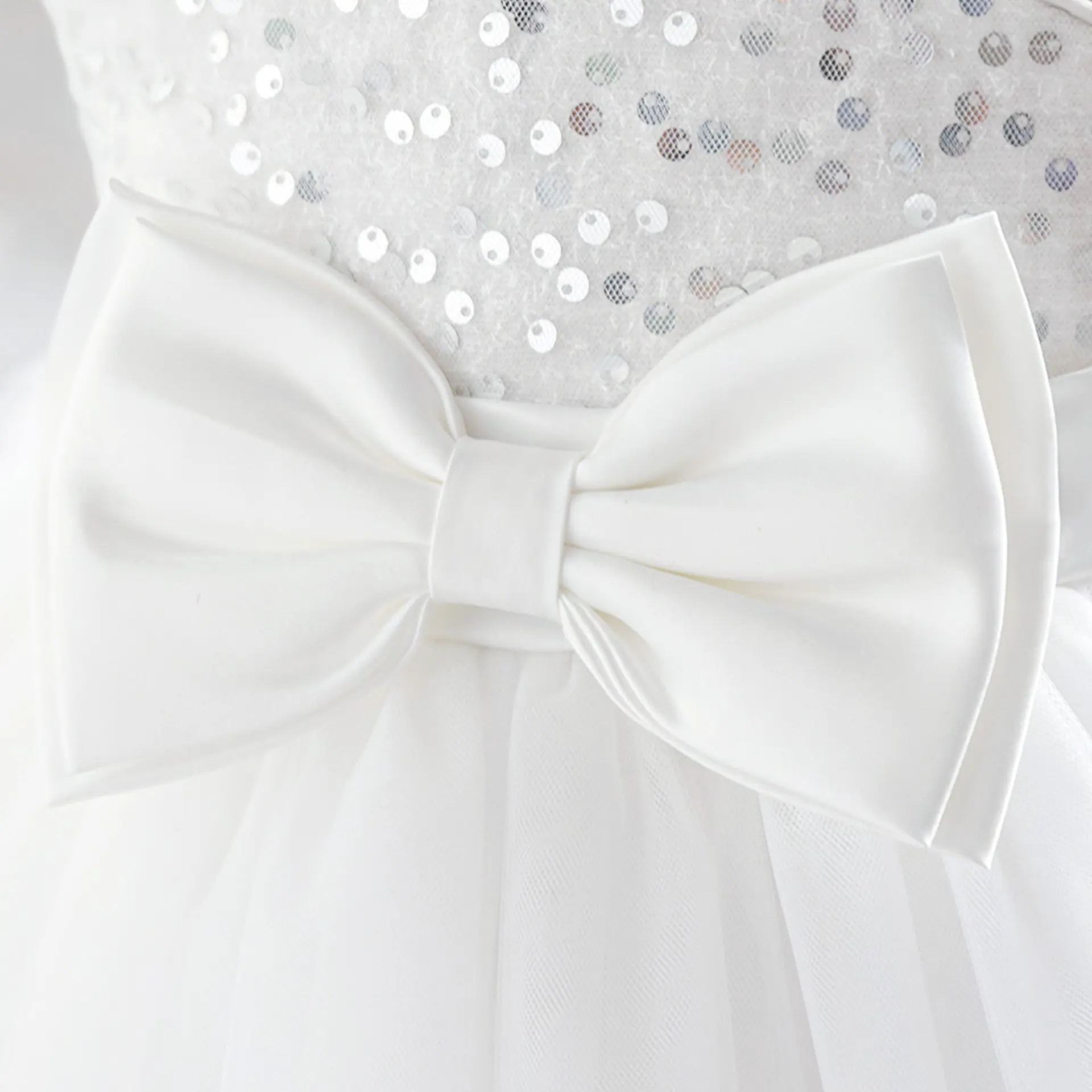 Vestido al por mayor de nuevo estilo para niña de un año, vestido de princesa de malla, vestido de noche infantil con lazo para niña pequeña, falda abullonada