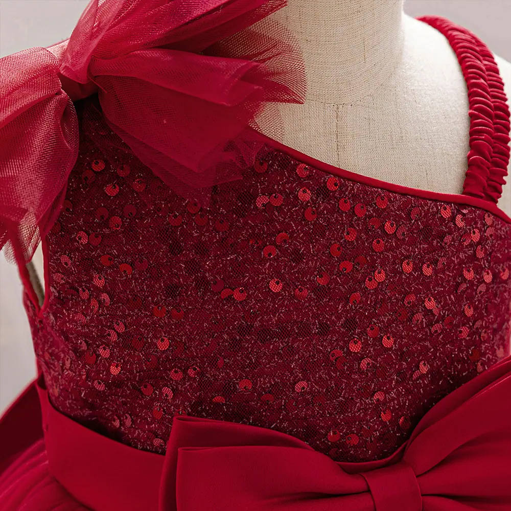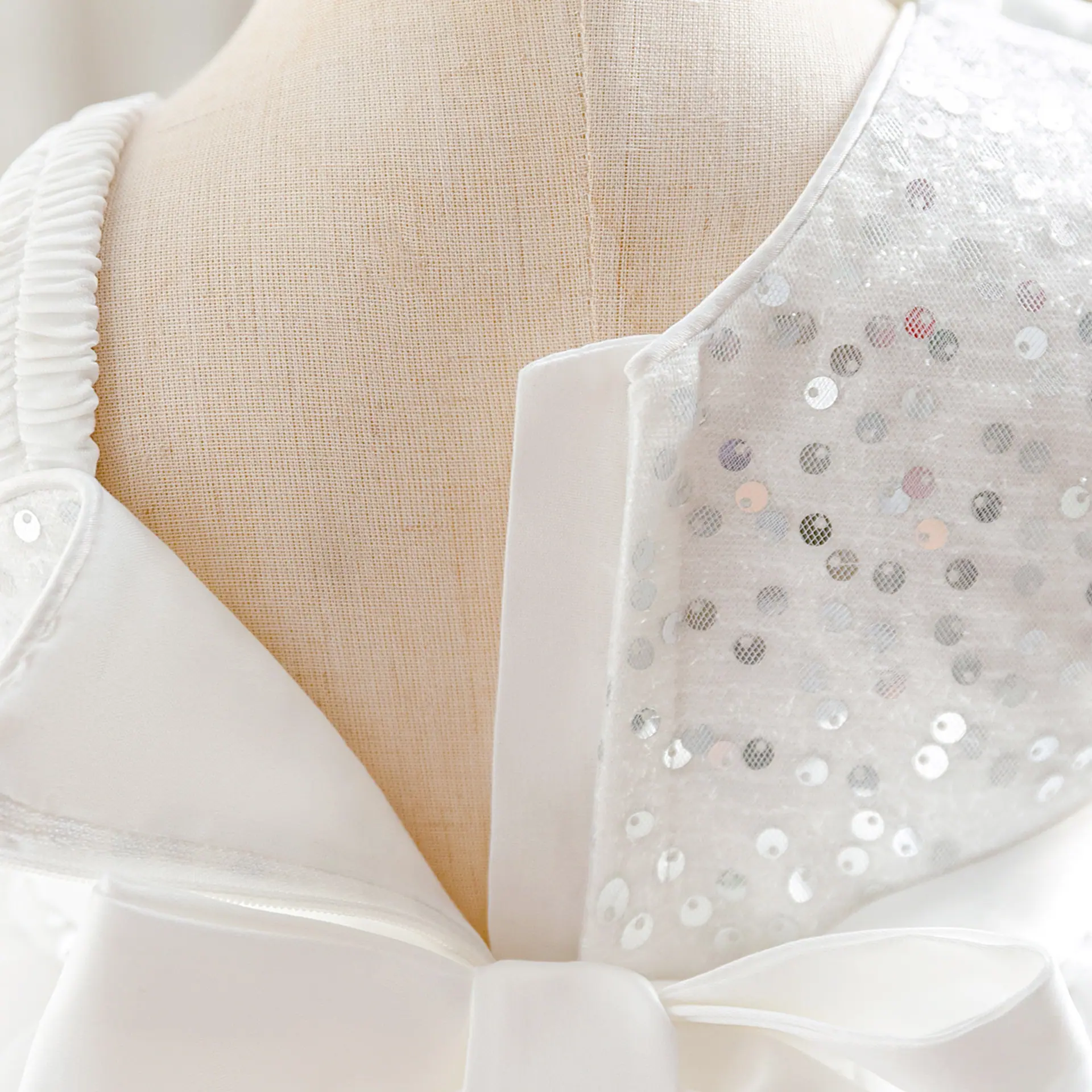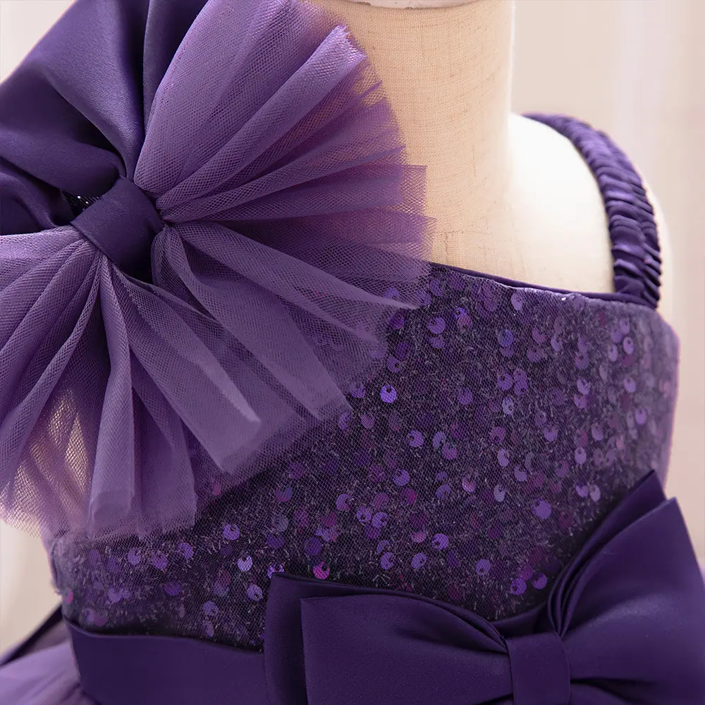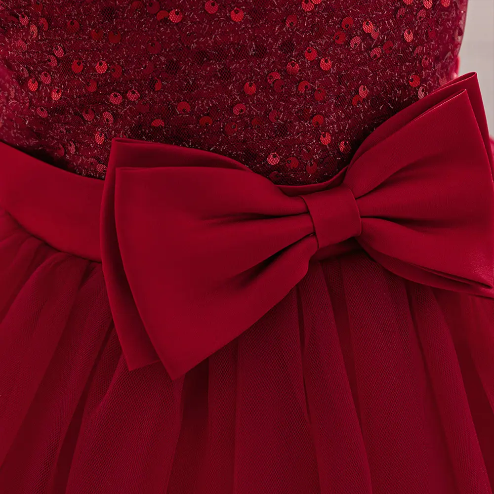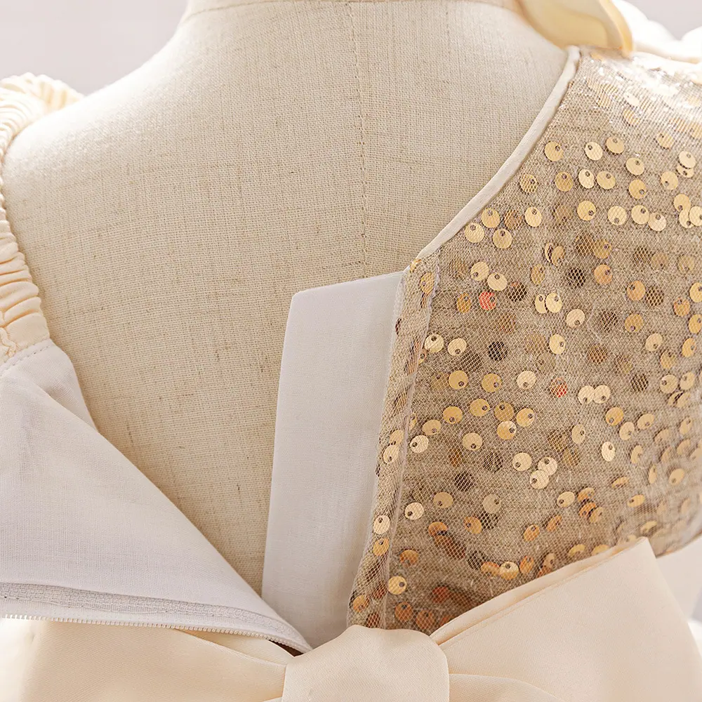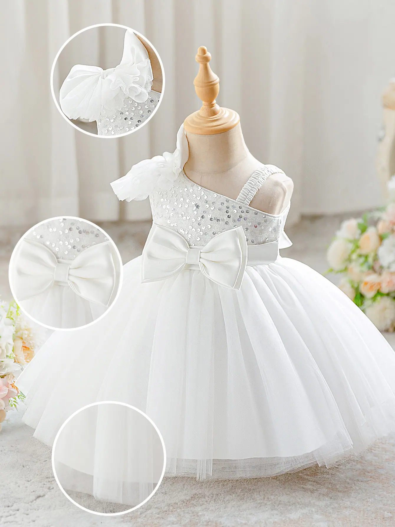 Vestido al por mayor de nuevo estilo para niña de un año, vestido de princesa de malla, vestido de noche infantil con lazo para niña pequeña, falda abullonada