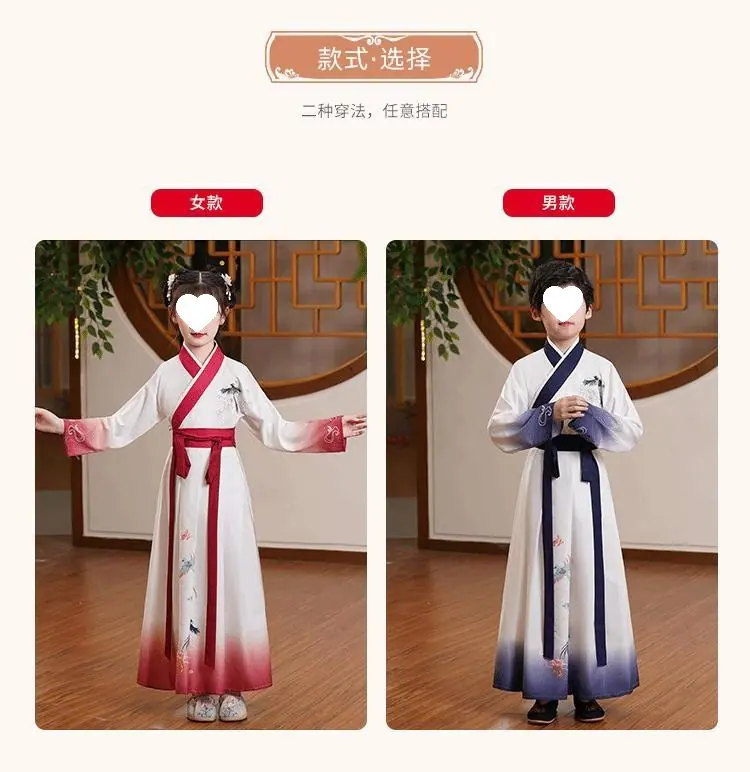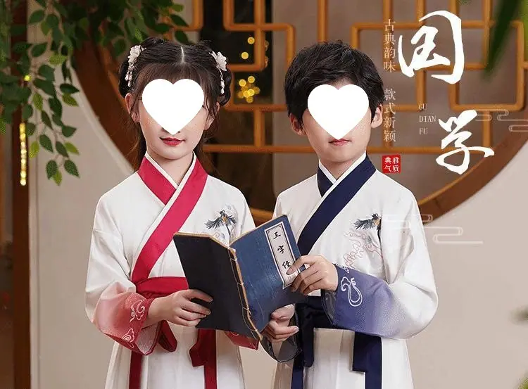 Nuevo Hanfu Ropa Guoxue para Niños Estilo Chino Traje Antiguo Ropa de Escolar Traje de Actuación para Recitación de Poesía de Estudiante de Primaria Clásico de Tres Caracteres