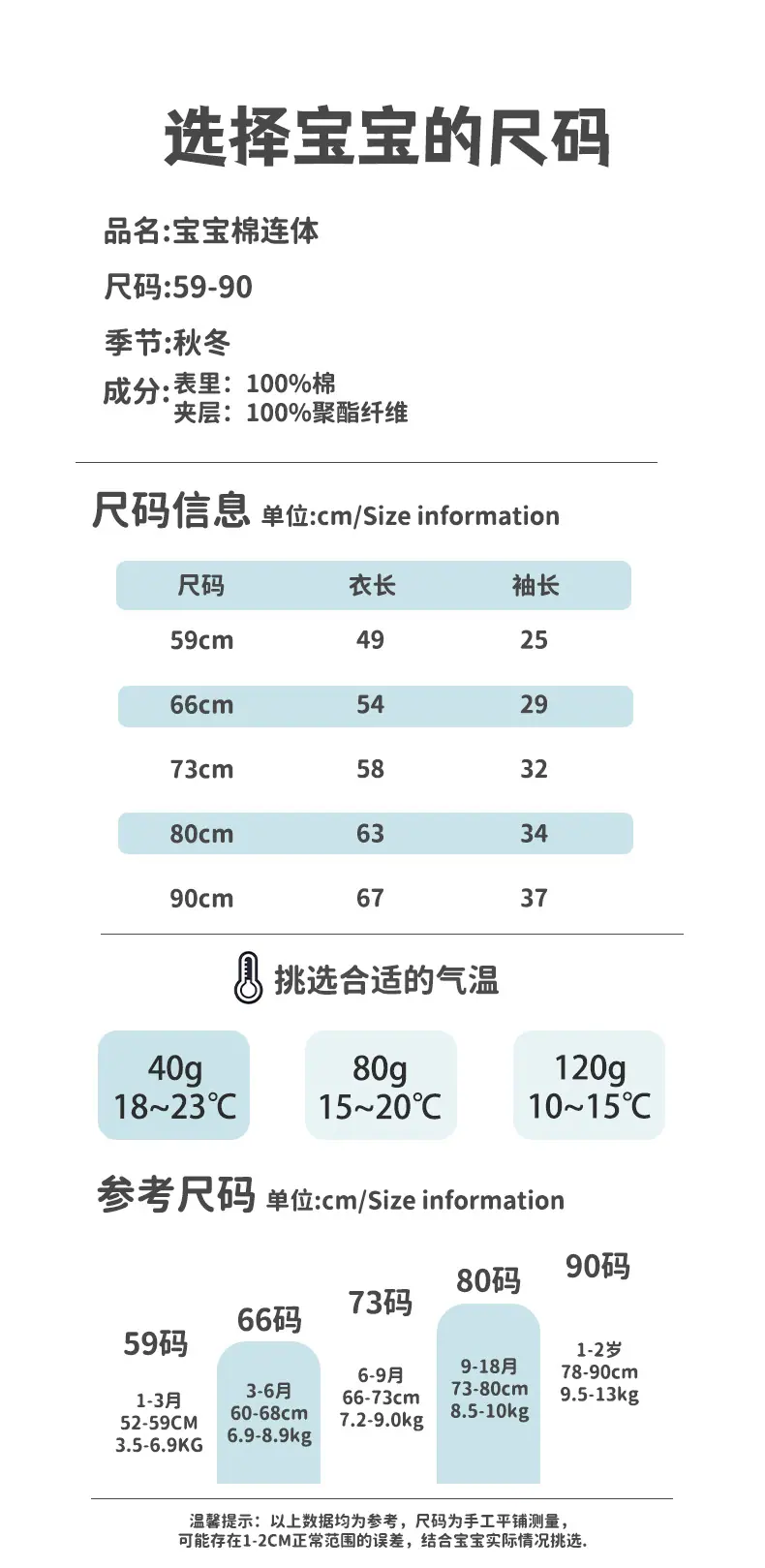 Mameluco para Bebé 40g Clase A Algodón Puro Otoño e Invierno Ropa de Bebé Ropa de Algodón Cálida Lindo Traje para Gatear
