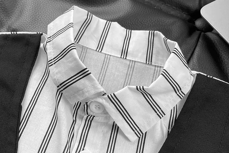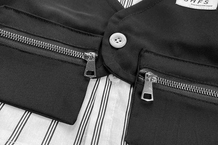 Gray Faux Two-Piece Suit Short Sleeve Set, Black Faux Two-Piece Suit Short Sleeve Set