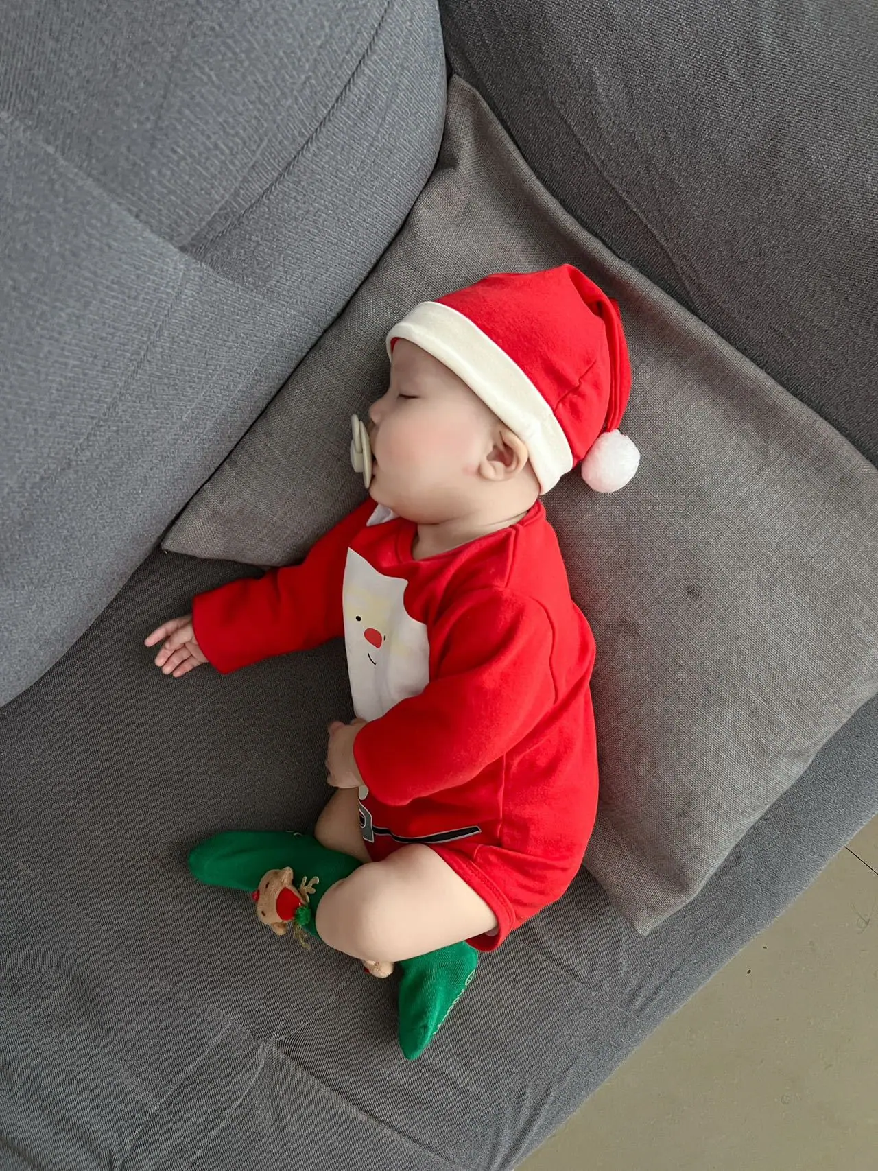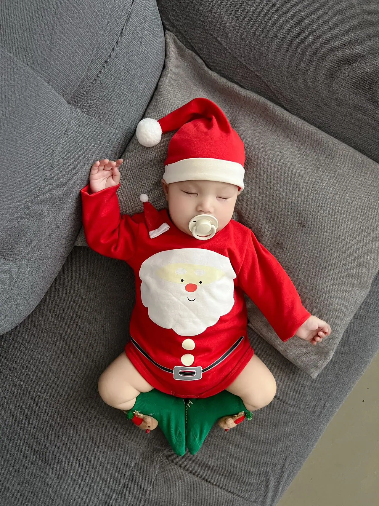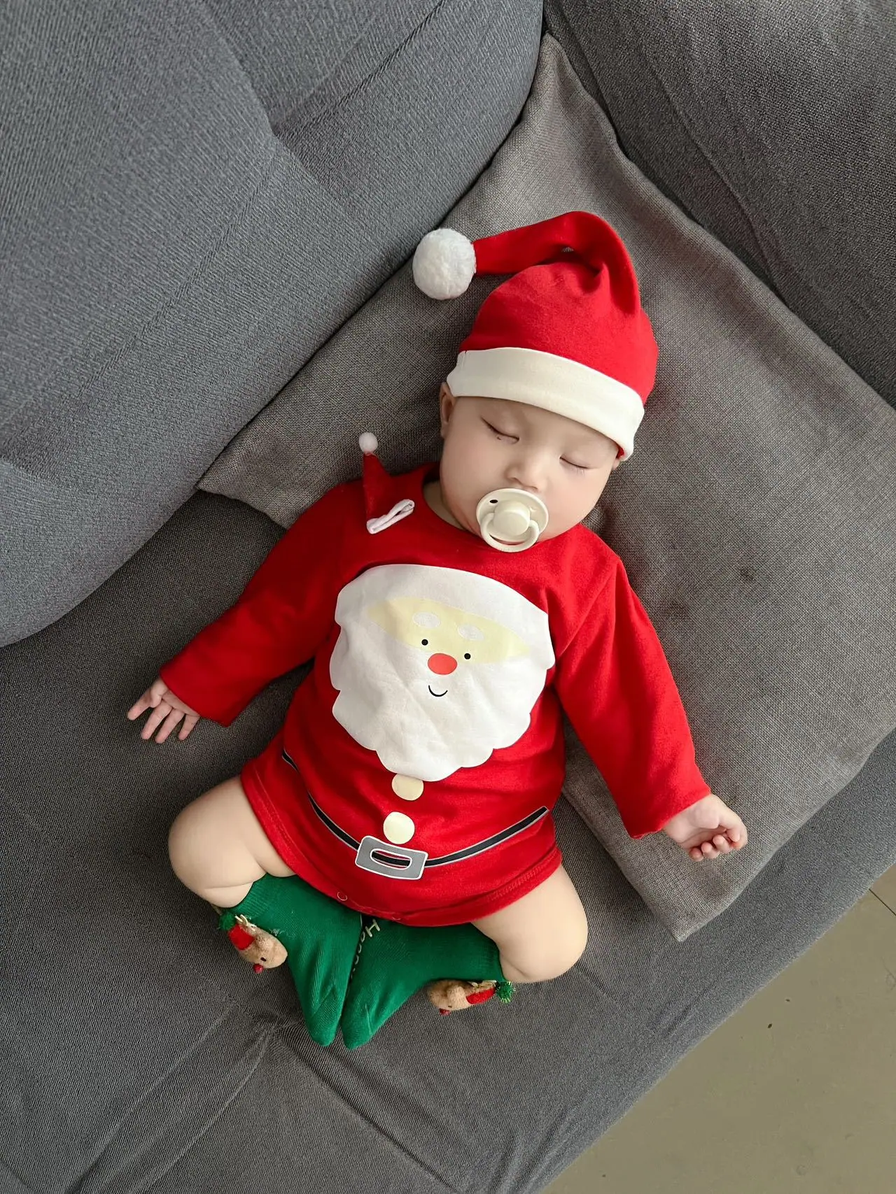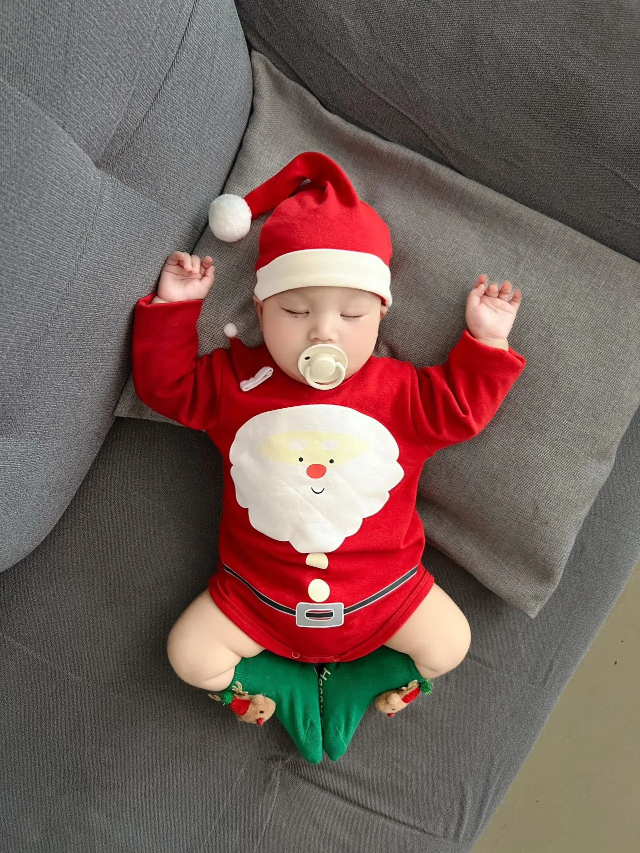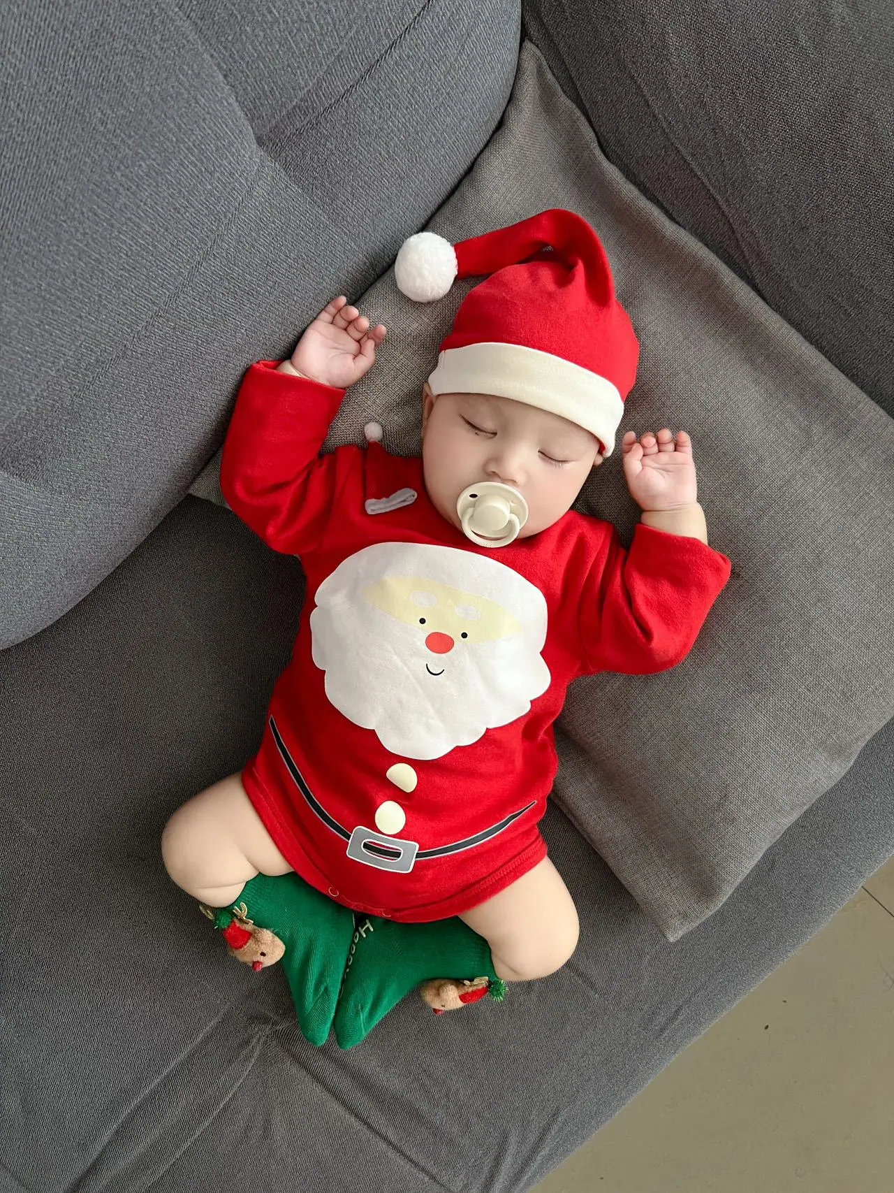 Mameluco Navideño para Bebé 25 Otoño Nuevo Estilo Coreano Manga Larga Traje para Gatear de Bebé Ins Traje con Bolsa para Niños