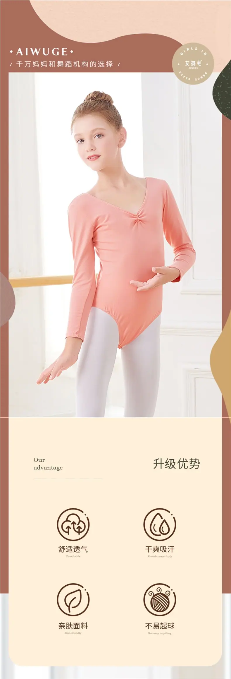 Ropa de baile para niños ropa de práctica de danza media para niñas primavera y otoño manga larga ballet gimnasia modelado corporal ropa de baile para niños pequeños