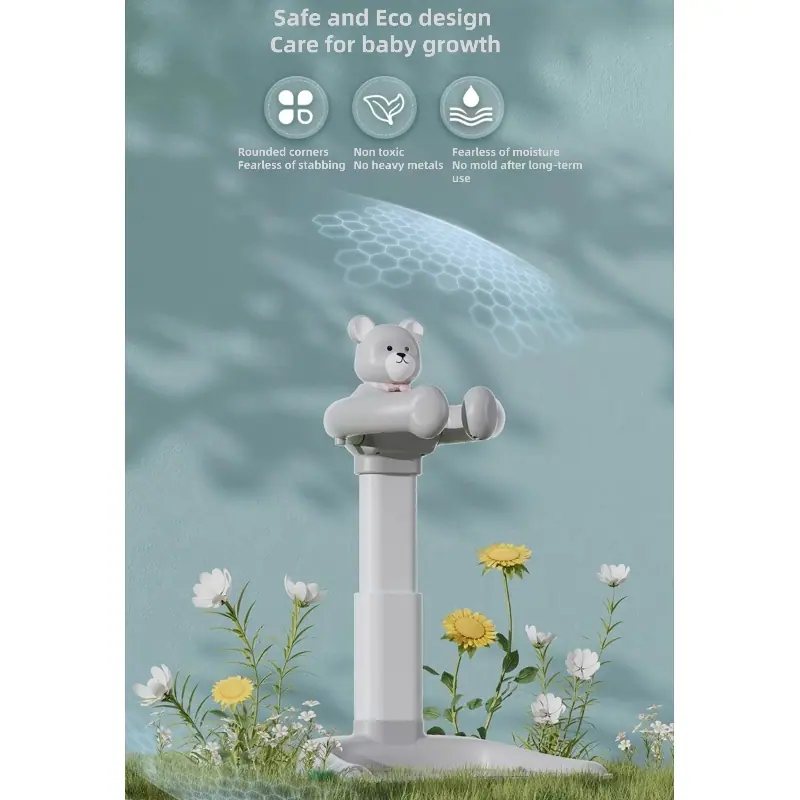 Descripción 1. Lindo cabeza de oso de silicona suave, sin miedo a los golpes. Y también puede hacer sonido, entonces más atractivo para los bebés, obtener más diversión. Al bebé le encantará. 2. Un gran ayudante para que la madre bañe al bebé/niño pequeño de 6+ meses. Fácil para el cuidador realizar la limpieza post-inodoro o cambiar un pañal cómodamente para el bebé 3. Ajuste la altura del baño según la altura del bebé. Rango de altura ajustable 34.5cm-51cm, rango de ancho ajustable 24.3cm-33.5cm. La columna de soporte ancha y robusta es lo suficientemente fuerte para soportar el peso del bebé, garantizando la estabilidad incluso cuando el bebé se cuelga de ella con fuerza. 4. Coincidir con el patrón de crecimiento de los niños. Reposabrazos semiautomático bebé travieso no puede escapar. 5. Diseño antideslizante ampliado estilo Matrix, chasis ampliado, se adhiere firmemente al suelo sin moverse. La parte trasera del soporte está equipada con un soporte para alcachofa de ducha para mayor comodidad durante el baño del bebé.. Libera tus manos.