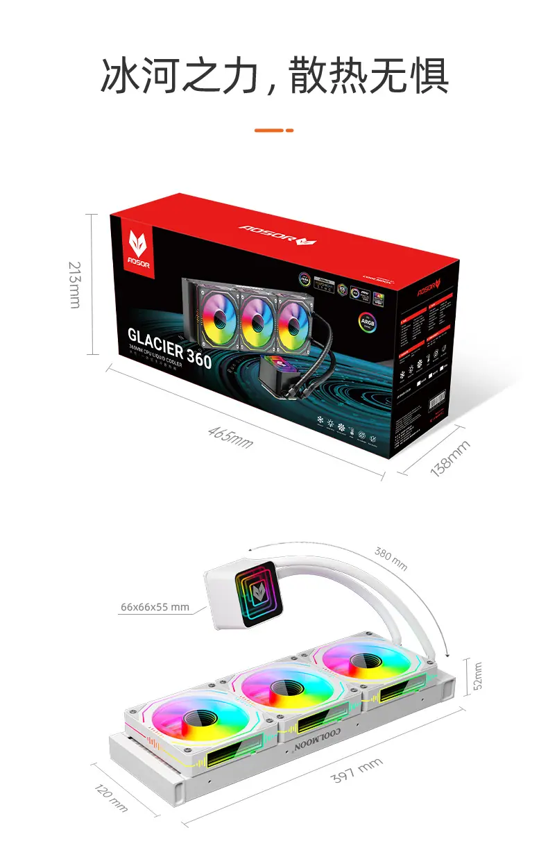 Cool Moon Glacier 360 Radiador de Refrigeración Líquida con Lente Infinity para Computadora de Escritorio Argb Todo-en-Uno Silencioso Radiador de CPU