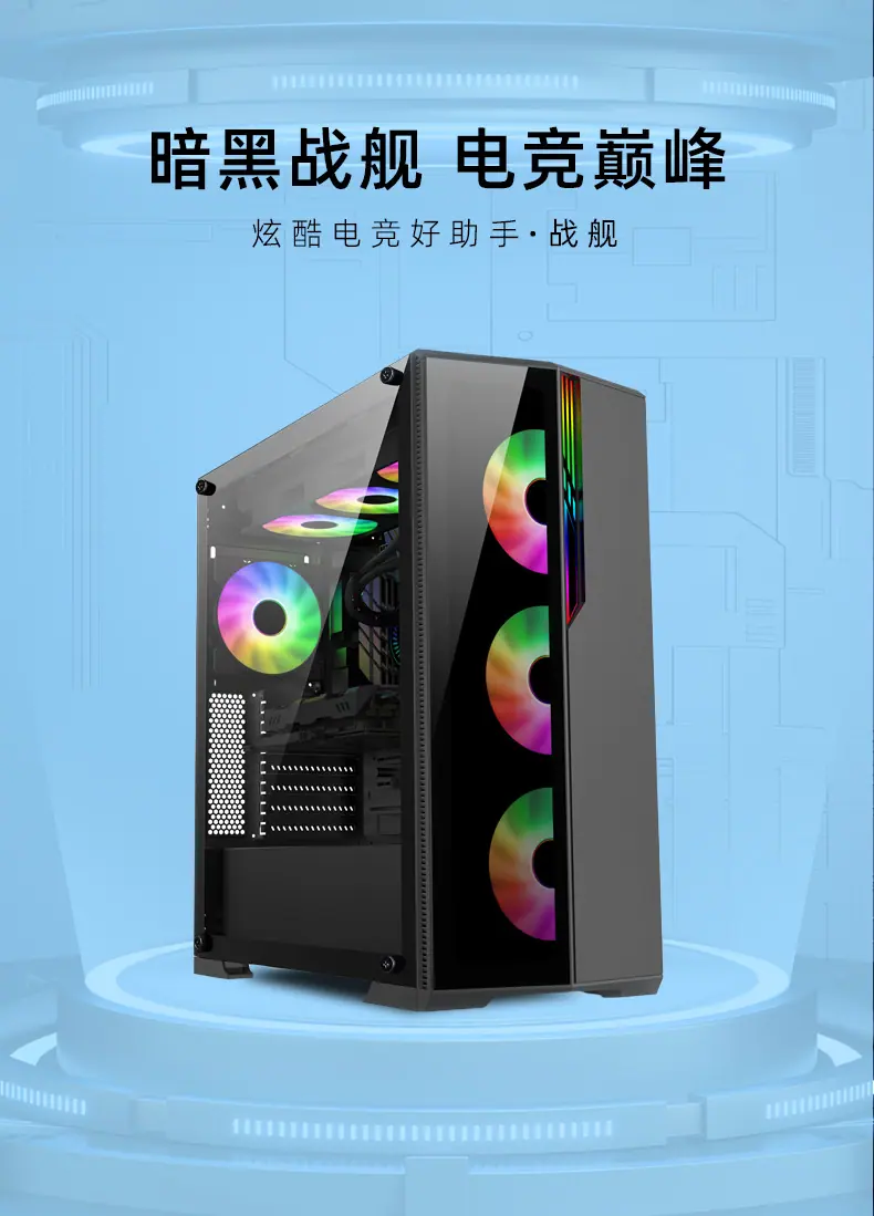 Compra Chasis de computadora de escritorio ATX grande transparente lateral panorámico transfronterizo compatible con refrigeración líquida 360 al por mayor en Joom.pro