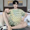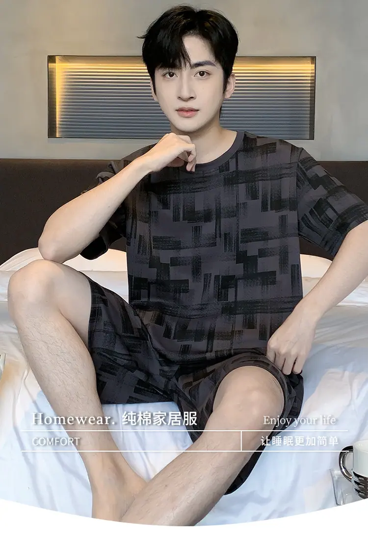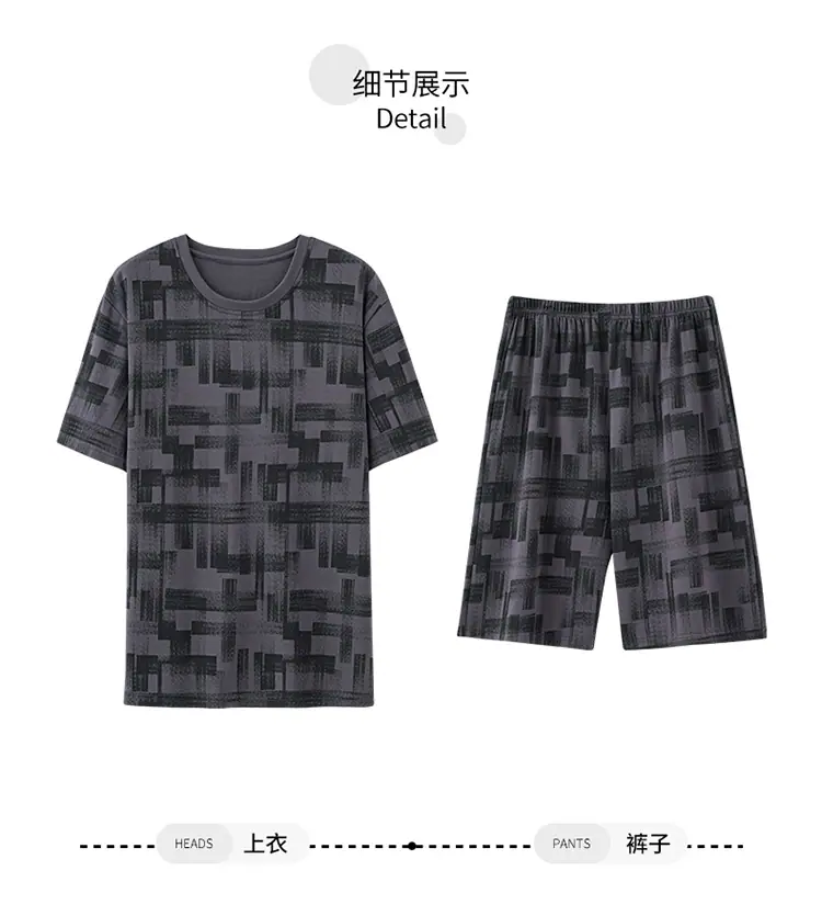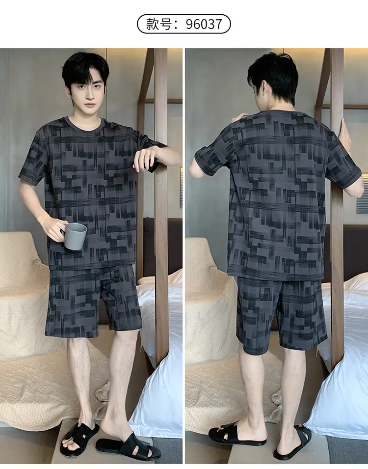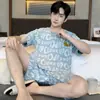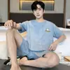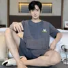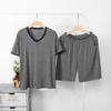Pijama para hombre de manga corta de dos piezas de algodón suave para la piel transpirable holgado cómodo talla extra traje de ropa de casa de verano para hombre