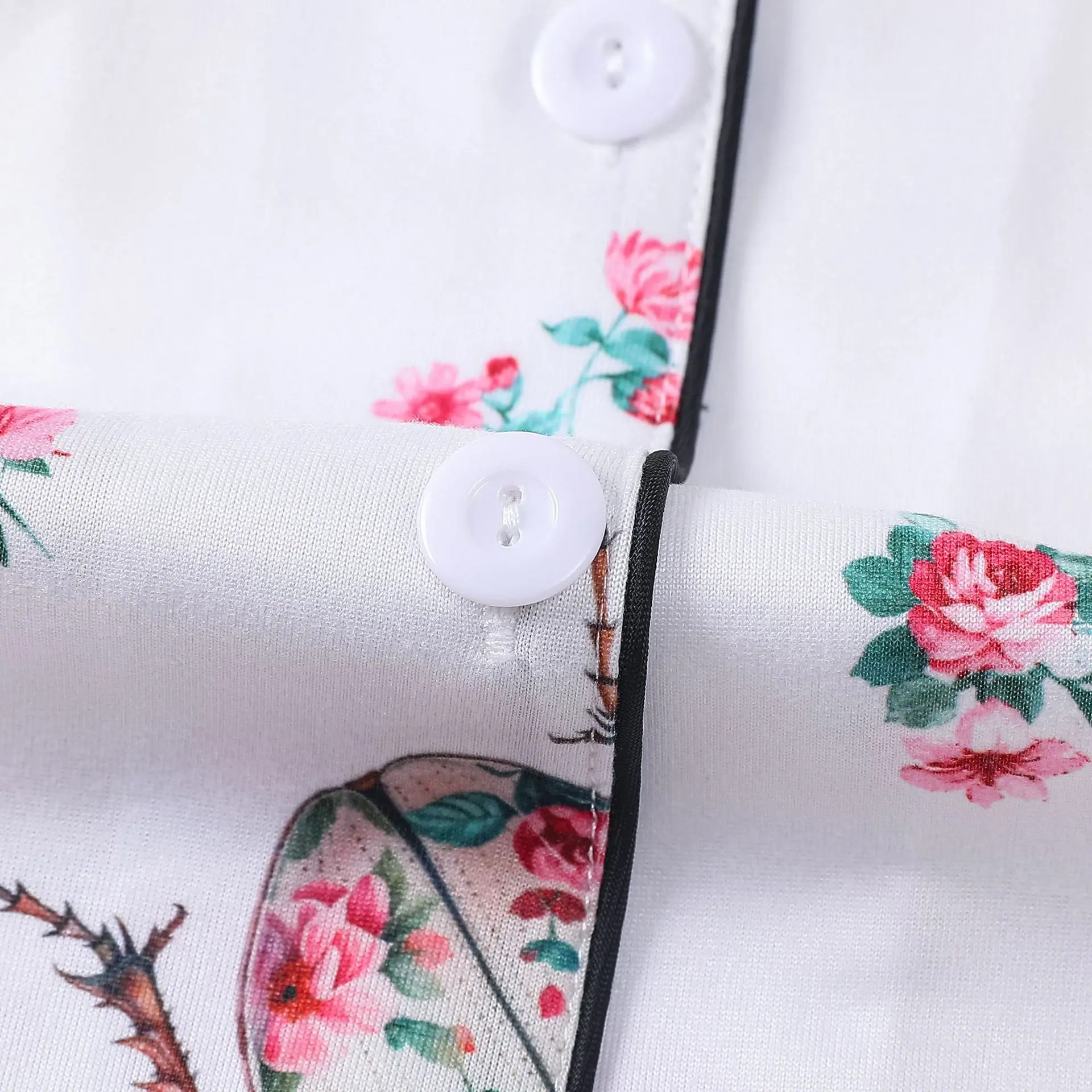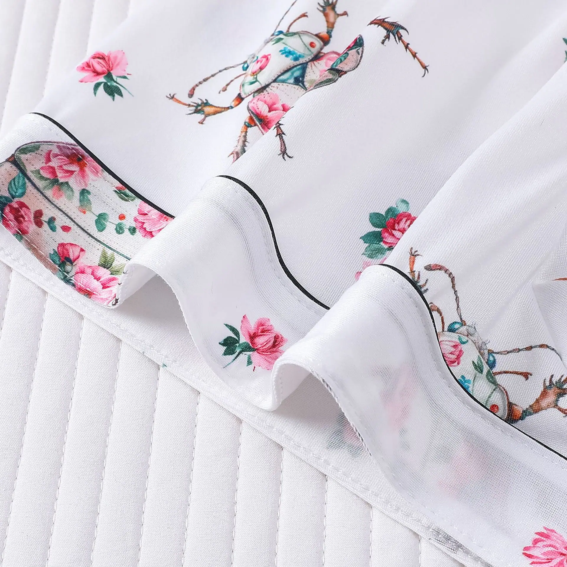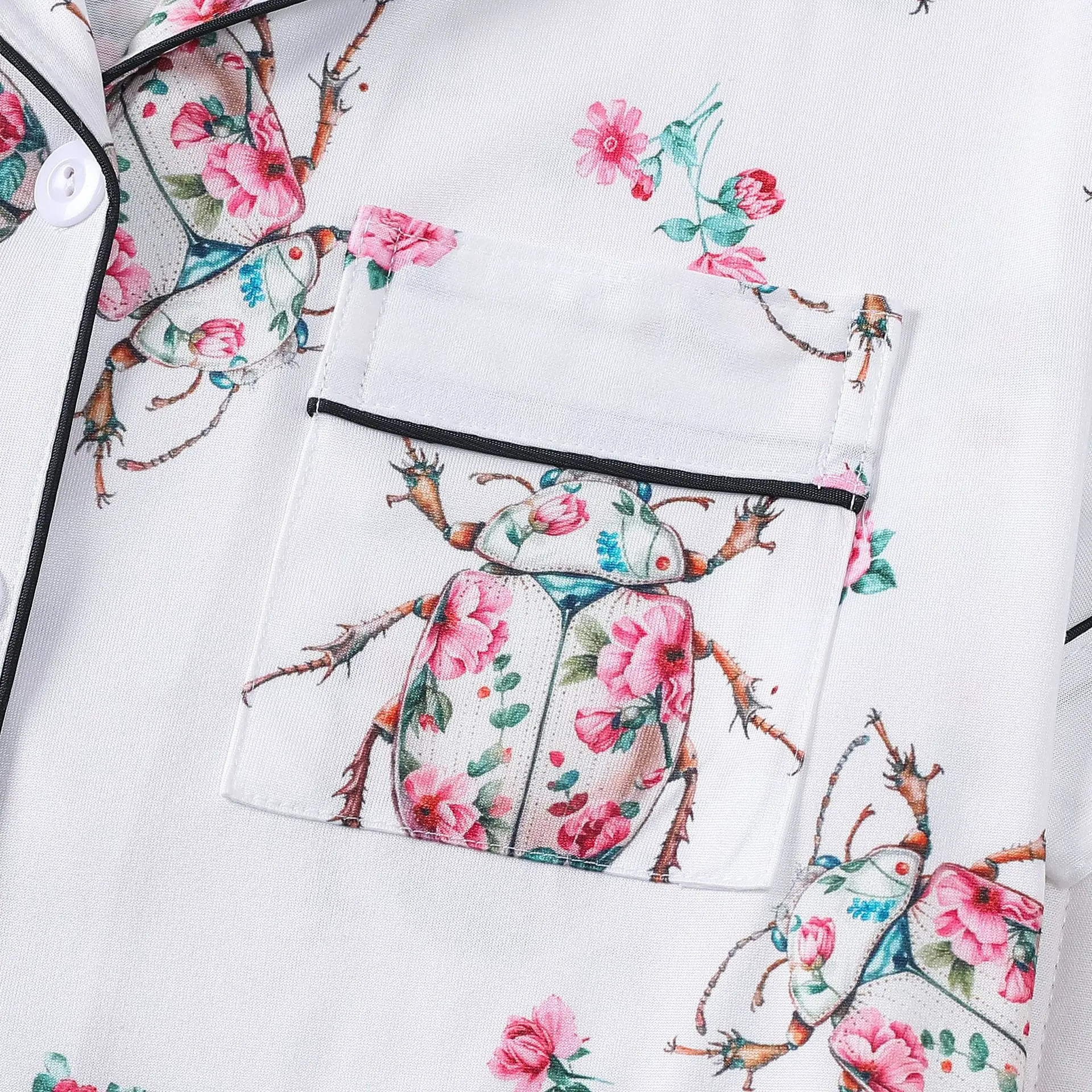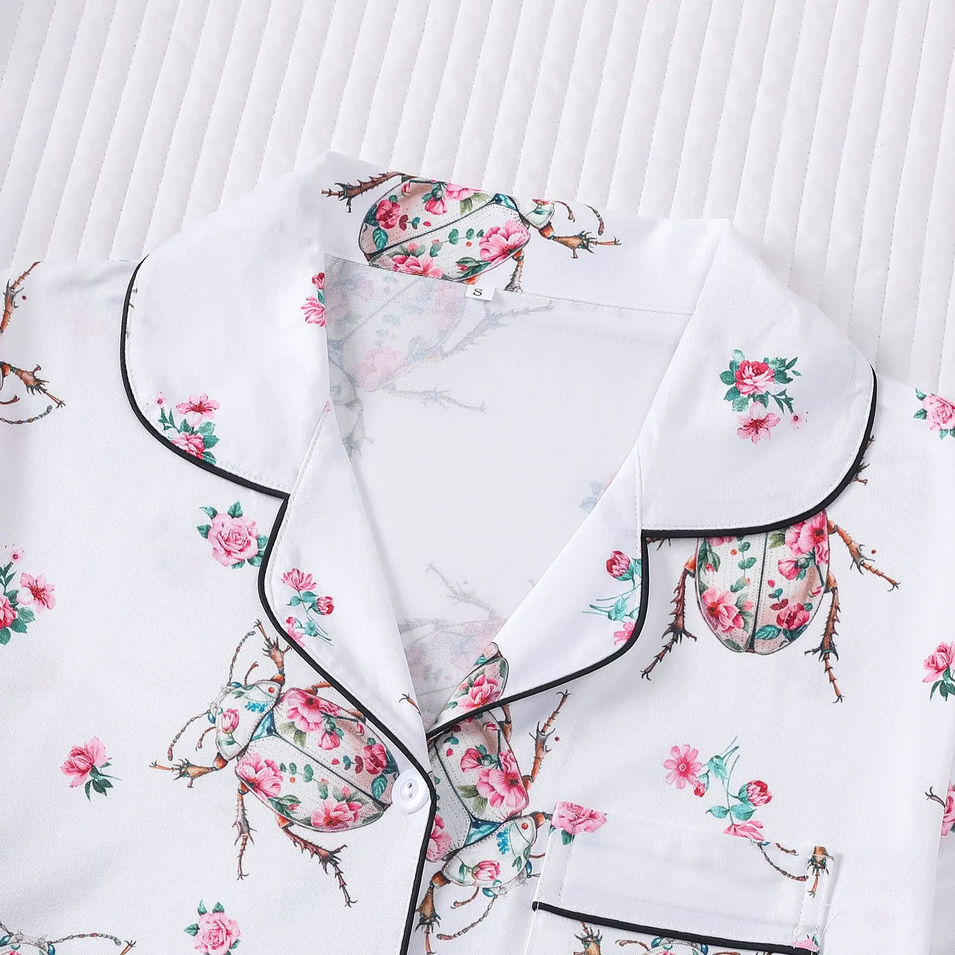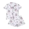 Pijama Nuevo para Mujer Estampado Cuello Mao Manga Corta Shorts Ropa de Casa Europea y Americana Cárdigan Suelto Cómodo