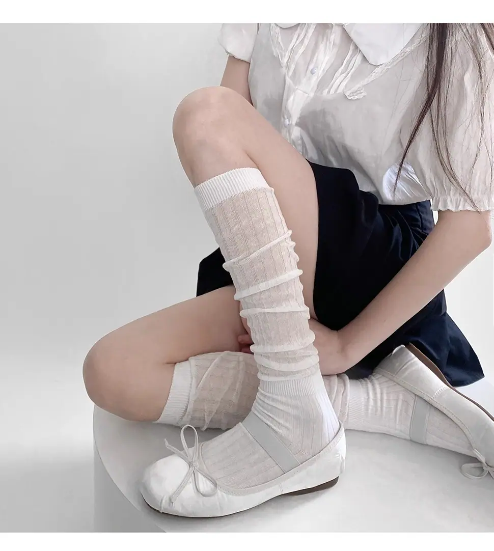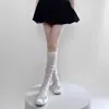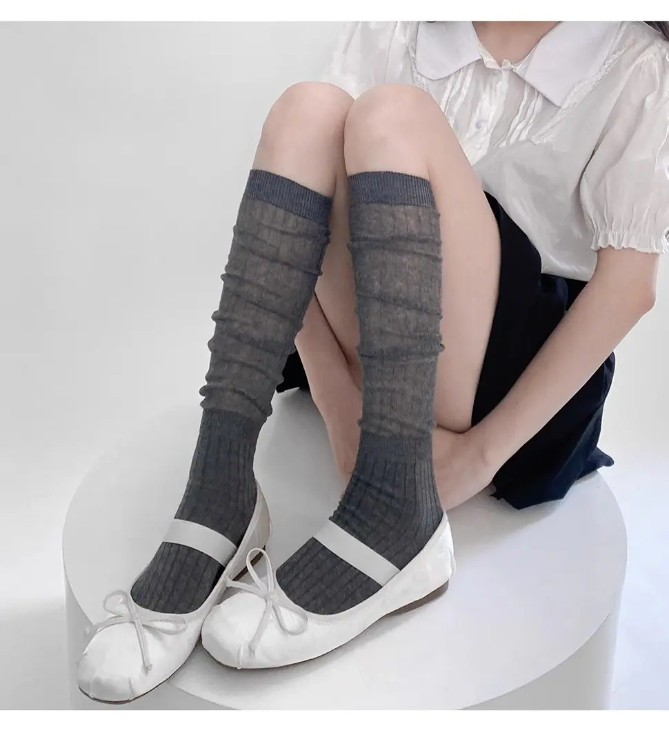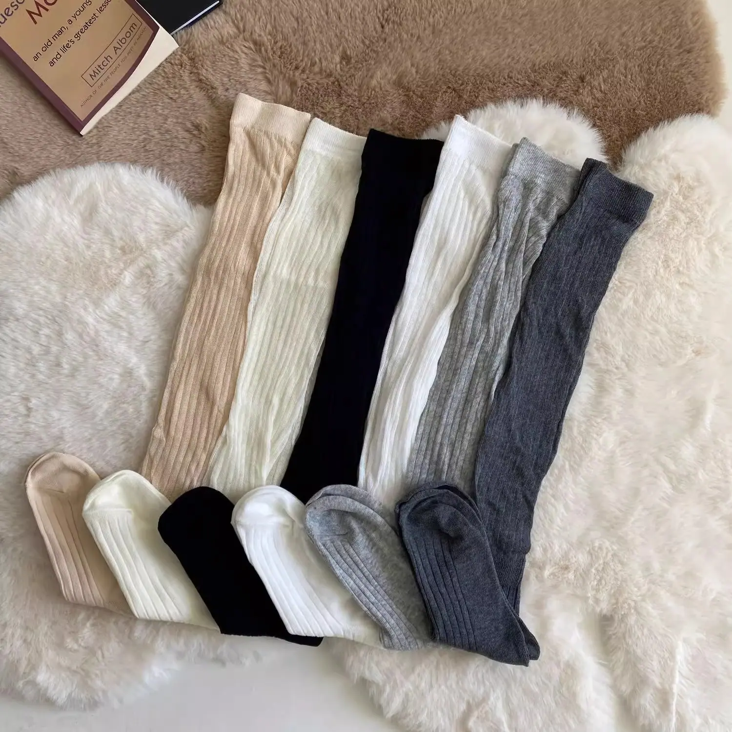 Calcetines hasta el muslo para mujer otoño e invierno tubo largo primavera color sólido calcetines hasta el muslo antideslizantes tubo alto jk calcetines de rizo delgados ins marea
