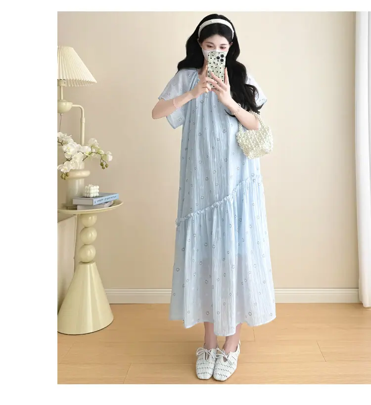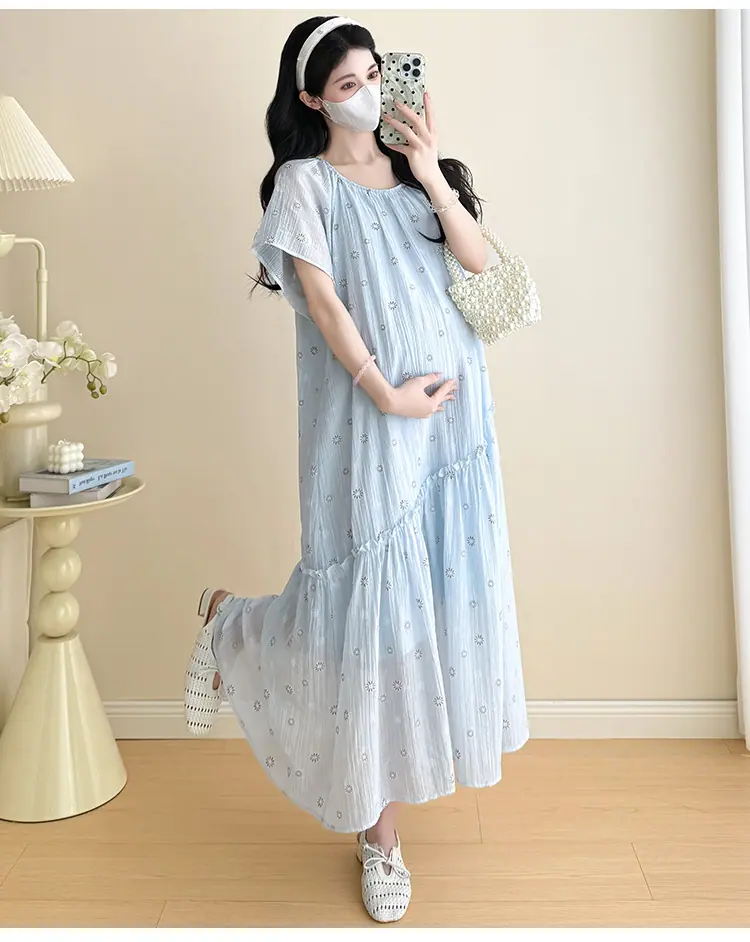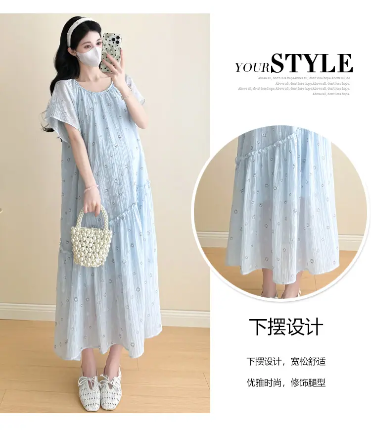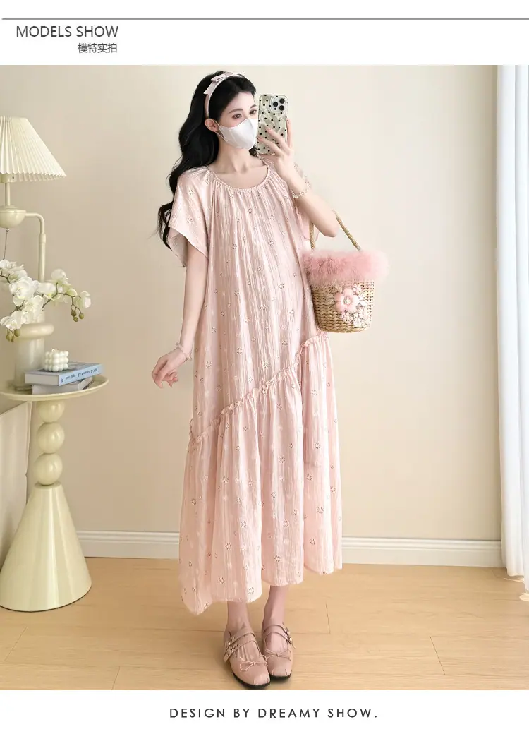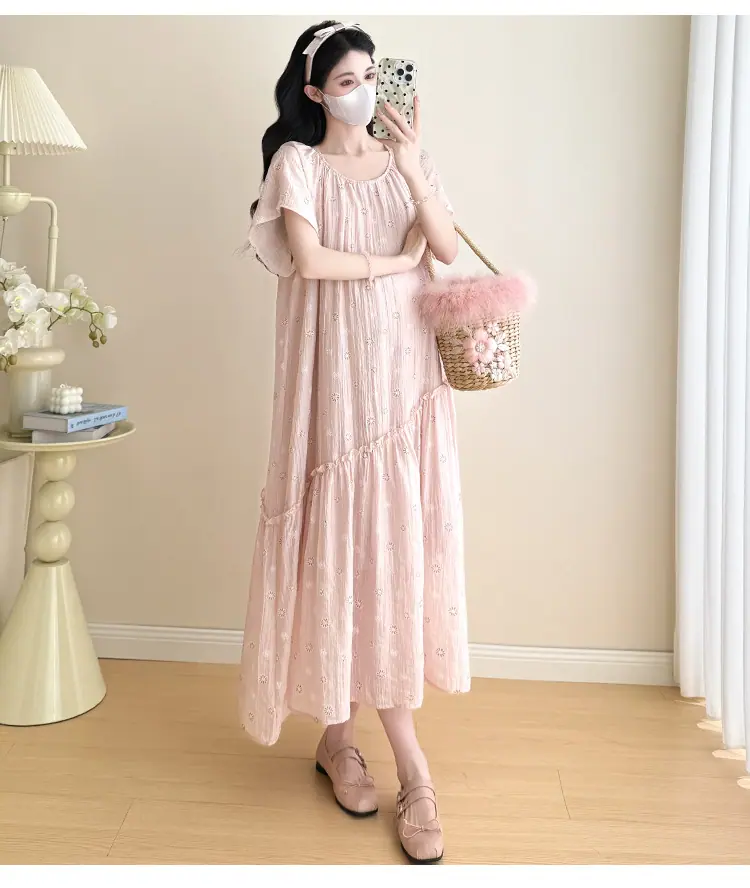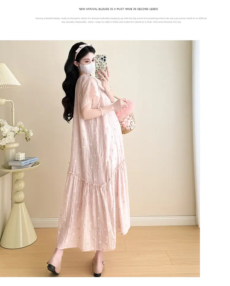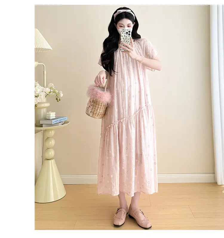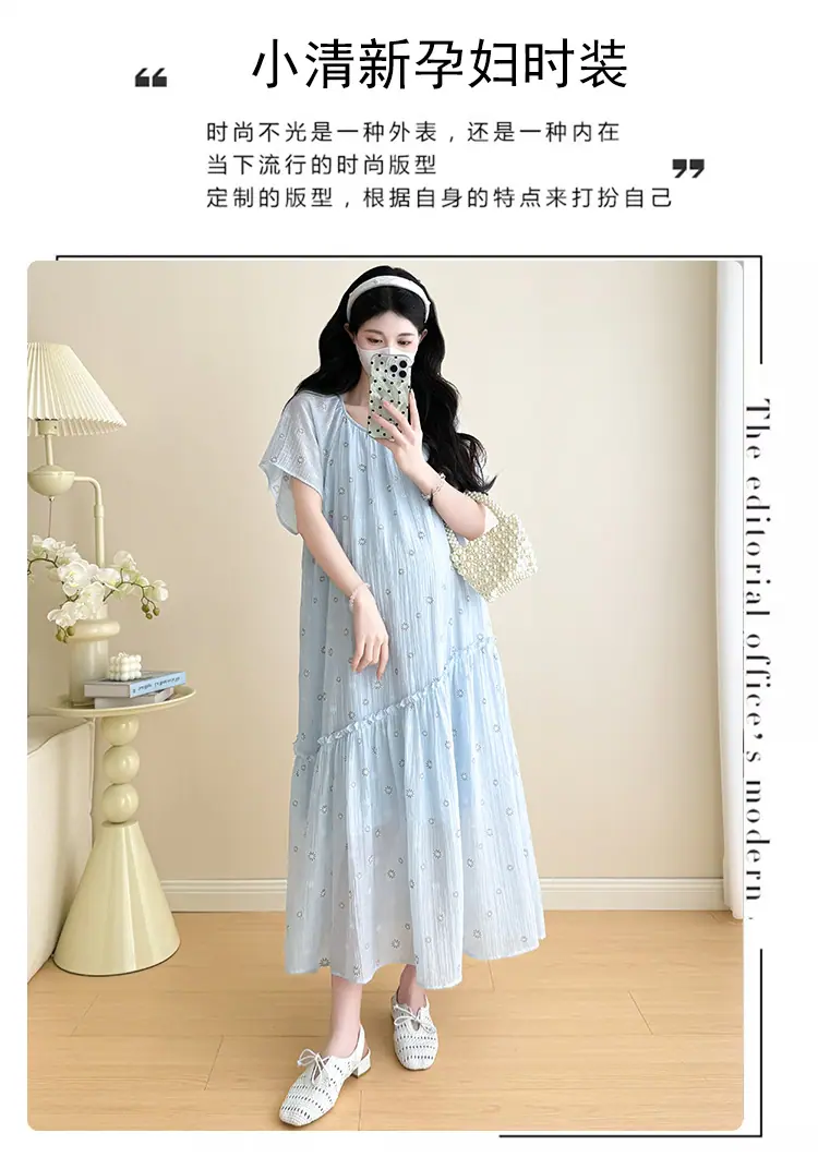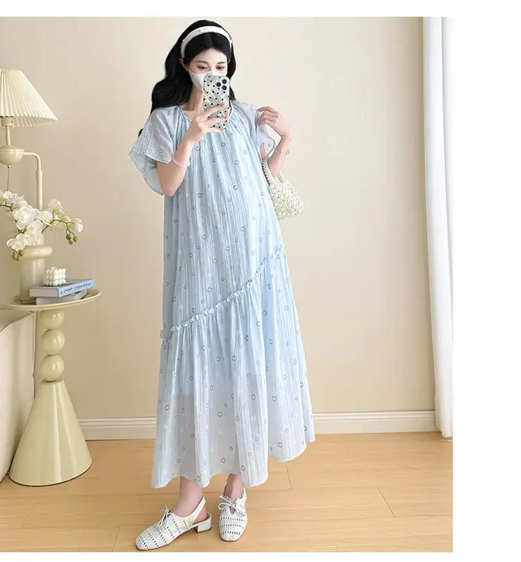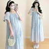 Vestido de Maternidad 2025 Verano Nuevo Moda Coreana Dulce Bordado Talla Grande Vestido para Mujeres Embarazadas