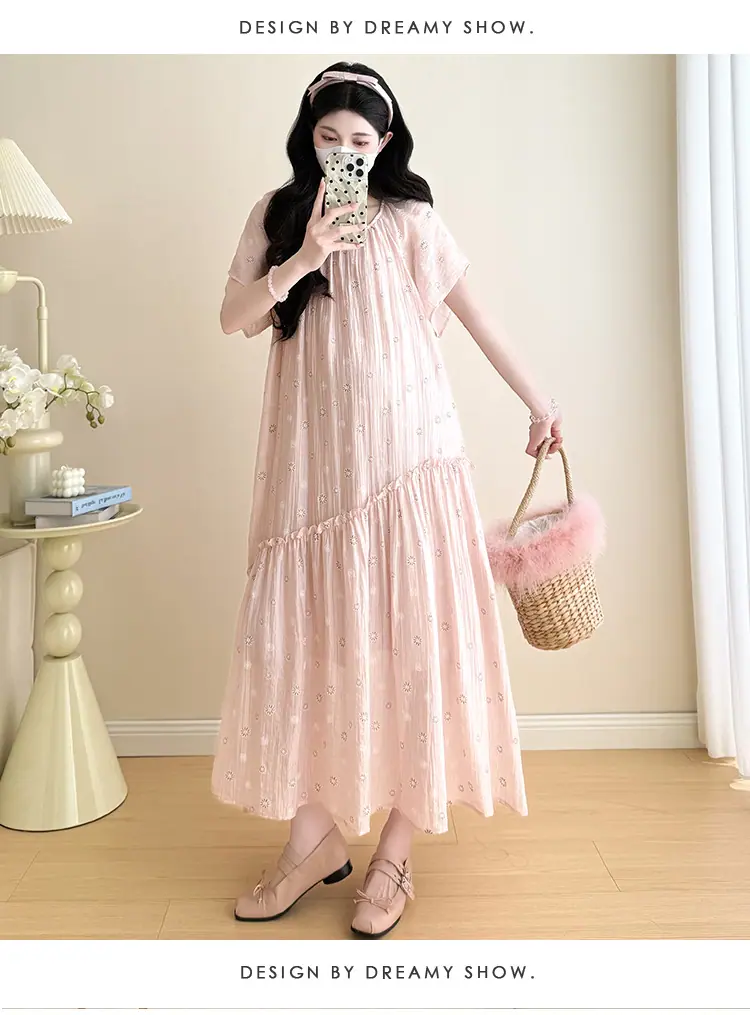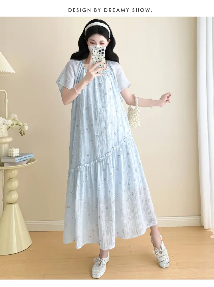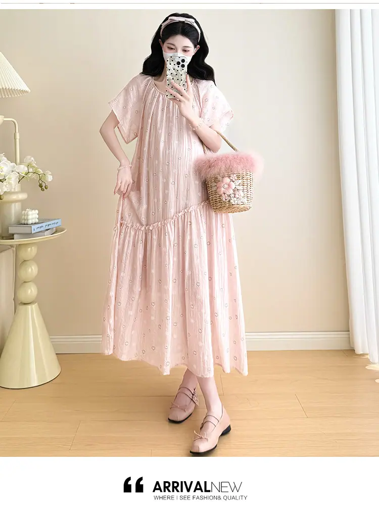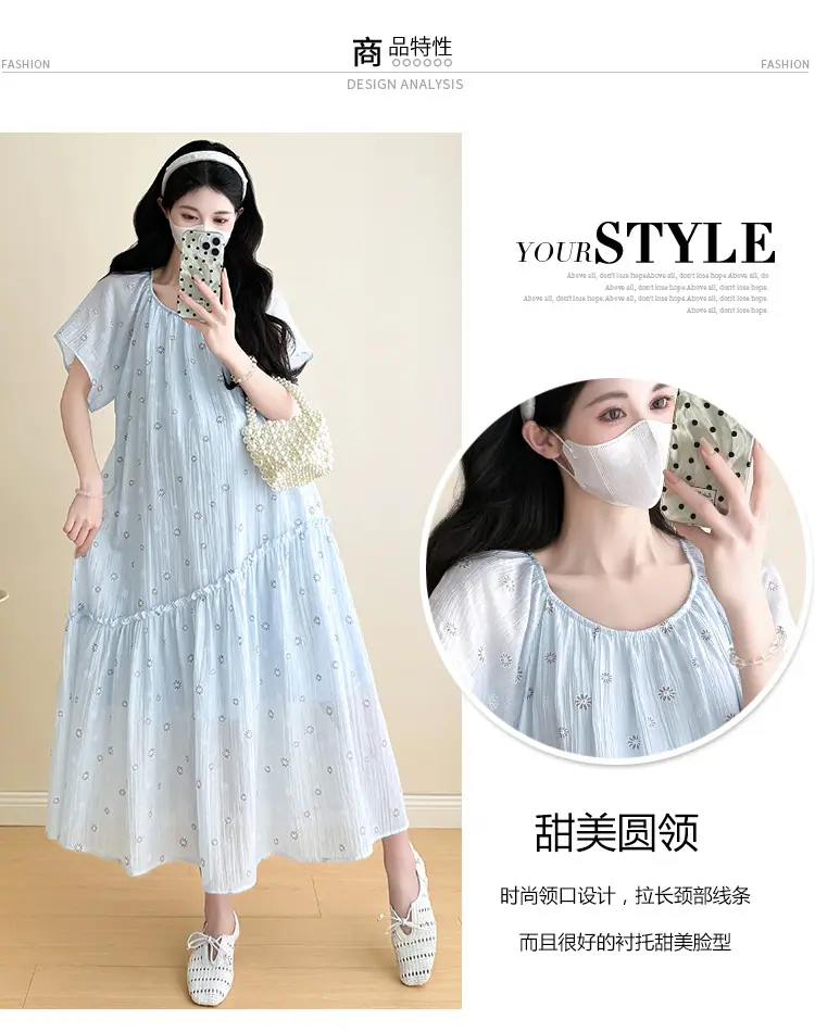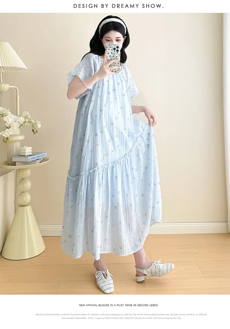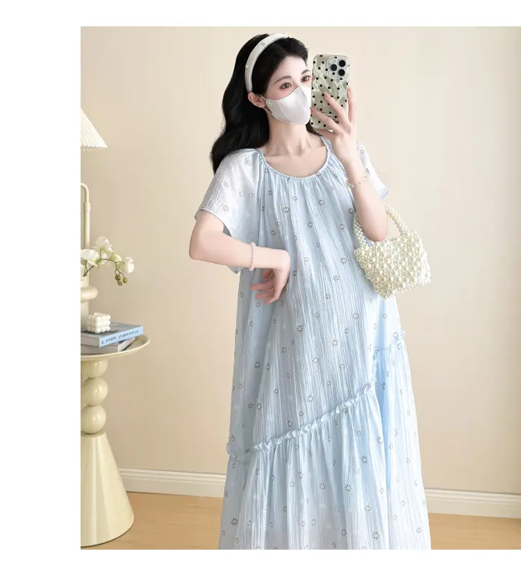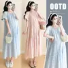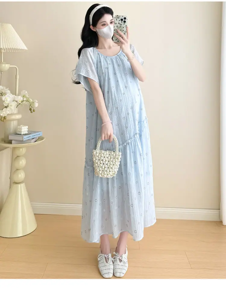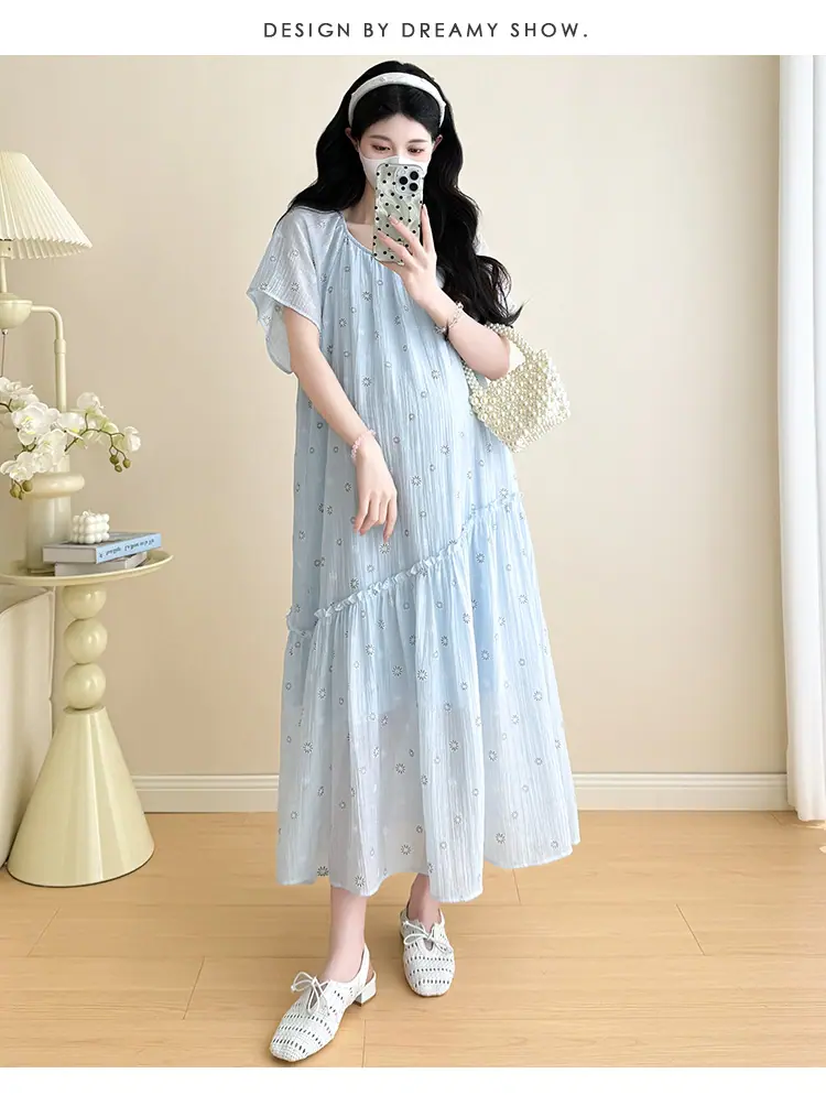 Vestido de Maternidad 2025 Verano Nuevo Moda Coreana Dulce Bordado Talla Grande Vestido para Mujeres Embarazadas