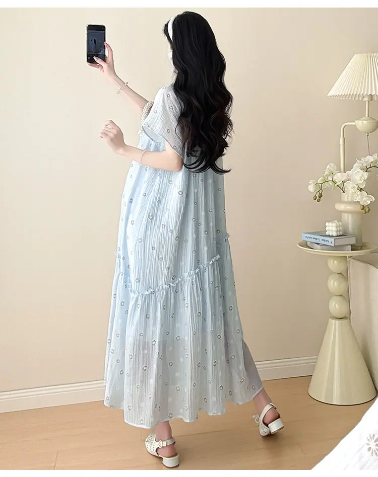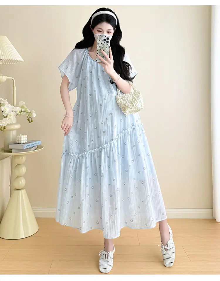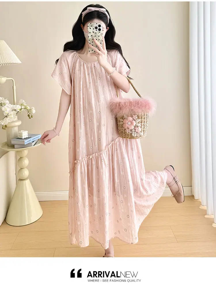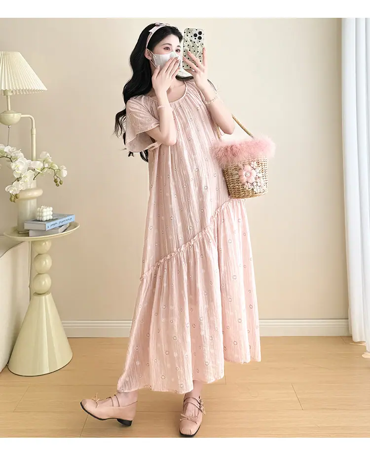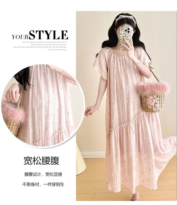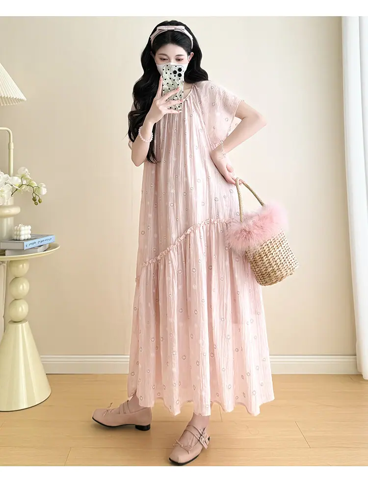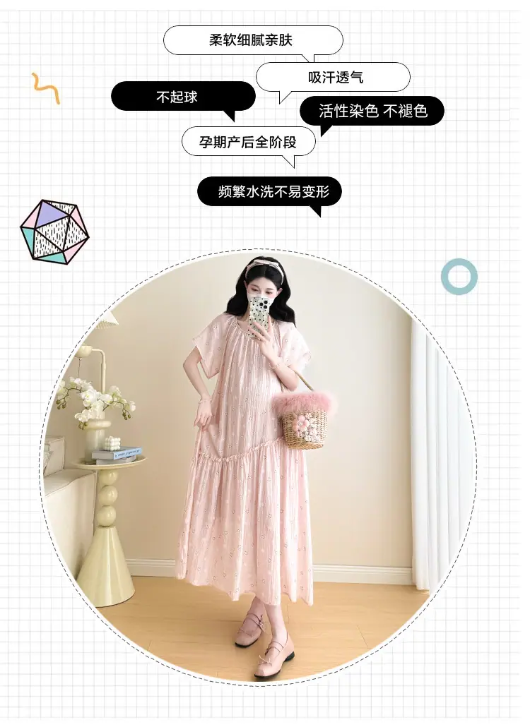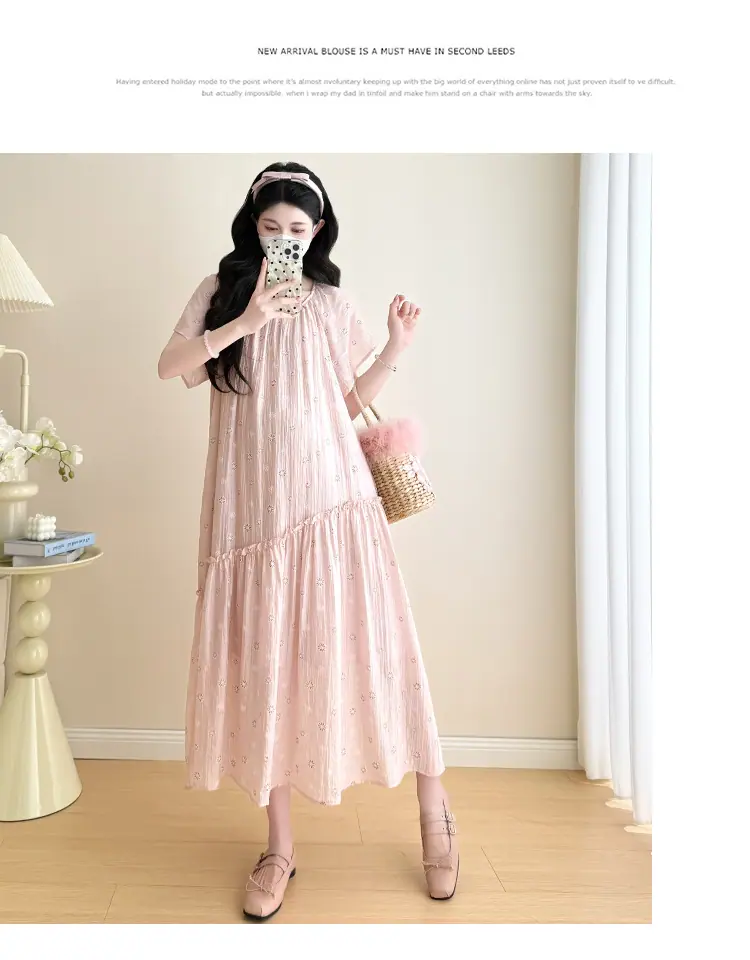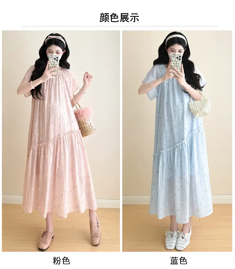 Vestido de Maternidad 2025 Verano Nuevo Moda Coreana Dulce Bordado Talla Grande Vestido para Mujeres Embarazadas