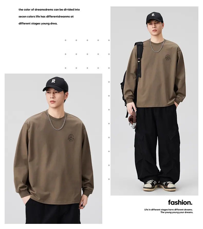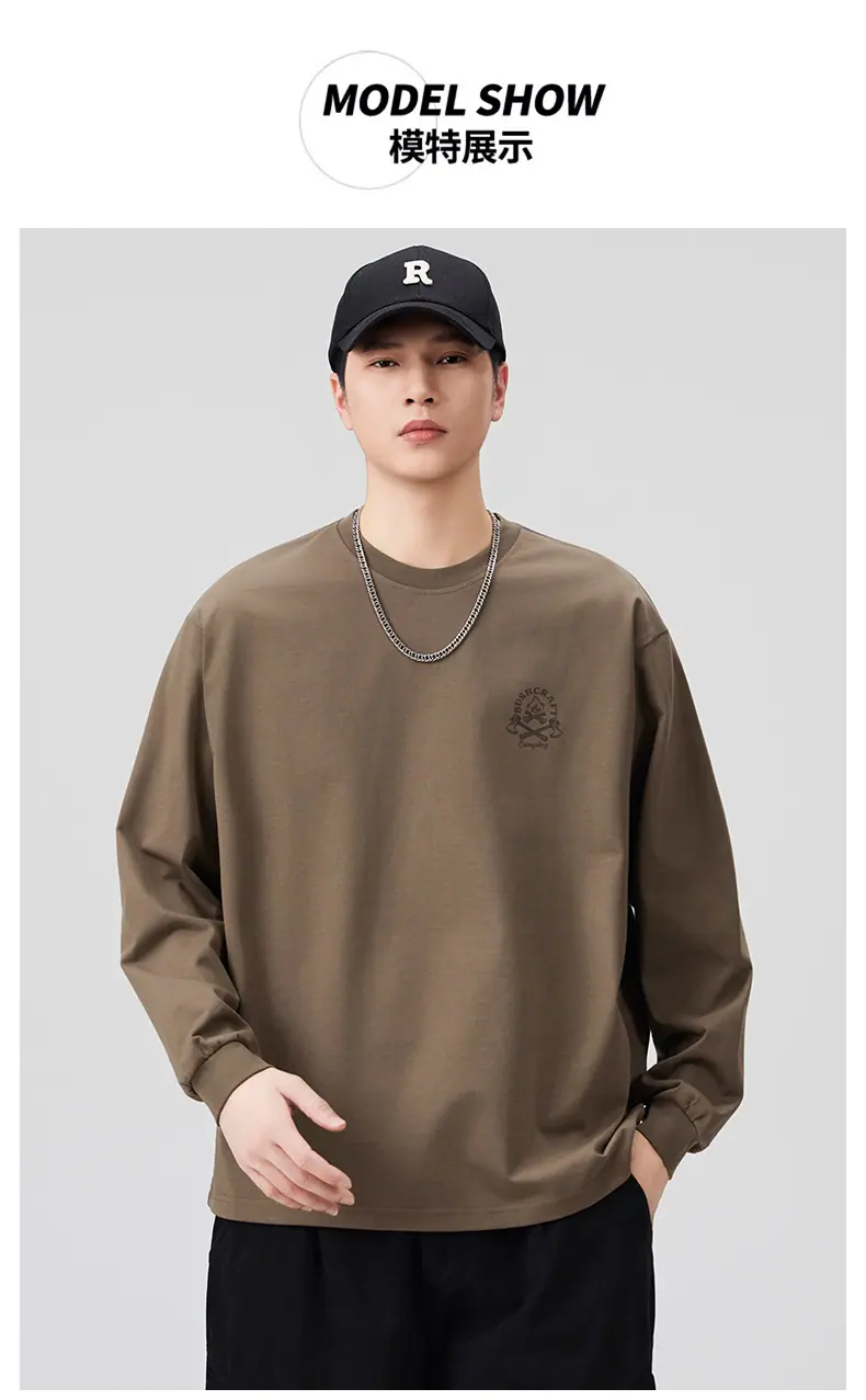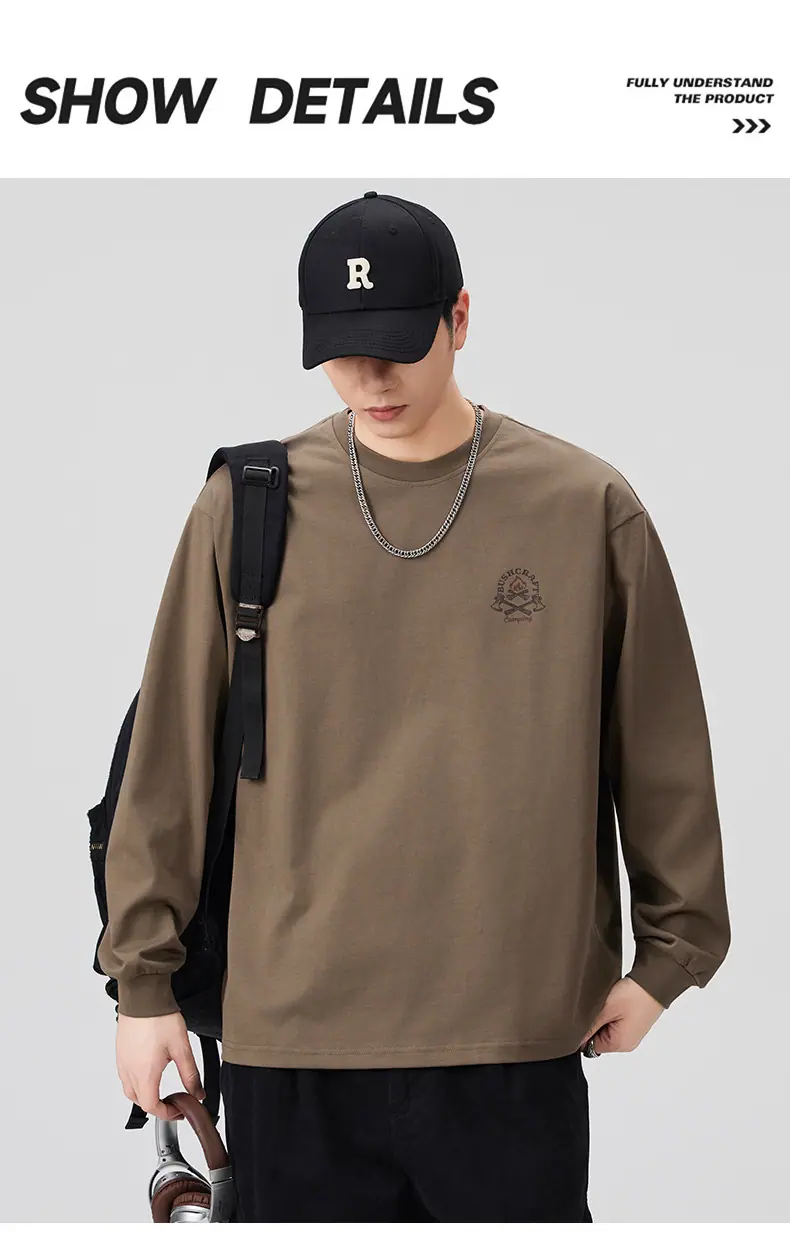 Otoño Nuevo Americano Peso Pesado Camiseta Manga Larga Hombre Suelta Talla Grande Casual Ropa Interior Juvenil Capa Base Superior Tendencia