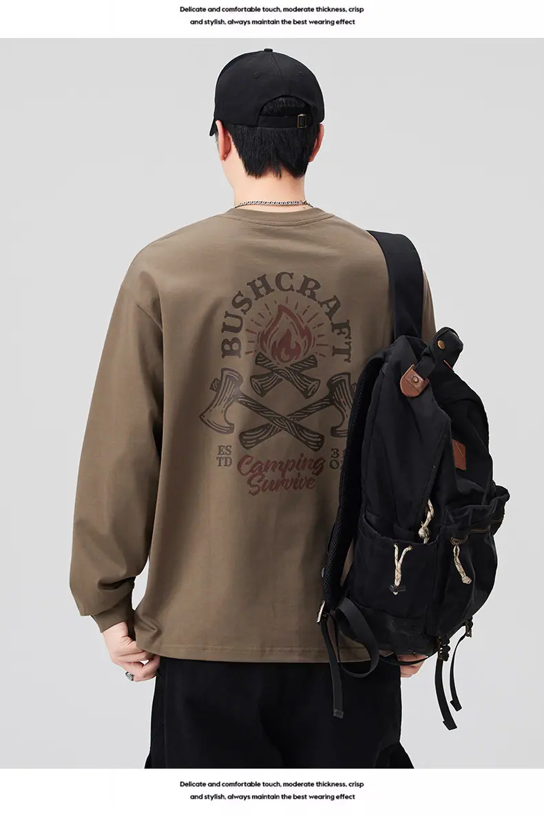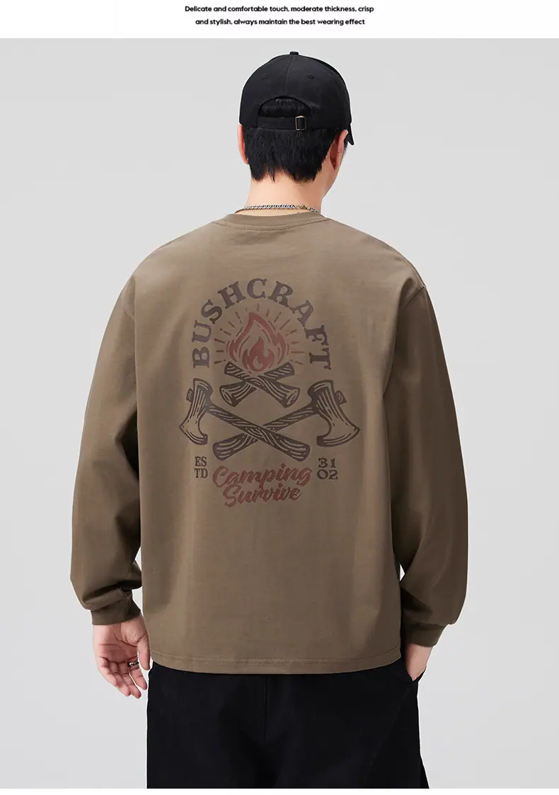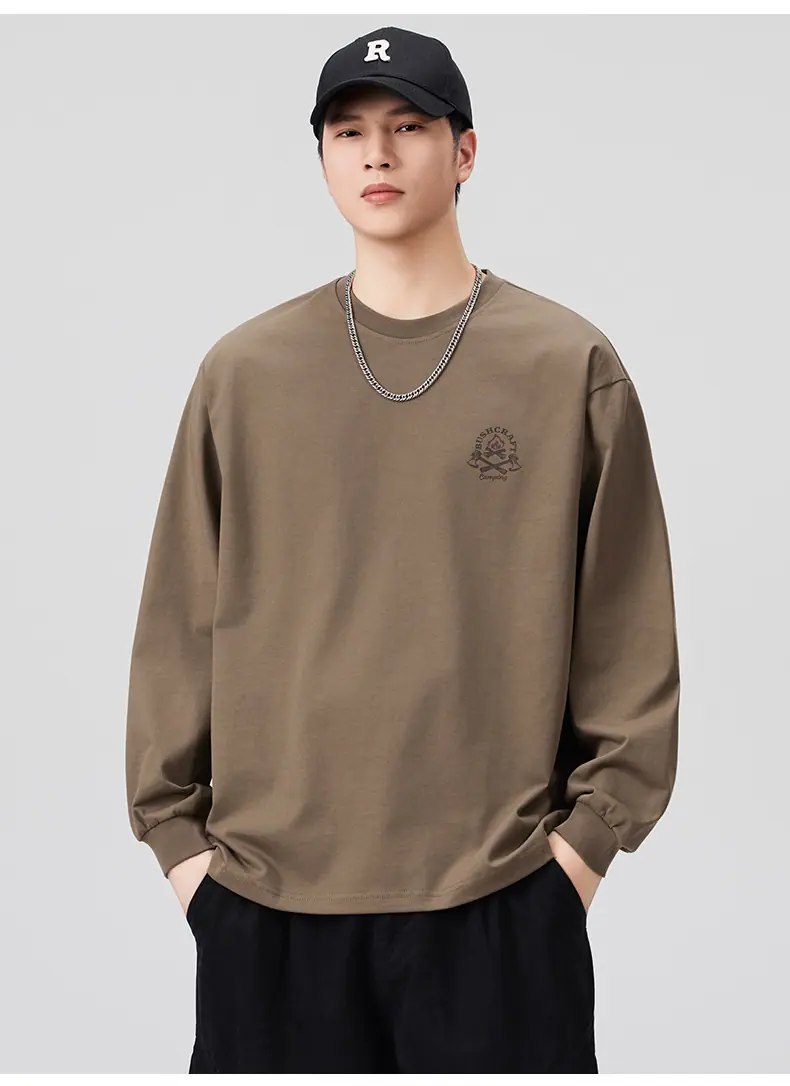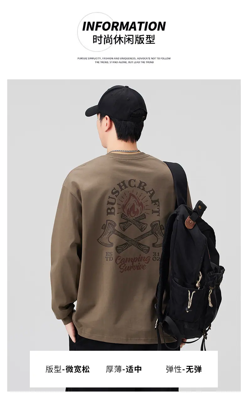 Otoño Nuevo Americano Peso Pesado Camiseta Manga Larga Hombre Suelta Talla Grande Casual Ropa Interior Juvenil Capa Base Superior Tendencia