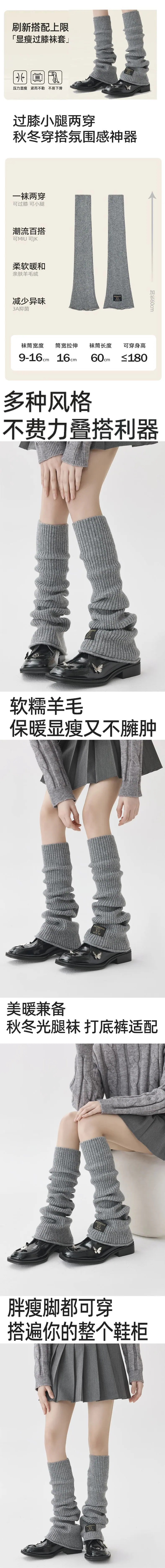 Compra Calentadores de piernas de otoño e invierno grises por encima de la rodilla calcetines arrugados para mujer primavera y otoño calcetines largos calcetines altos de punto Y2K japonés calentadores de piernas al por mayor en Joom.pro