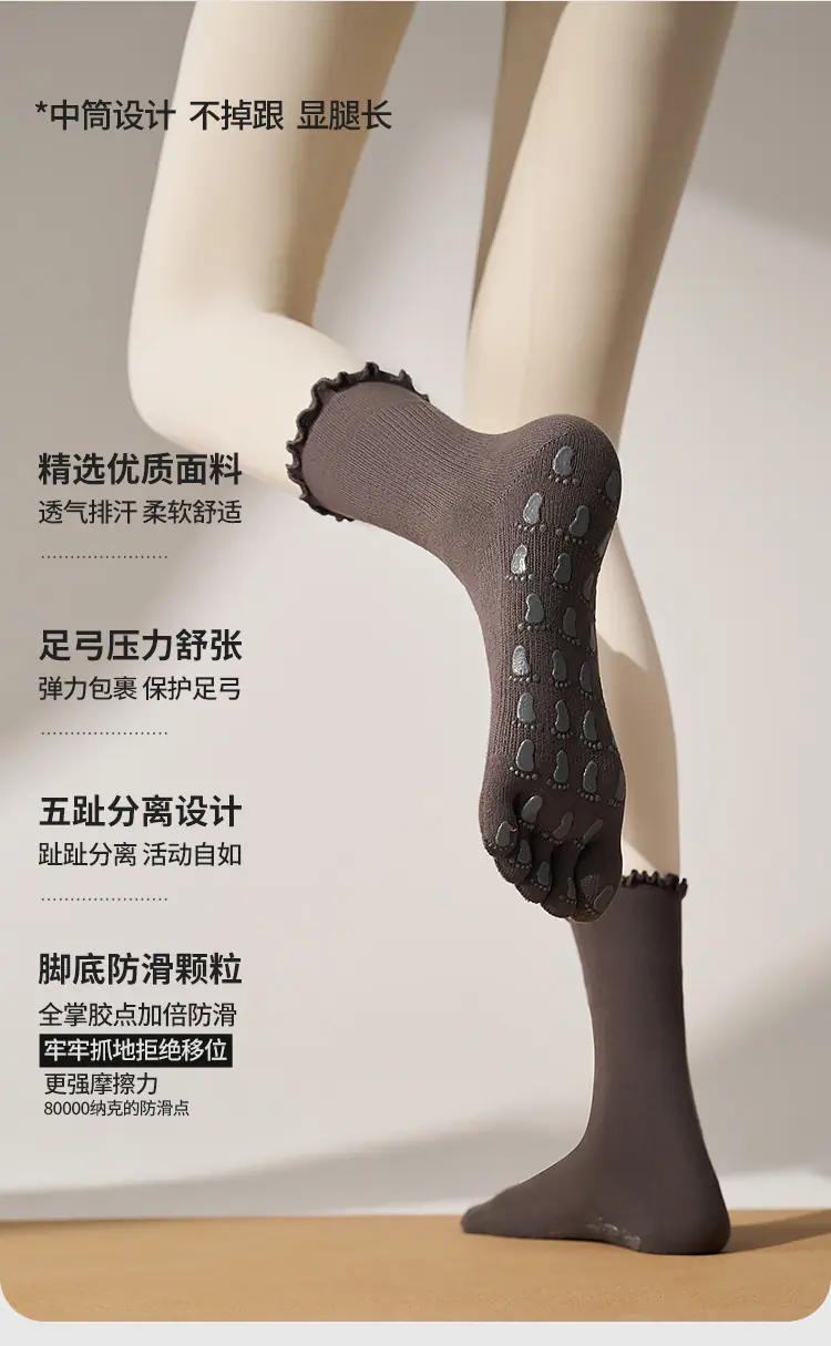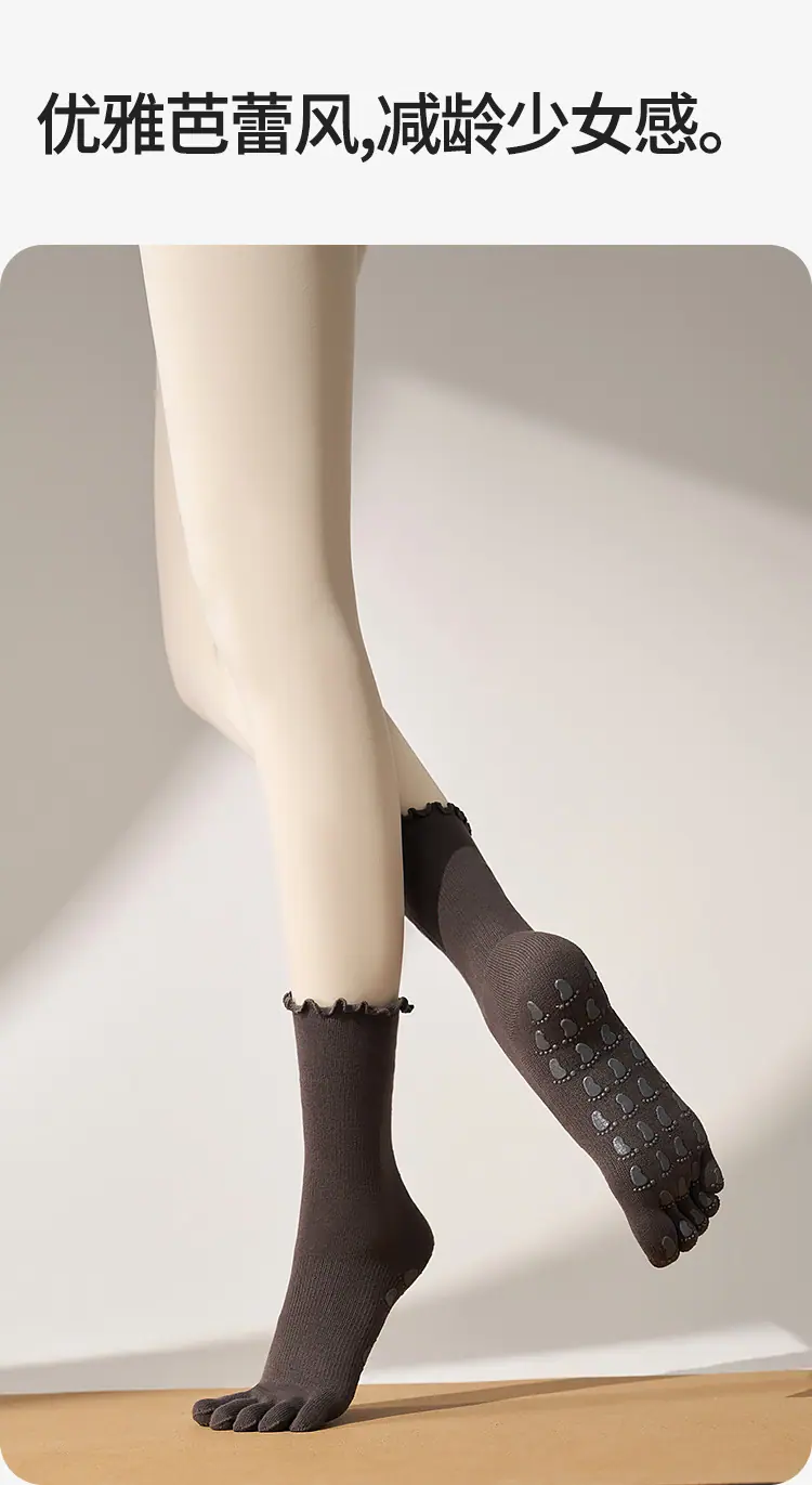 Calcetines de Moda Personalizados de Algodón Puro de Cinco Dedos para Mujer Calcetines con Diseño de Encaje Calcetines de Media Caña Moda Femenina Versátiles Calcetines de Dedos para Yoga