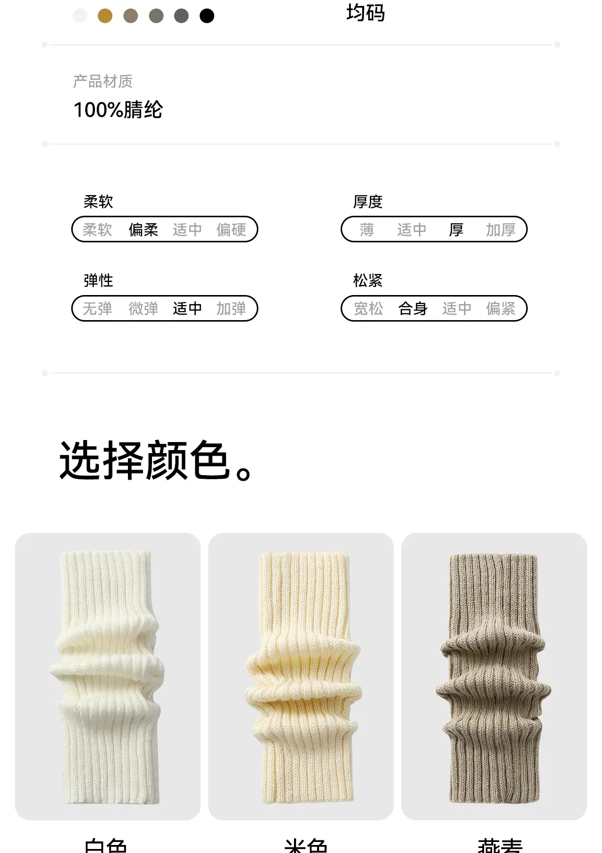 White, Black, Beige, Light gray, Dark gray, Oatmeal