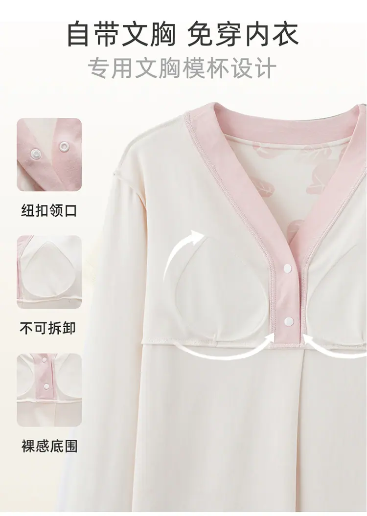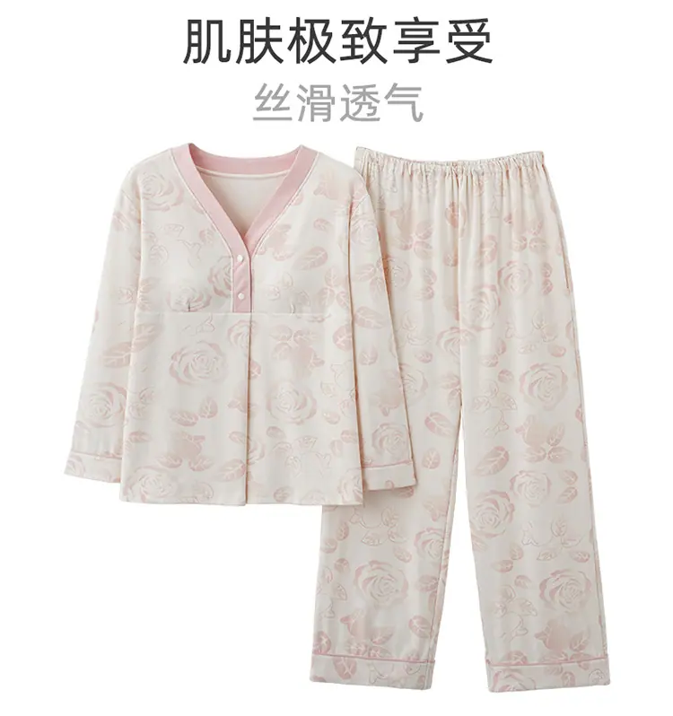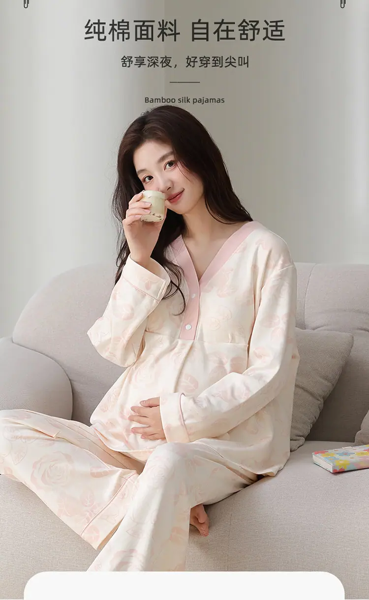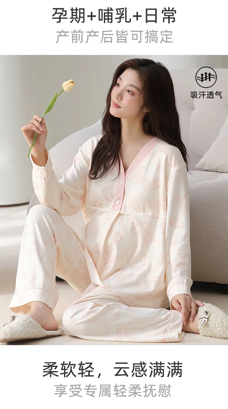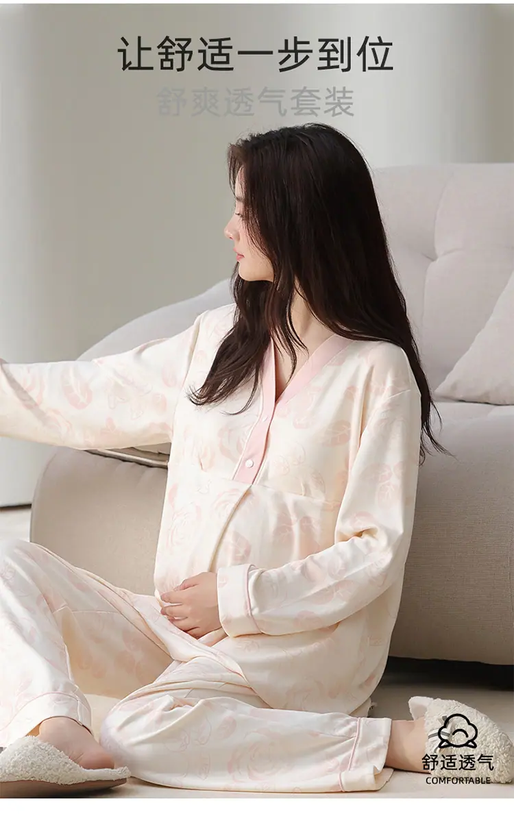 Ropa Postparto Jingqi con Almohadillas para el Busto Algodón Puro Invierno Pijama de Maternidad Postparto Amamantamiento Lactancia Periodo de Embarazo Conjunto para Estar en Casa