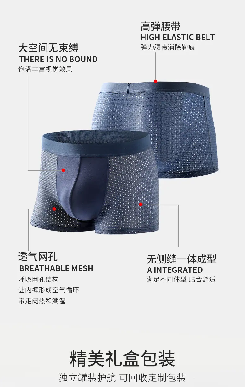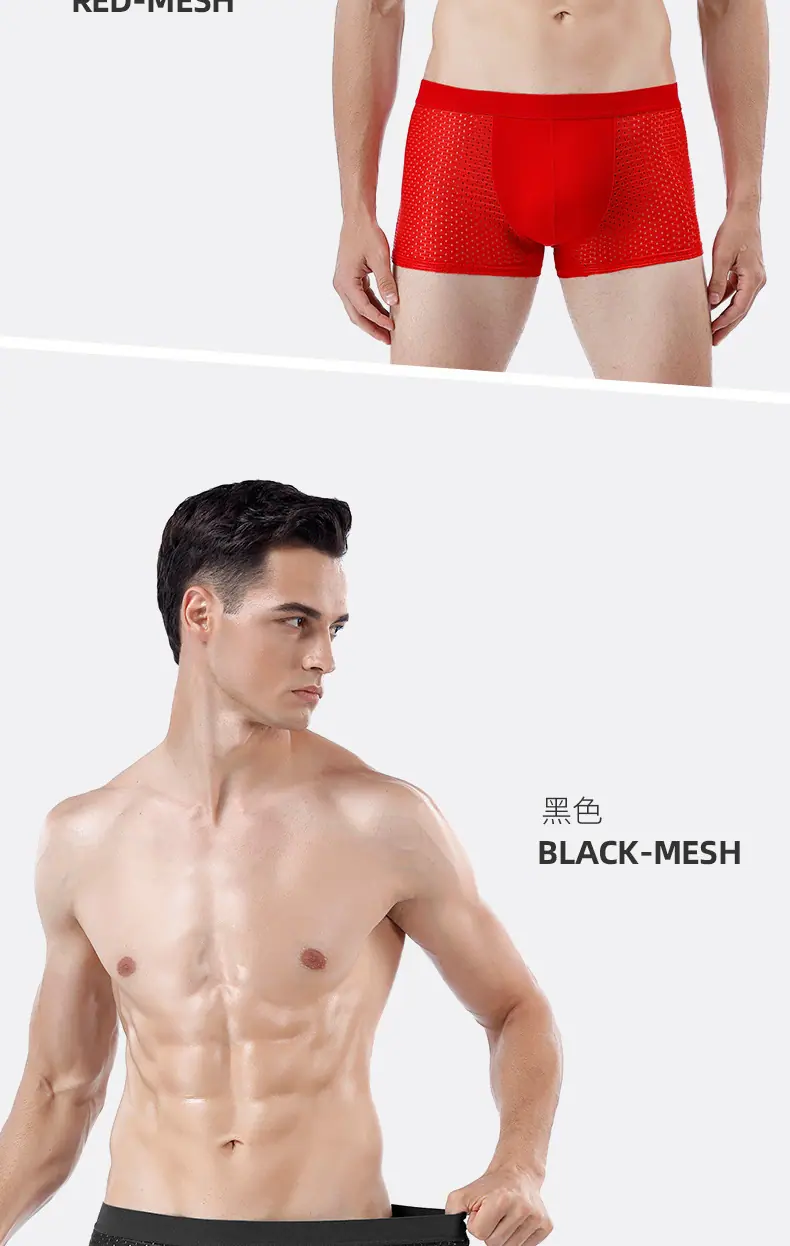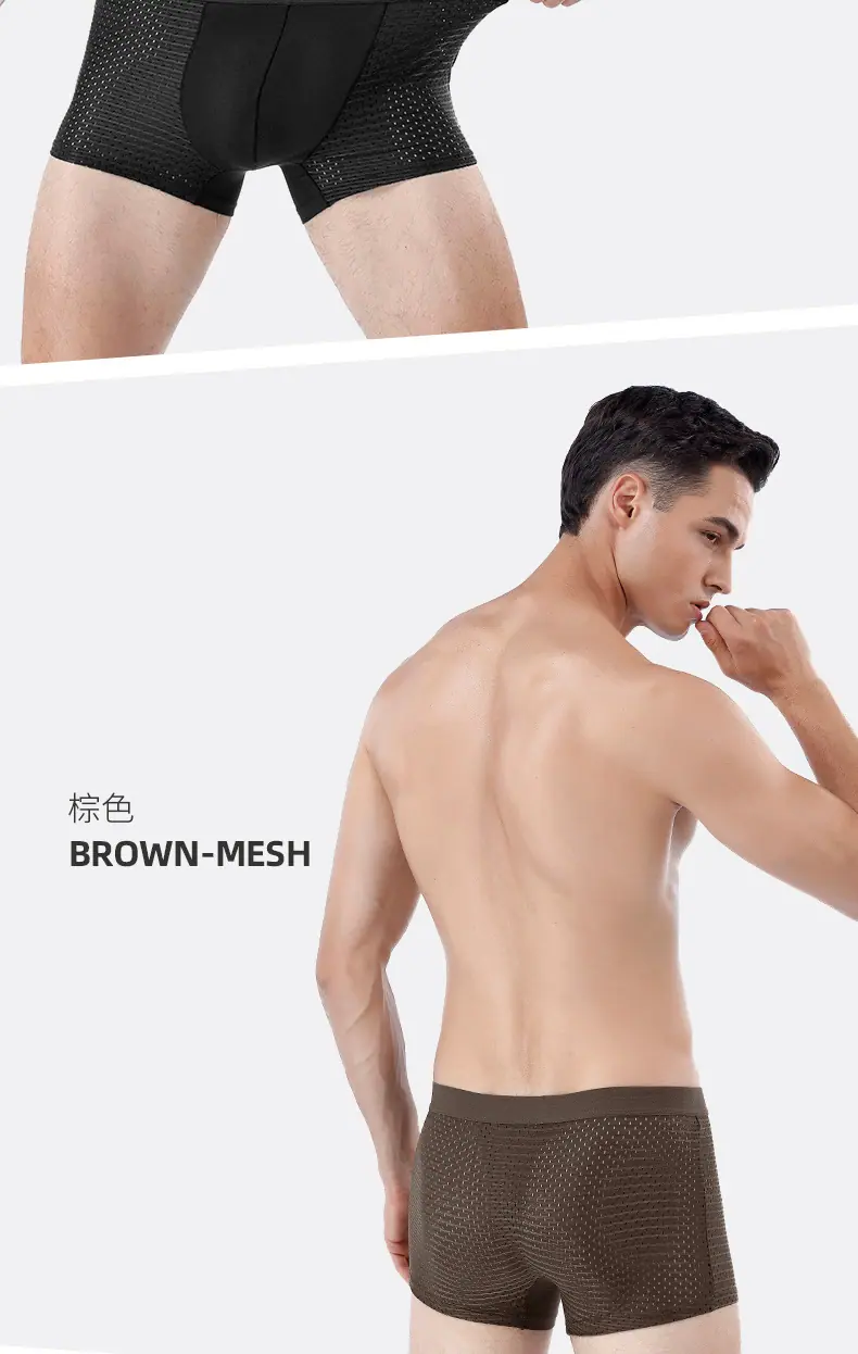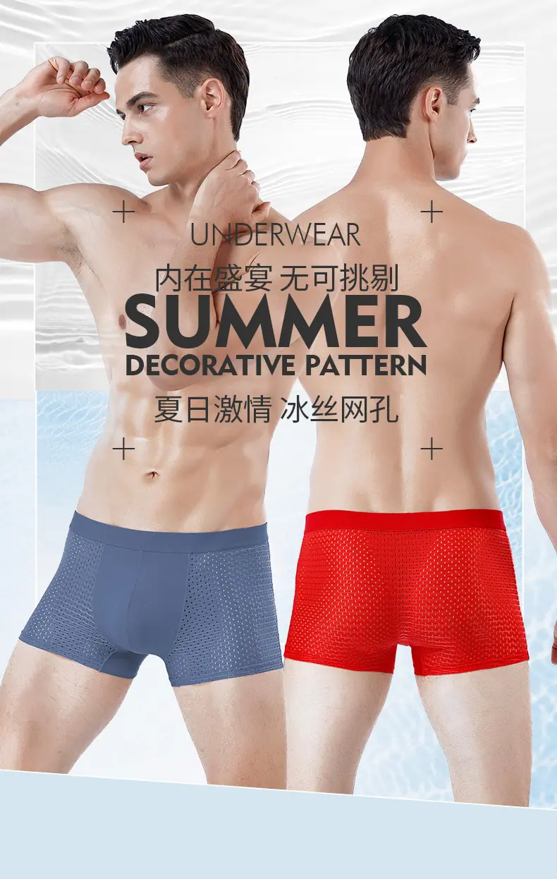 2025 Ropa Interior de Seda de Hielo para Hombre Verano Nuevo Malla Transpirable Cintura Media Talla Grande Calzoncillos Bóxer Sin Costuras Ropa Interior Moderna para Hombre