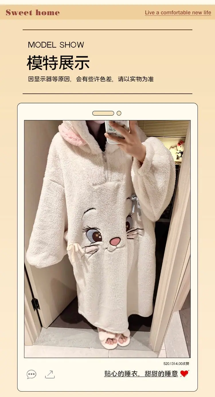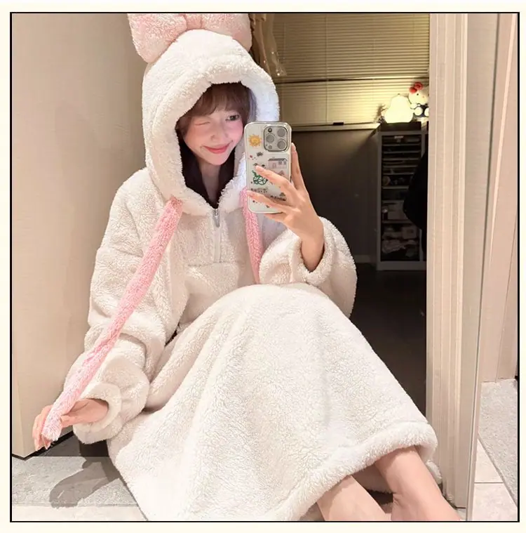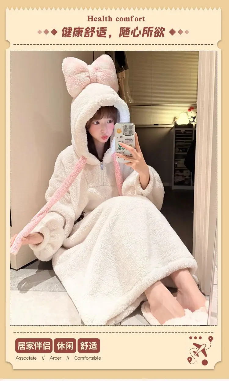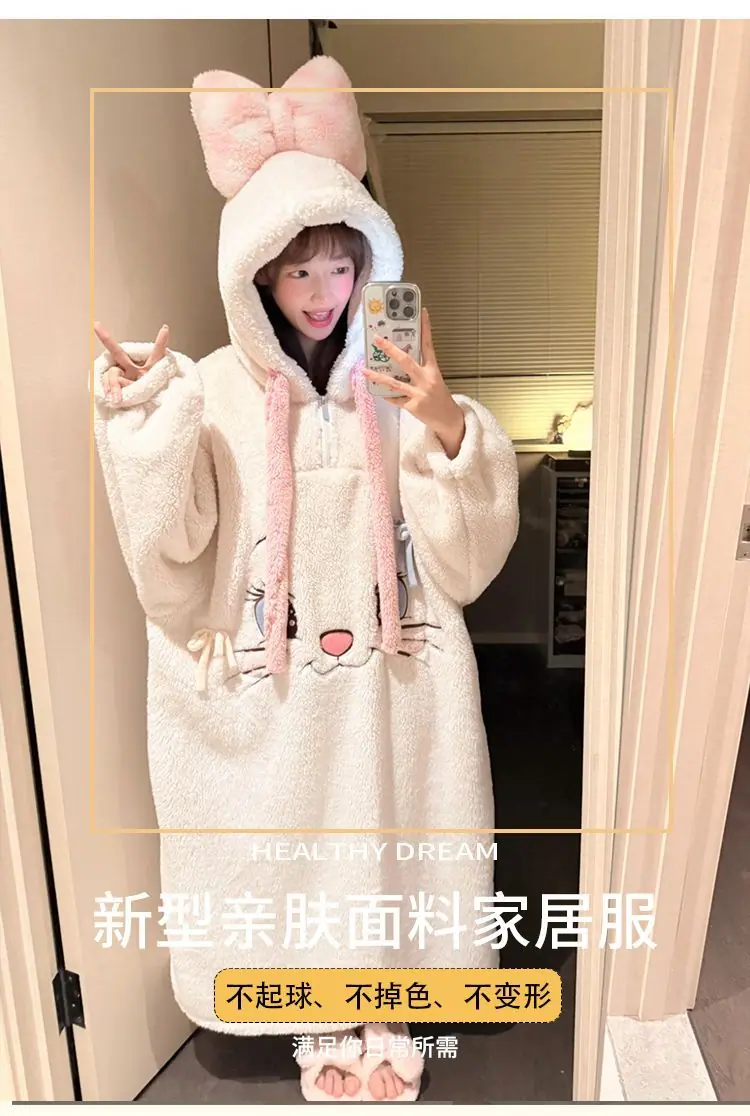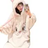Pijama de forro polar coral para mujer otoño e invierno estilo dulce y encantador bata con capucha gruesa ropa de casa para niña se puede usar fuera al por mayor