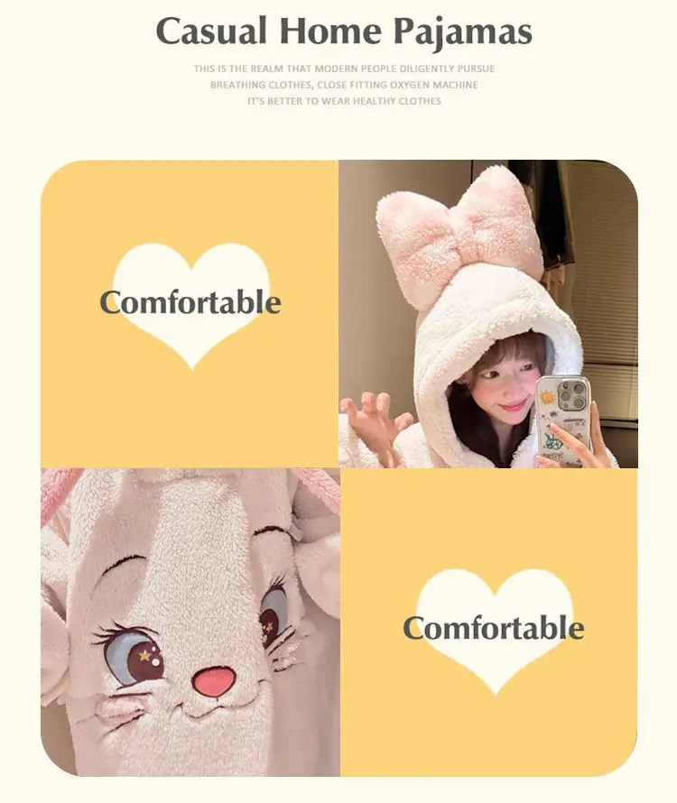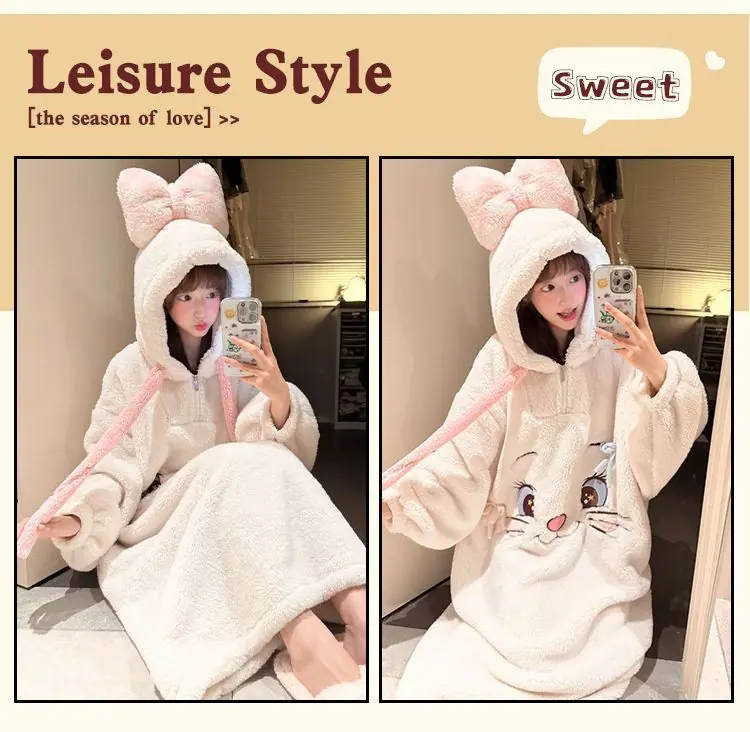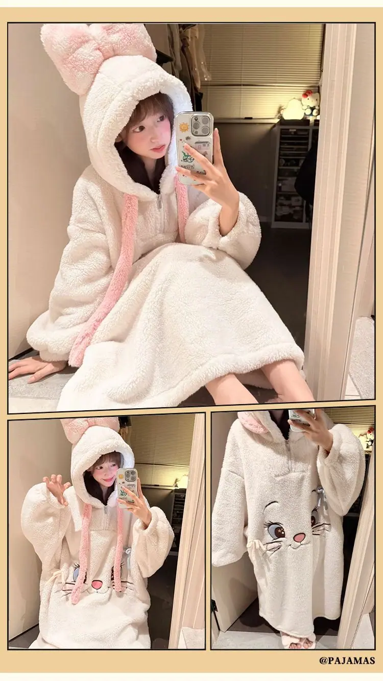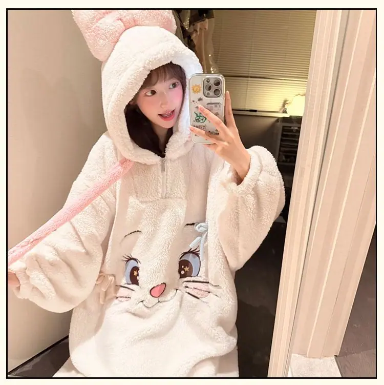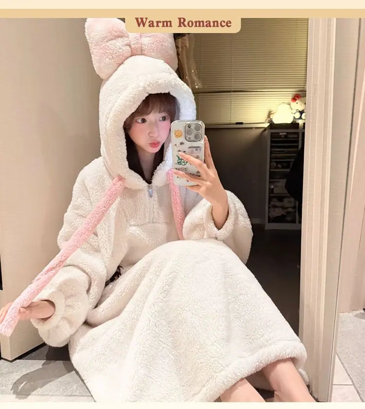 Pijama de forro polar coral para mujer otoño e invierno estilo dulce y encantador bata con capucha gruesa ropa de casa para niña se puede usar fuera al por mayor