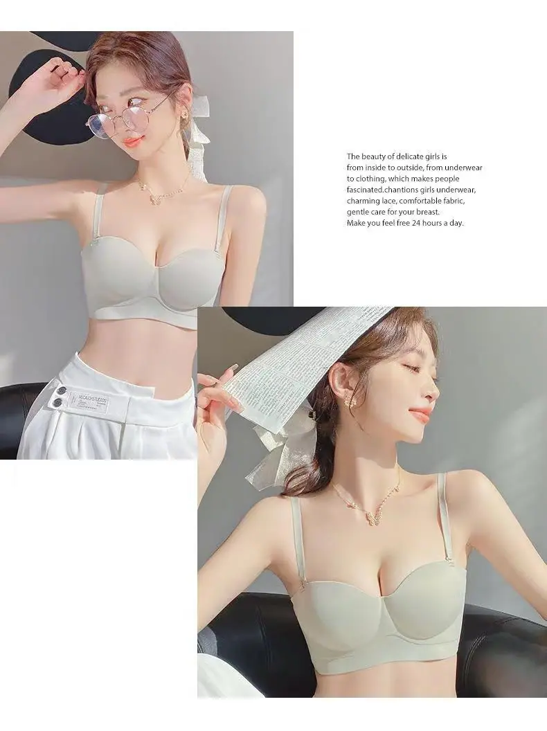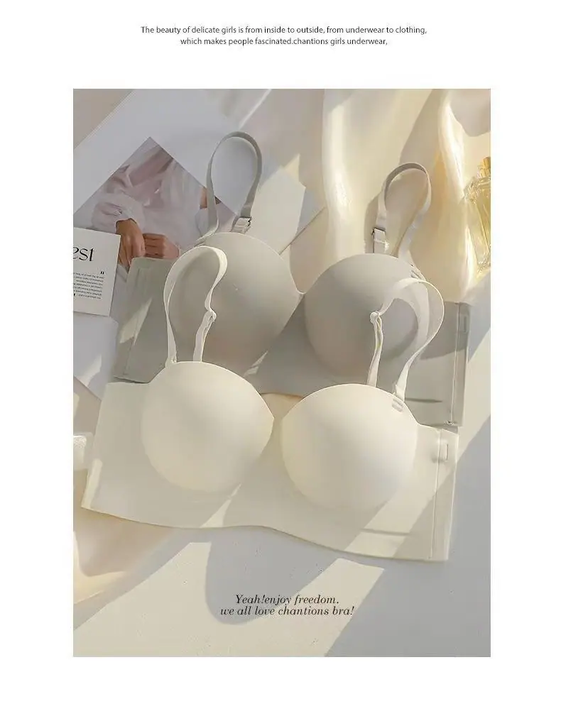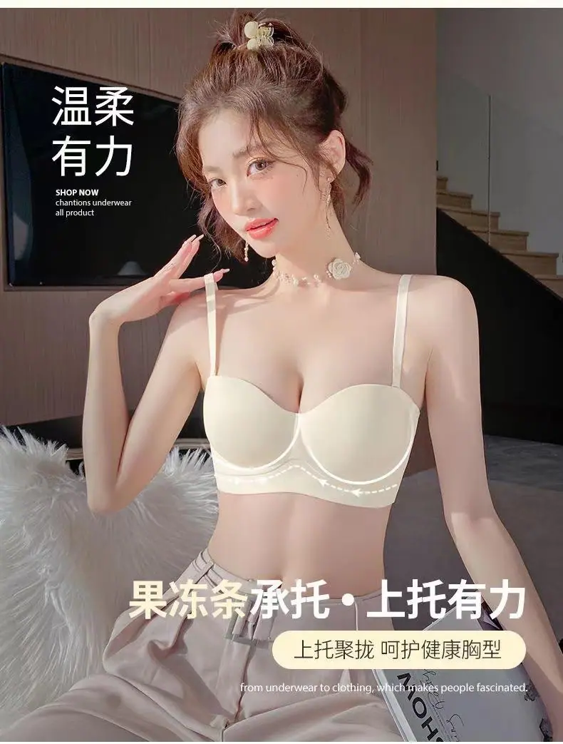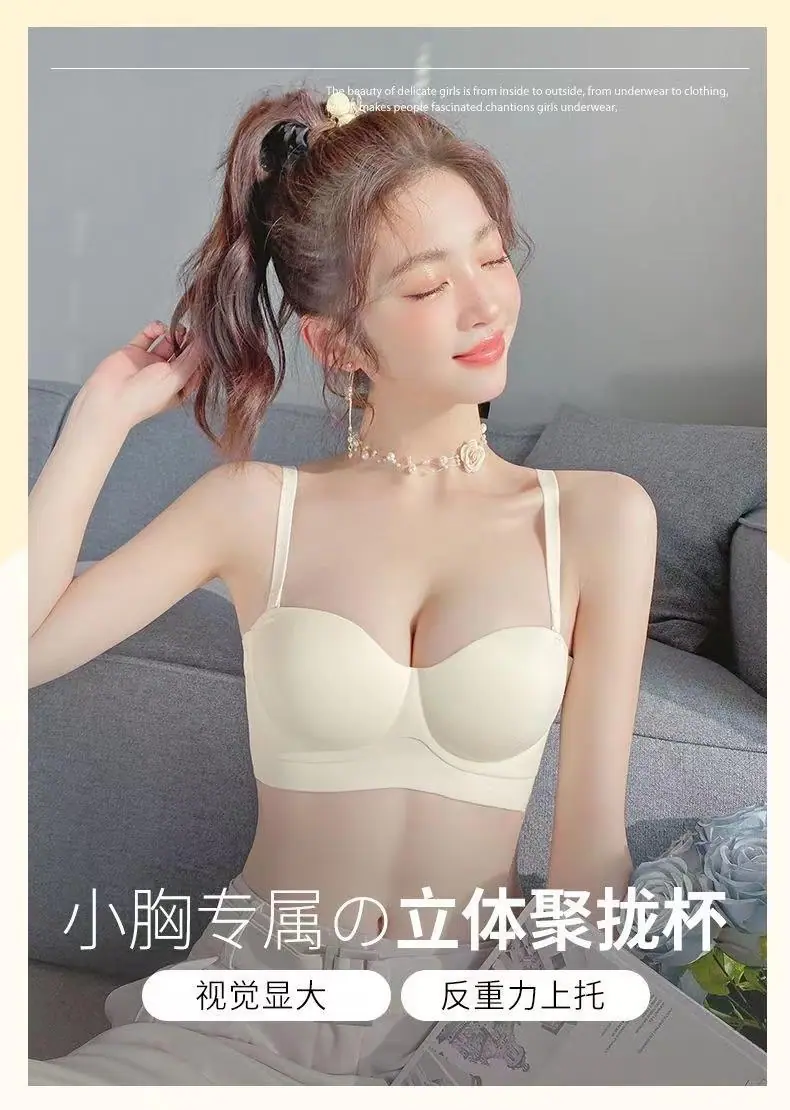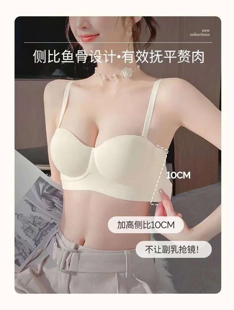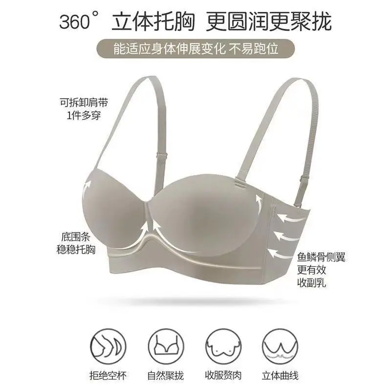 Ropa interior sin tirantes para mujer, pecho pequeño, gran realce, sostén anti-caída sin costuras, antideslizante, invisible, inalámbrico, envuelve el pecho