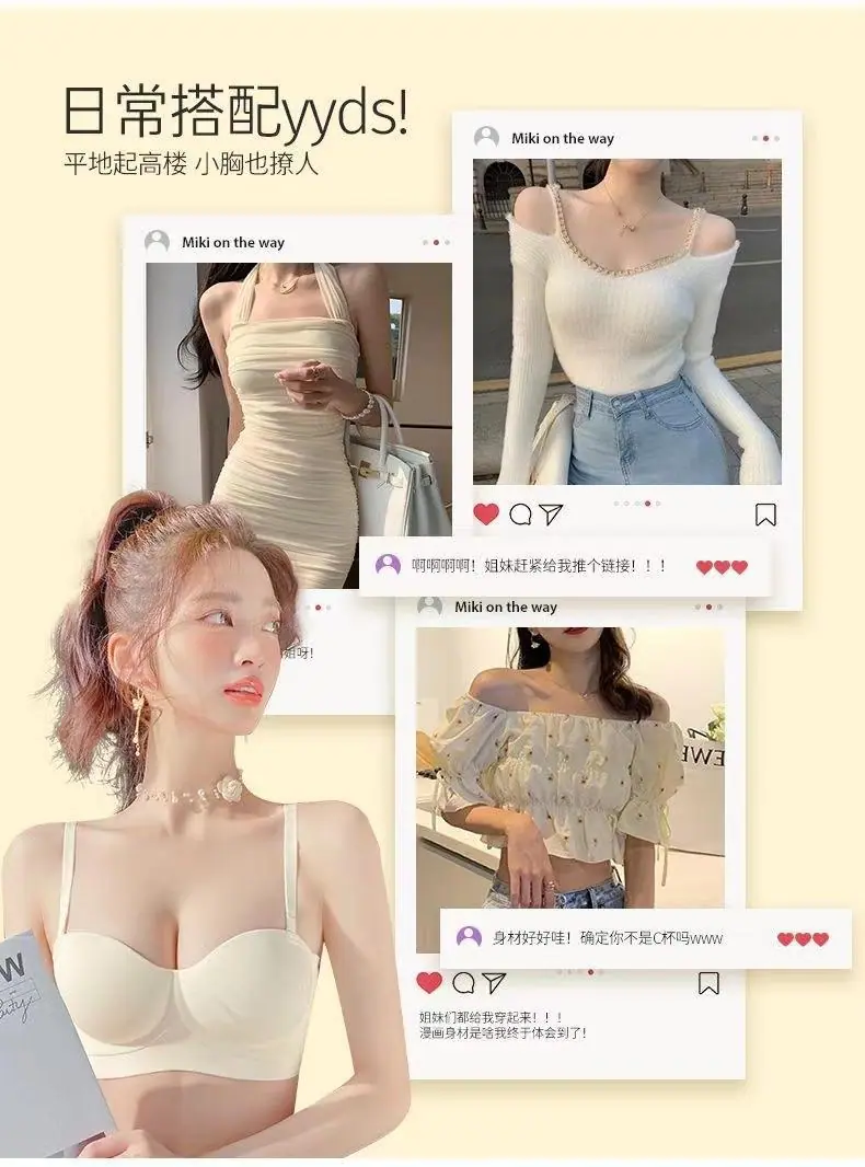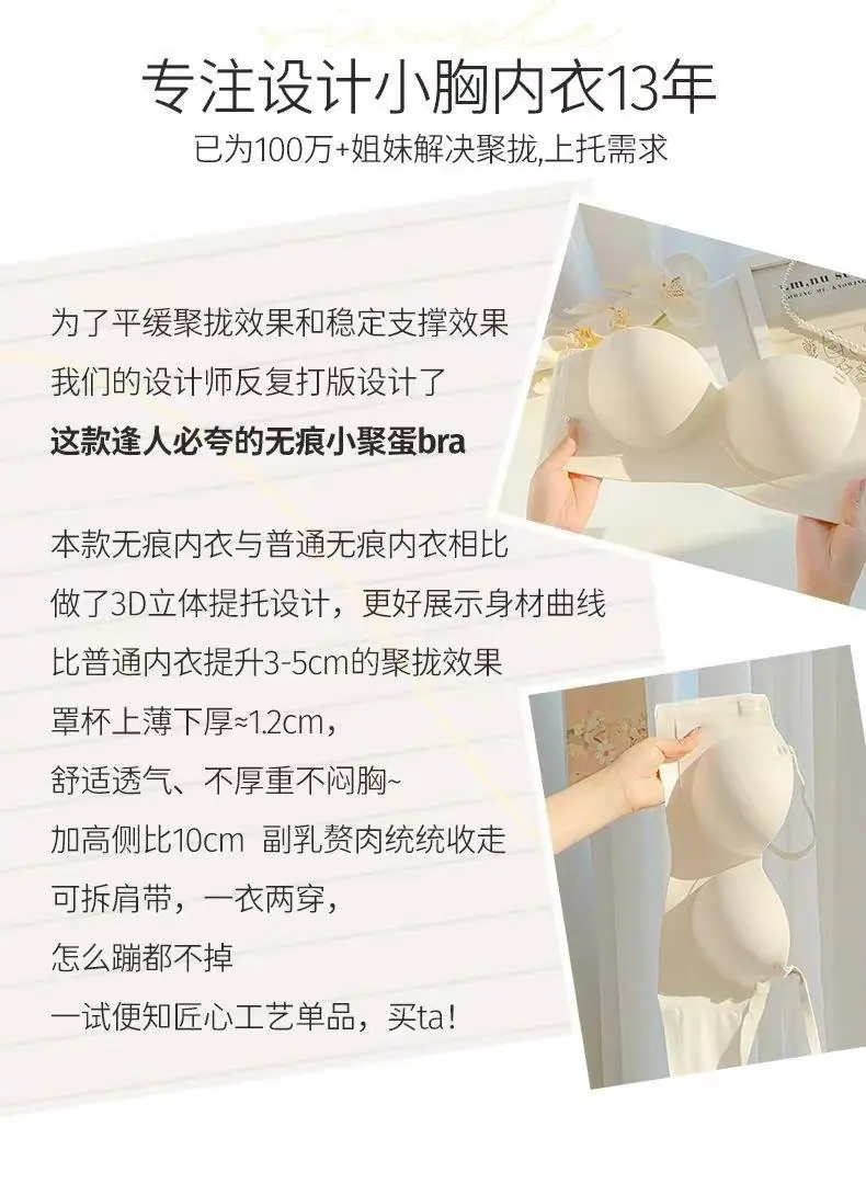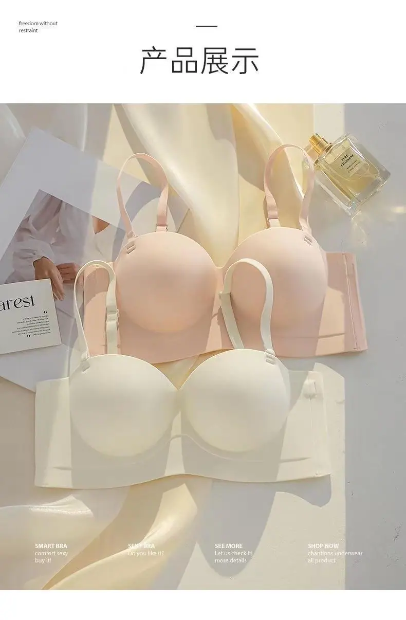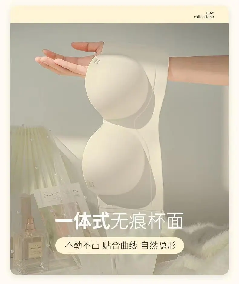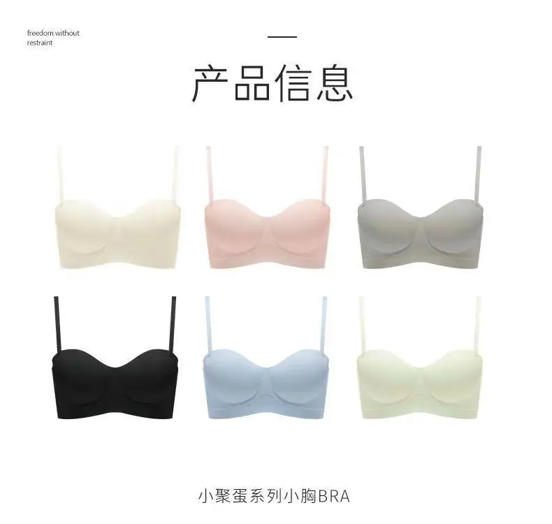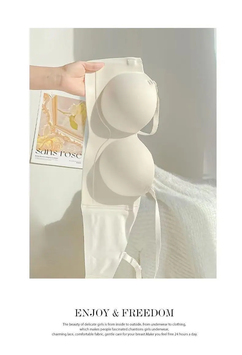 Ropa interior sin tirantes para mujer, pecho pequeño, gran realce, sostén anti-caída sin costuras, antideslizante, invisible, inalámbrico, envuelve el pecho